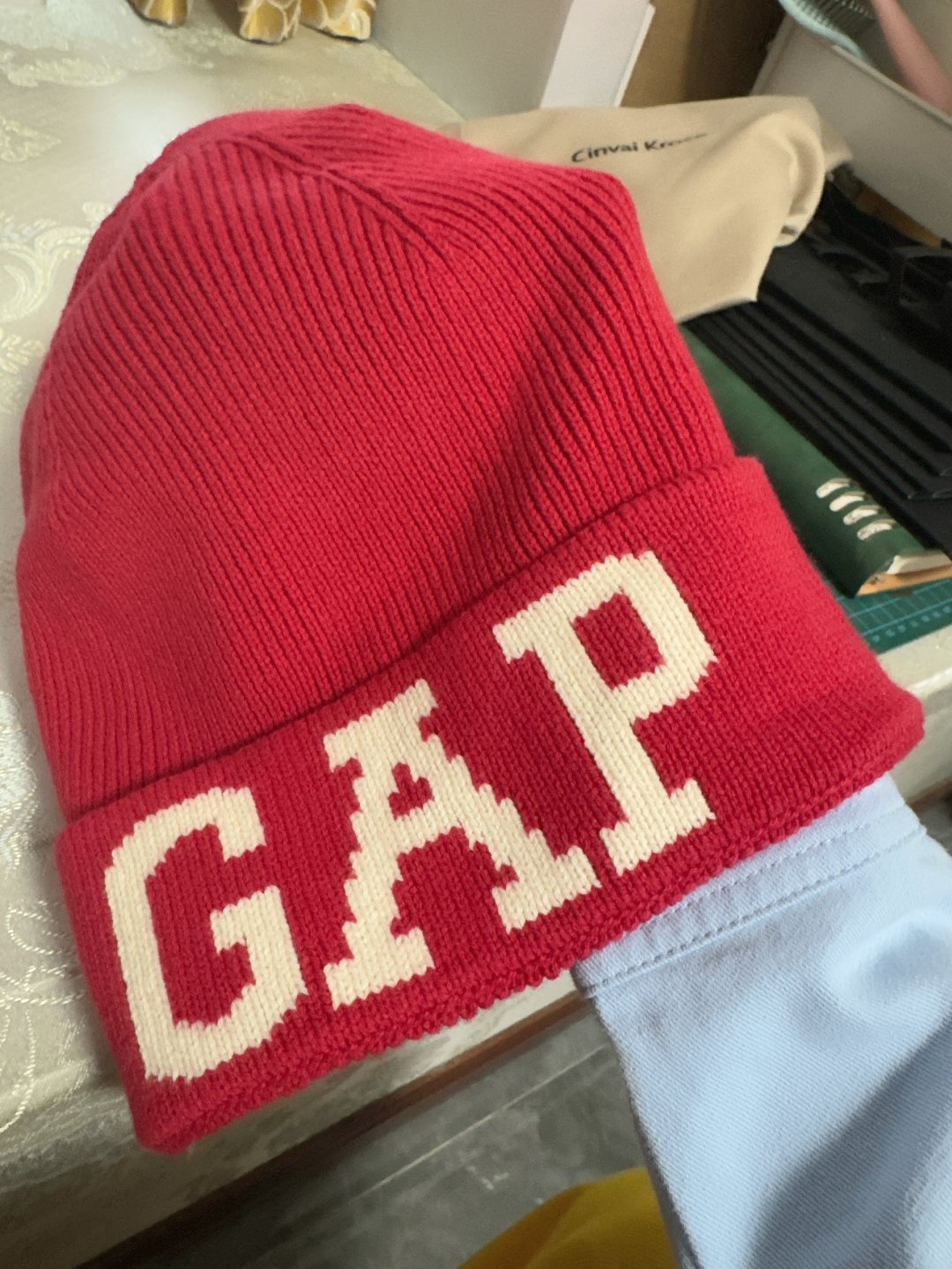 谁懂啊家人们!这顶Gap毛线帽红色好亮眼,多巴胺风拉满🥳 翻边设计+大字母,戴上直接脸小一圈!才一杯奶茶钱,日常出街氛围感稳稳拿捏~😎