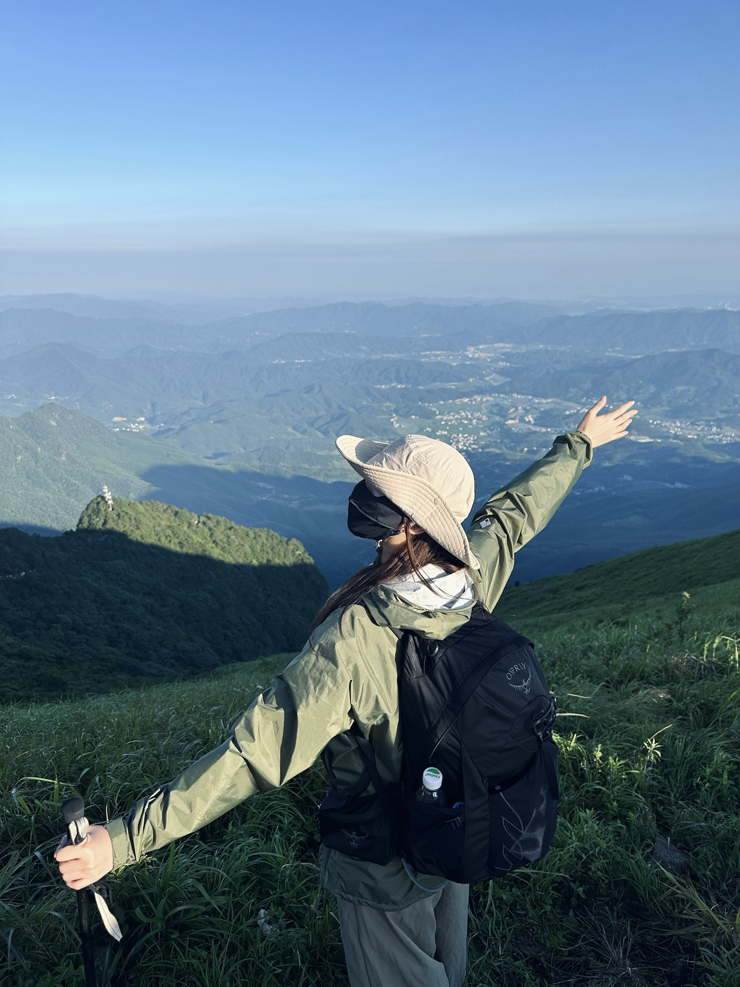 去武功山徒步,我穿了这件冲锋衣~防水防风还透气,爬山时应对多变天气很安心😌 不过它颜色选择少,我这件绿的还挺搭自然景色~山系女孩徒步可以试试,出片又实用🥾 图片源自网络侵删