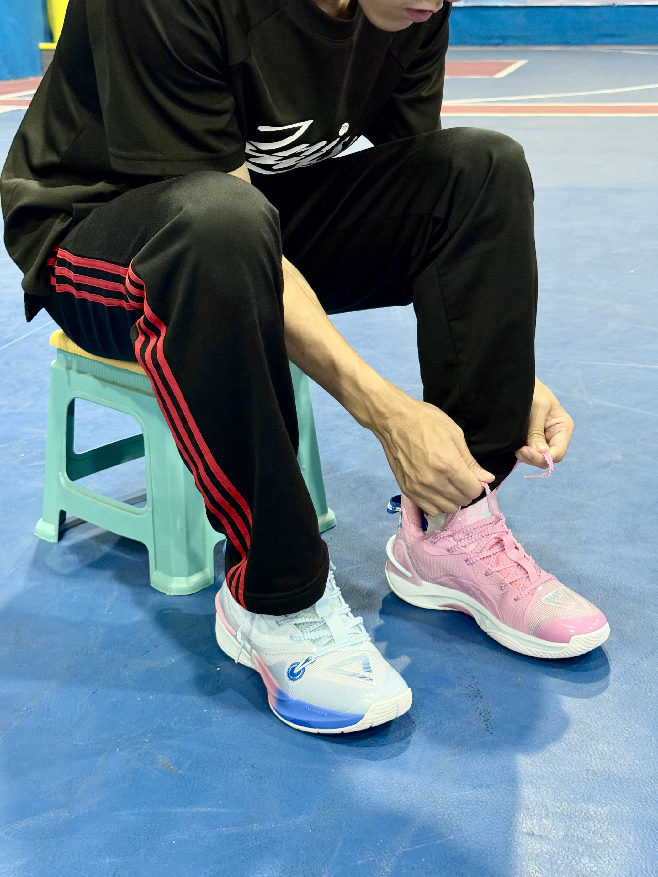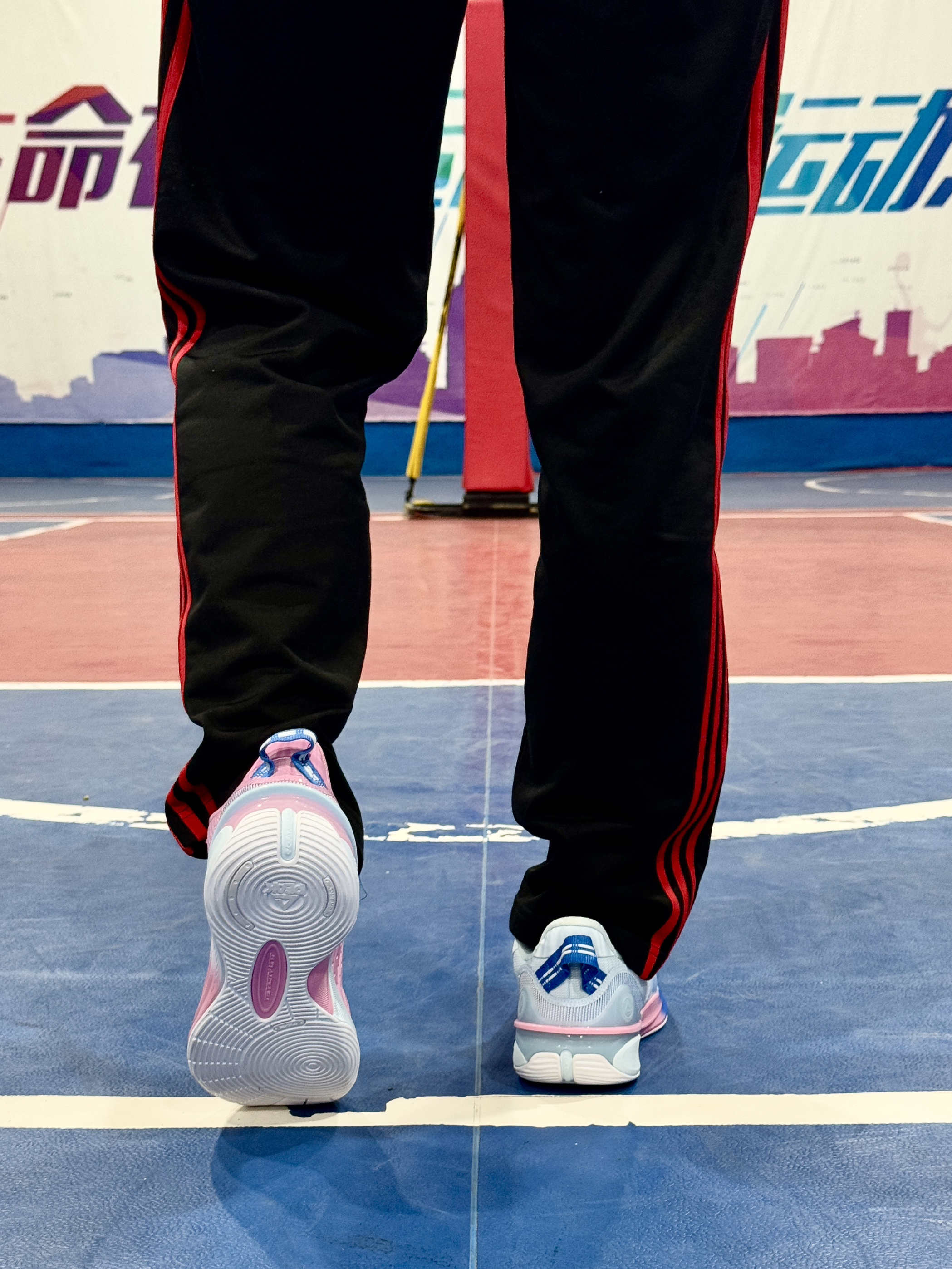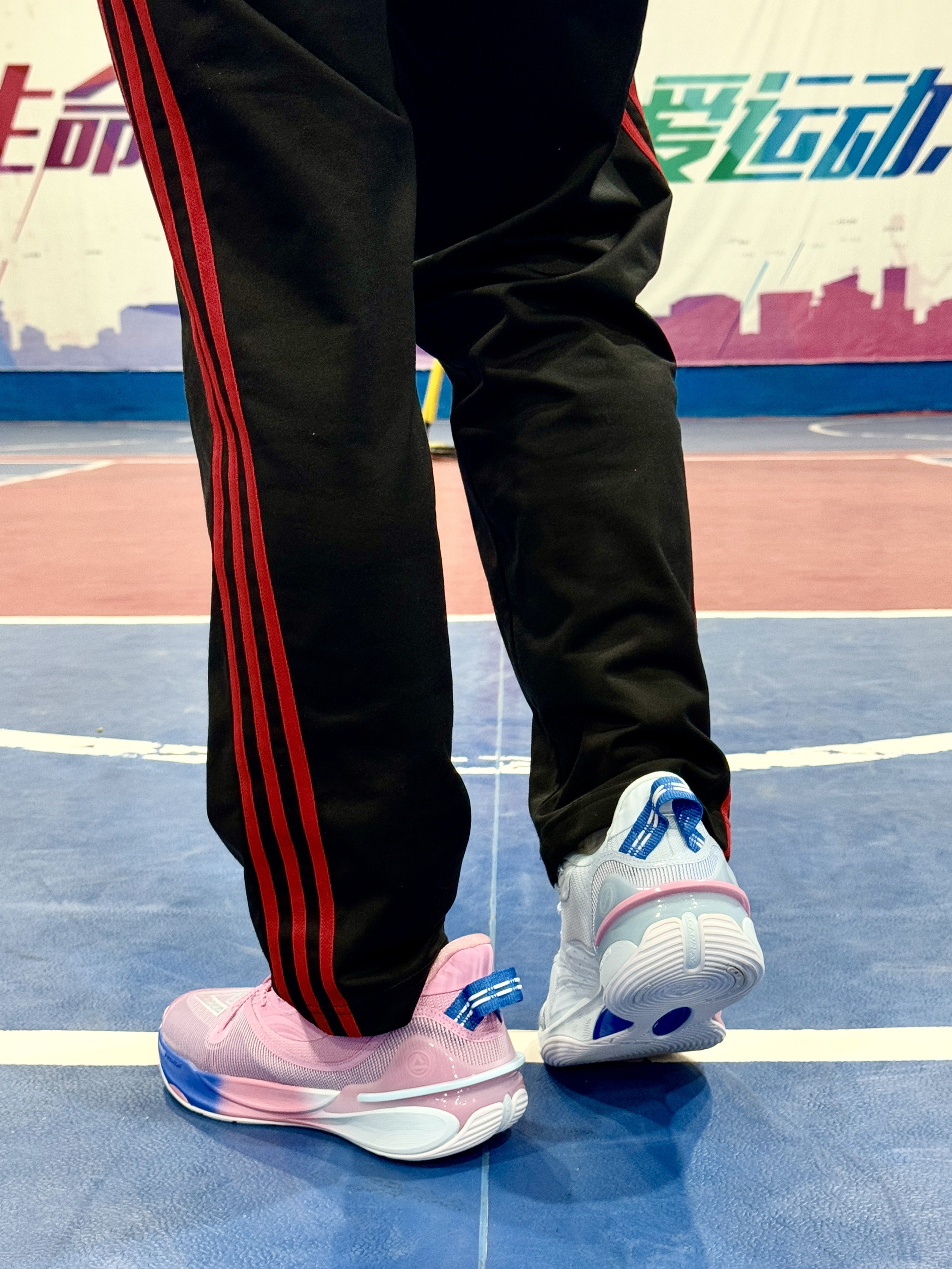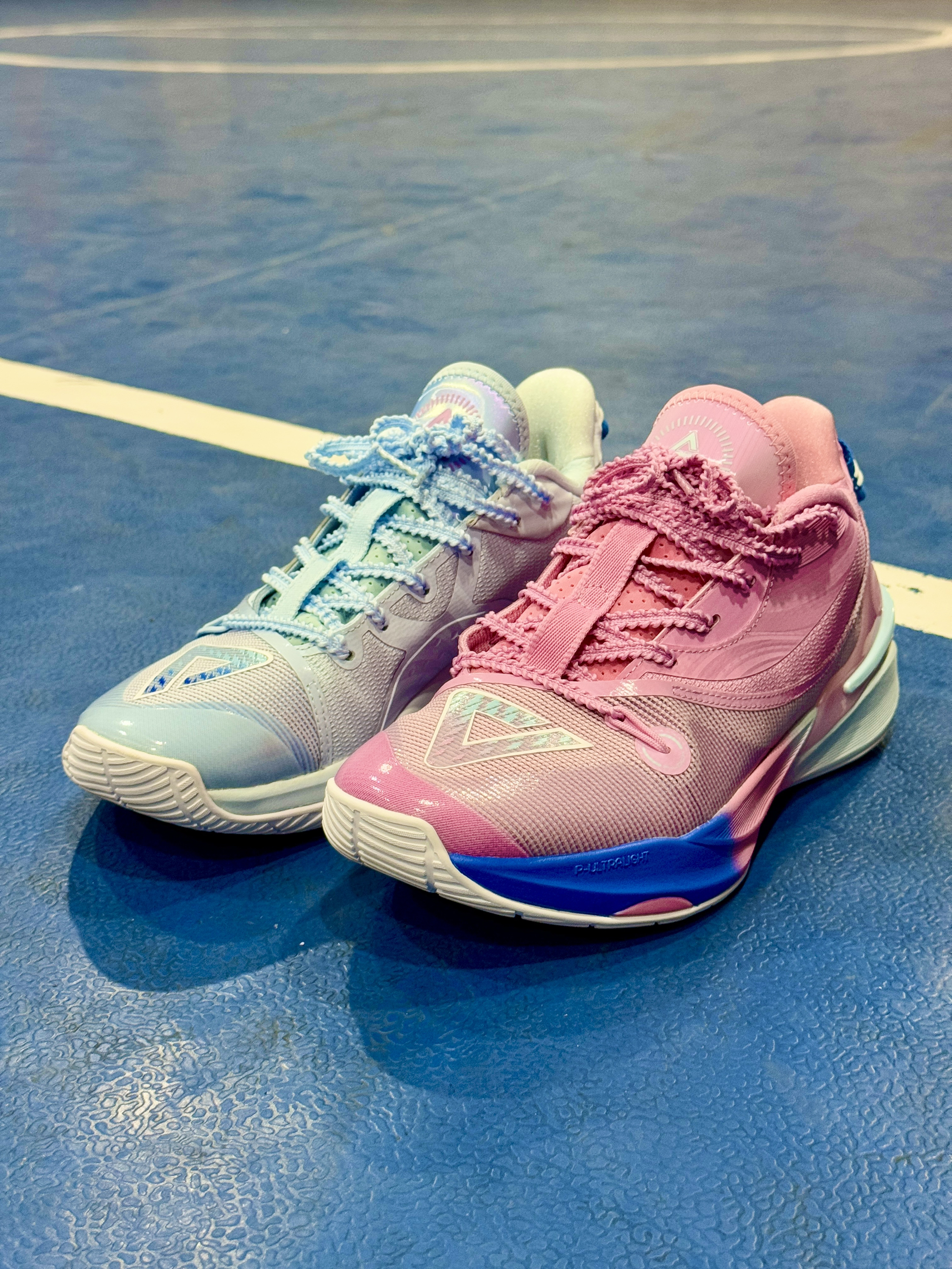 这双 匹克 鸳鸯限定配色的篮球鞋真的太好看了 粉蓝配色清新亮眼,球场忍不住就会偷瞄一眼😁😁 整体来说:鞋面不压脚背,穿着舒适;鞋舌厚度适中;内里填充物比较厚实,不硌脚;后跟处有环抱式TPU,能提供良好的包裹性和稳定性👍👍 中底采用了匹克当家科技“态极”,缓震回弹性能出色,落地缓冲感还是很明显的;前掌内嵌了尼龙碳板,在启动时让脚步更迅速😌😌 橡胶大底纹路清晰,防滑耐磨性能很优秀,室内室外场地都可...