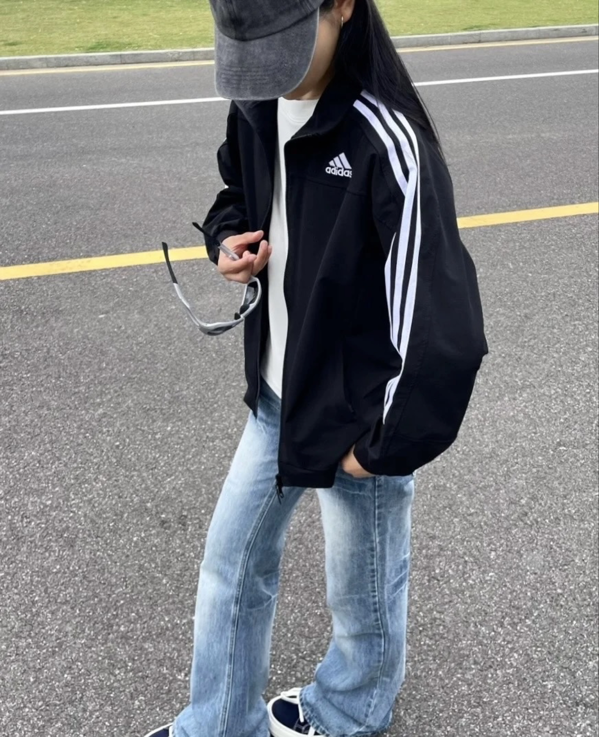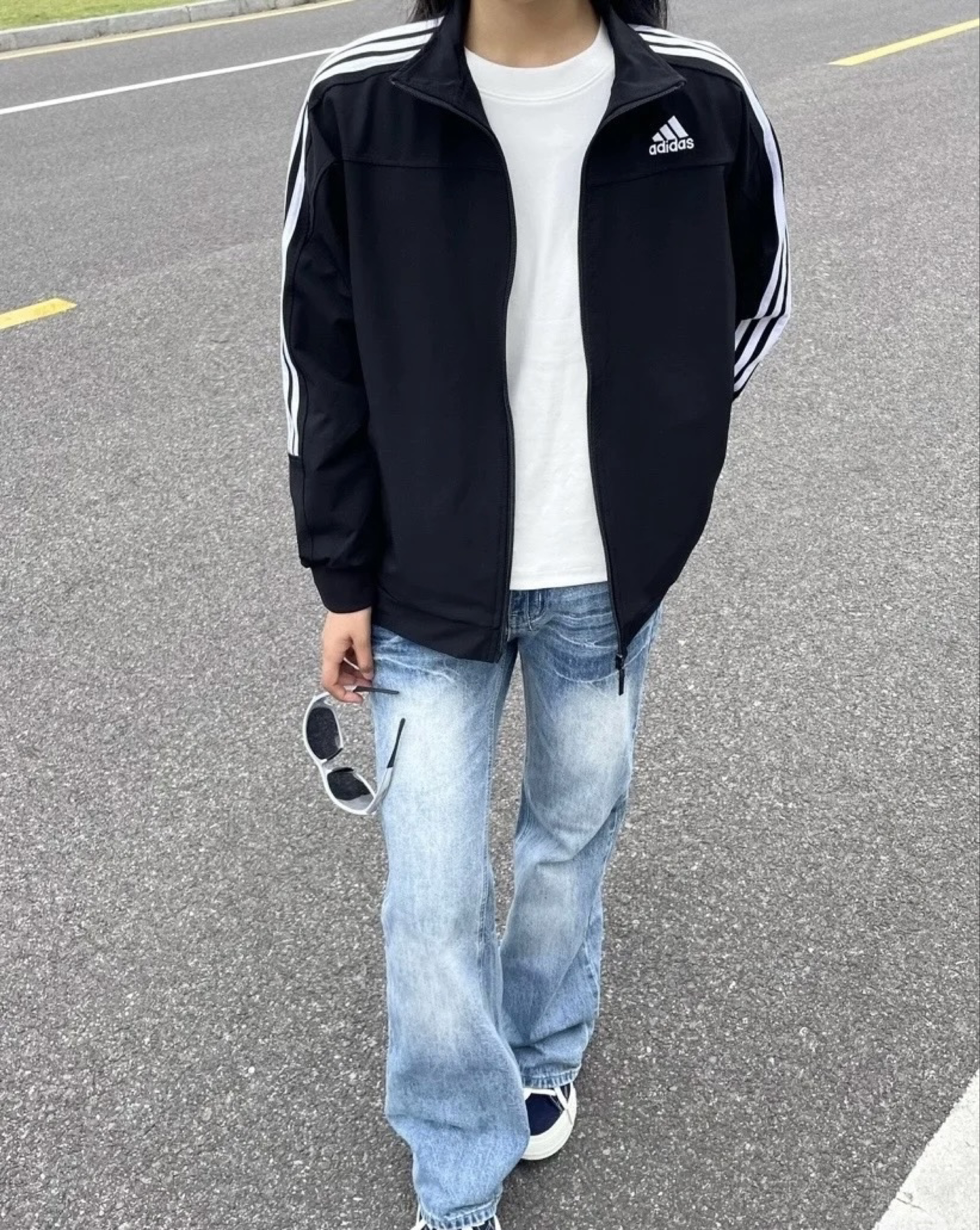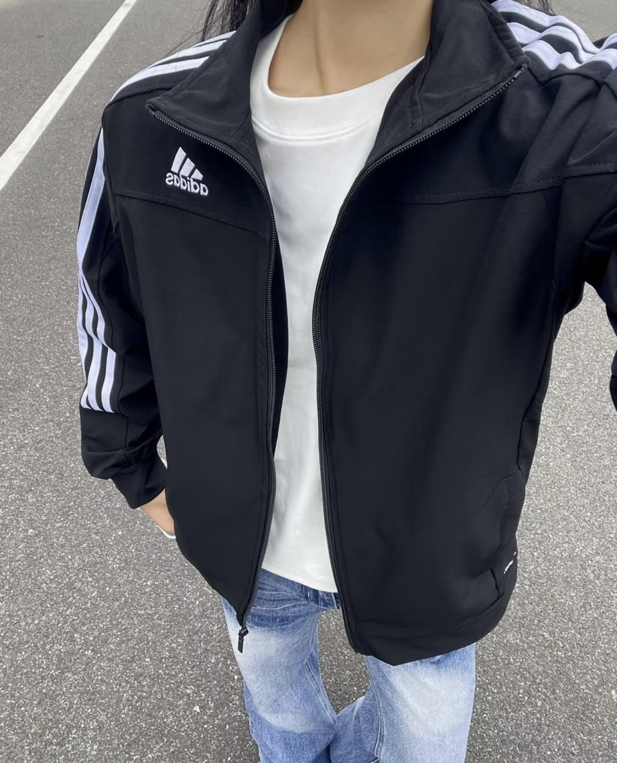 这件阿迪达斯黑色运动夹克,凭借经典“三道杠”设计,复古又潮流。立领拉链设计,穿脱方便还能修饰身形。面料挺括耐磨,春秋单穿、冬季内搭都合适。搭配牛仔裤、运动裤都很出彩,是日常出街、轻运动的百搭选择。