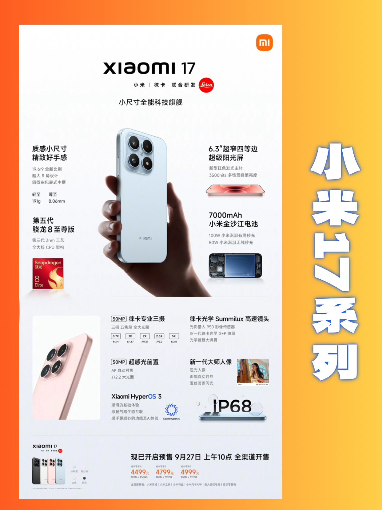 想做双持党,这次该选小米17系列吗? 应该很多人和我一样,主力机是iPhone ,但是总想选个拍照更好、续航更好的别家旗舰。小米17昨天发布,我也看完了整场发布会,发现还是有些地方值得聊聊的。 【先聊聊定位】 • 小米17 官方口径为“标准版旗舰”,屏幕尺寸与上一代相近,核心升级在于处理器与电池容量。 • 小米17 Pro 定位“小尺寸科技影像旗舰”,在机身宽度、厚度控制的前提下加入潜望长...