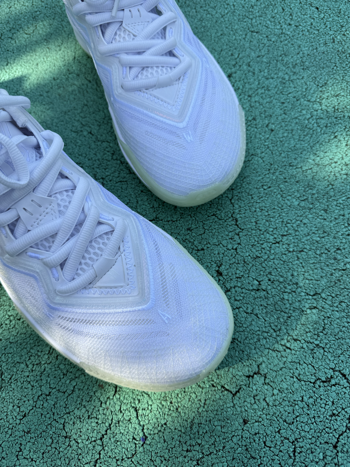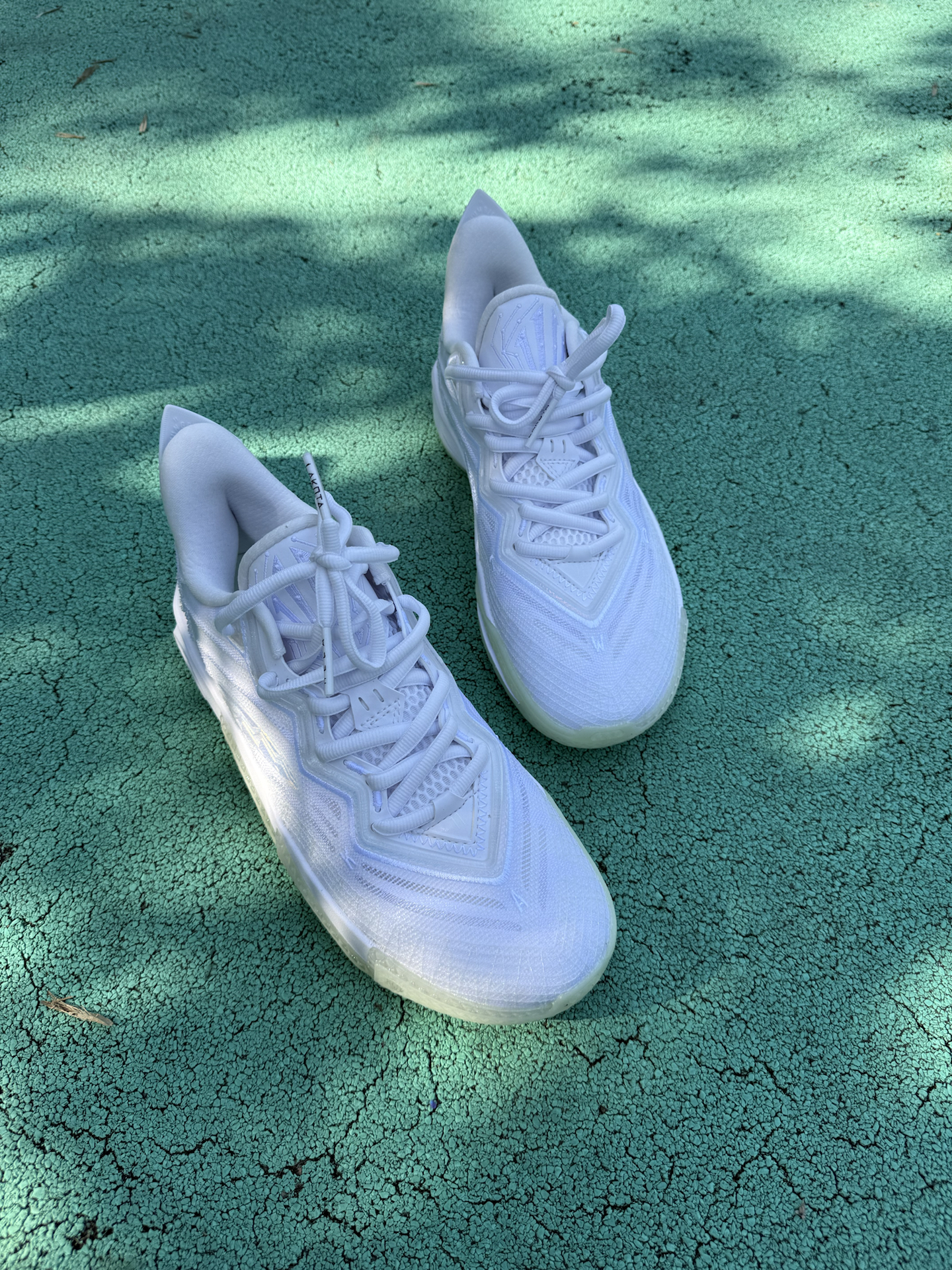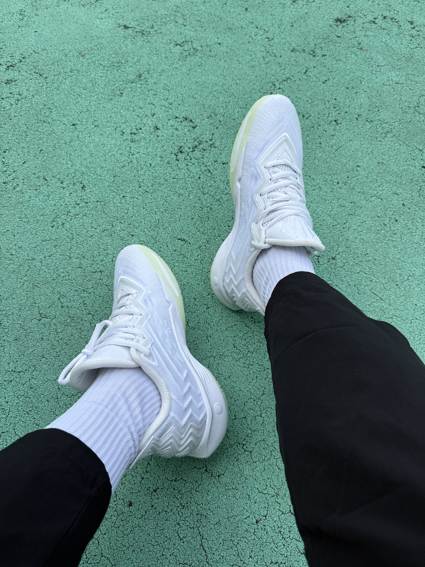 哈喽,朋友们 今天给大家分享的是安踏,欧文二代白幽灵配色的具体细节 可以看到整体的色调,采用了一个纯白搭配颜色的设计 颜值是相当不错的,百搭又好看,上脚之后青春感十足 性能表现足够均衡 后卫锋线都可以选择,而且还是一双碳板球鞋! #李宁 #篮球人装备库 #一人一张球鞋美照 #安踏欧文2 #用篮球认识我 #新鞋零时差