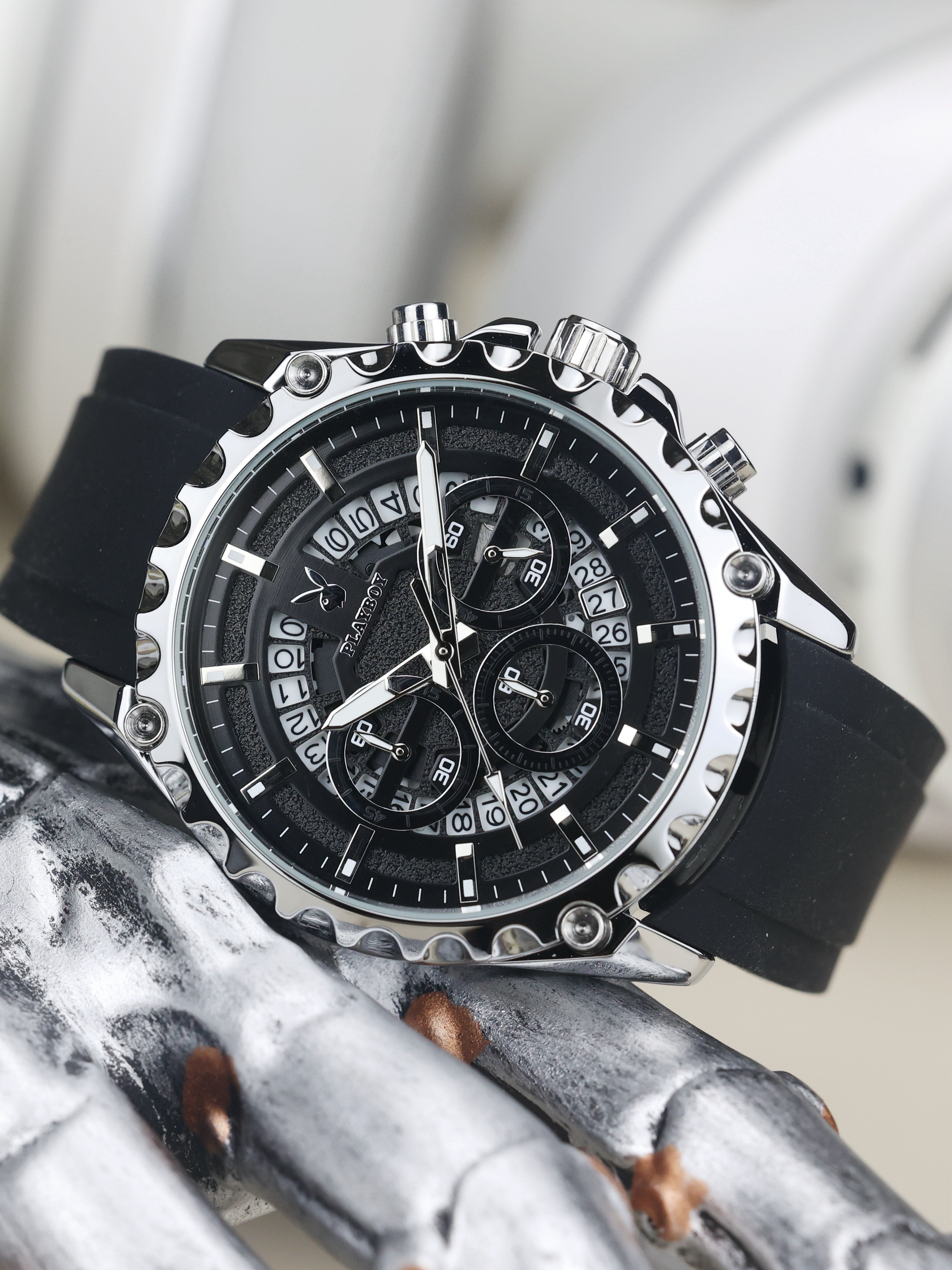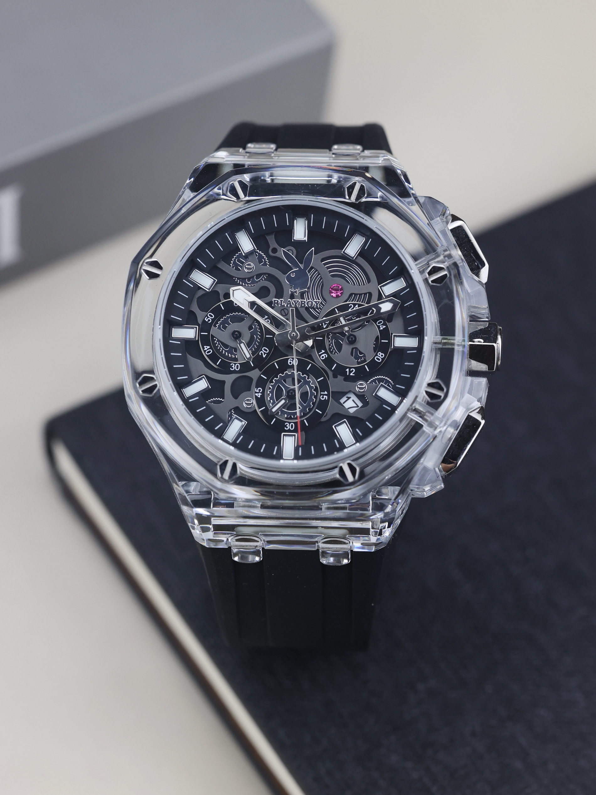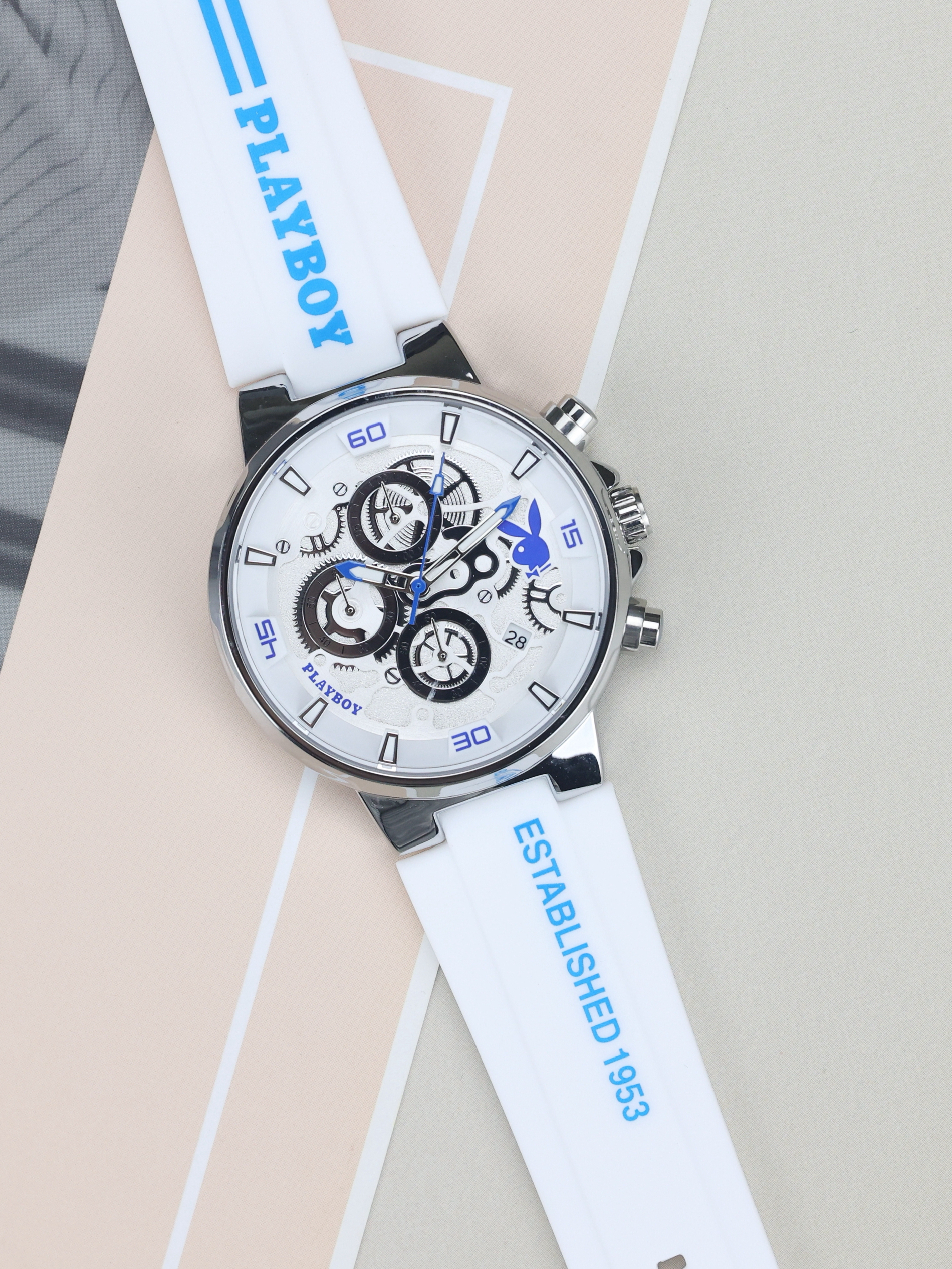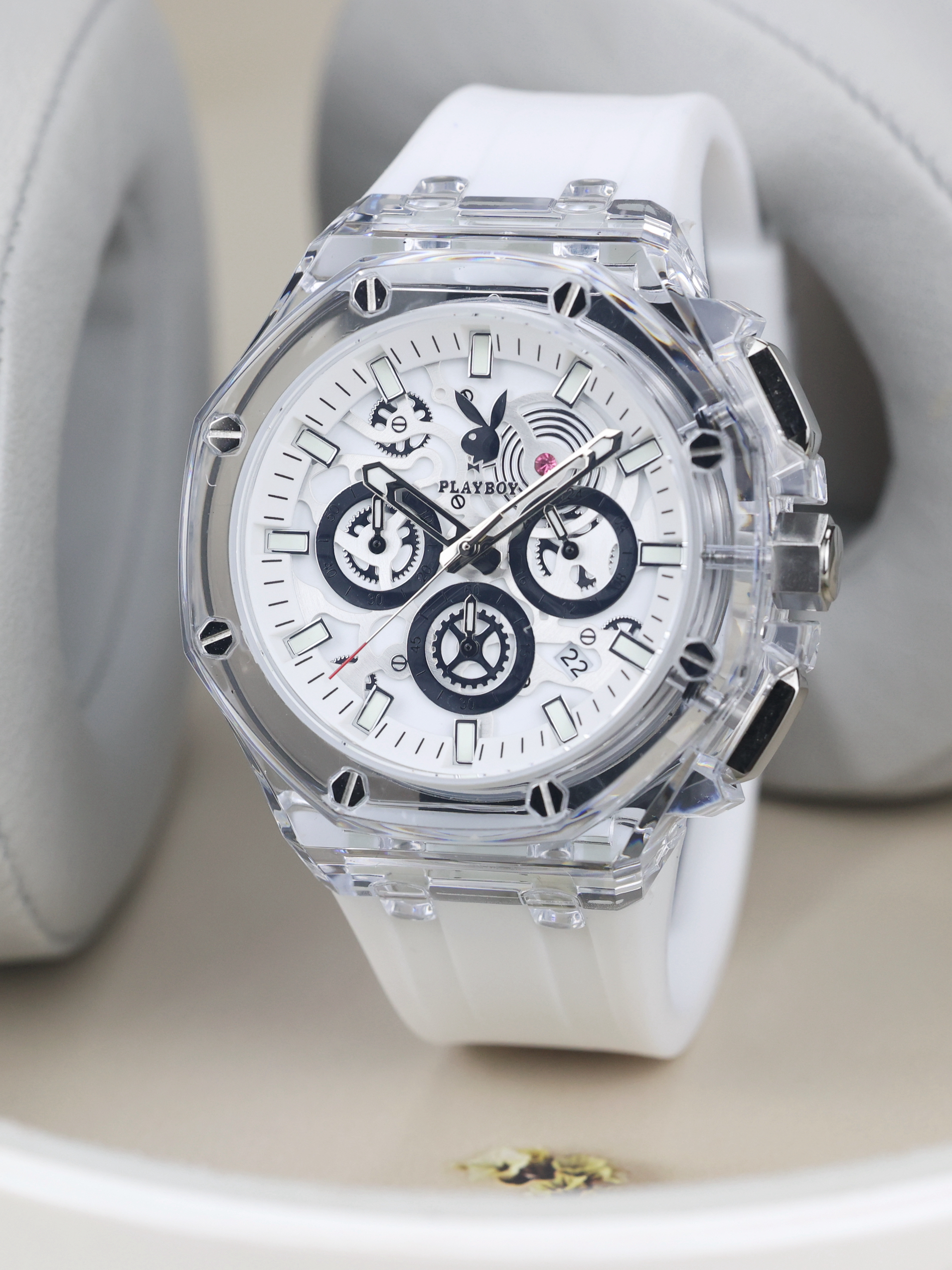 本篇笔记关联了Playboy/花花公子 运动防水夜光学生计时硅胶中性风石英男士手表 银壳黄面硅胶带、Playboy/花花公子 潮玩 3D齿轮设计街头时尚潮流防水硅胶表带石英男士手表 白胶带本白等商品,为用户提供真实的使用体验和购买参考。