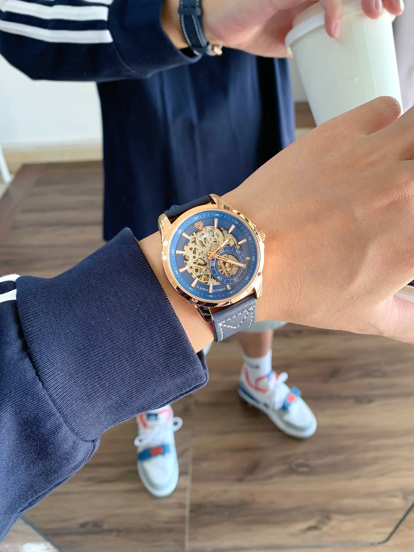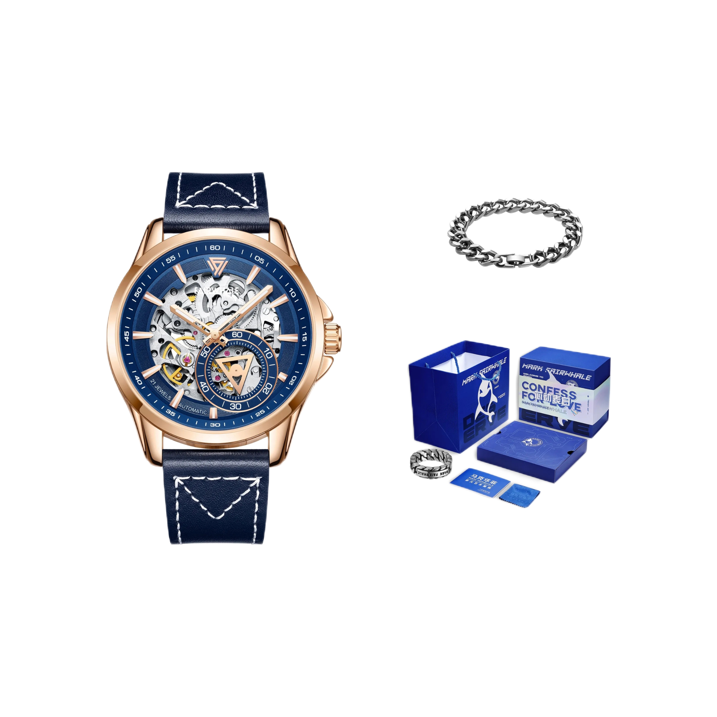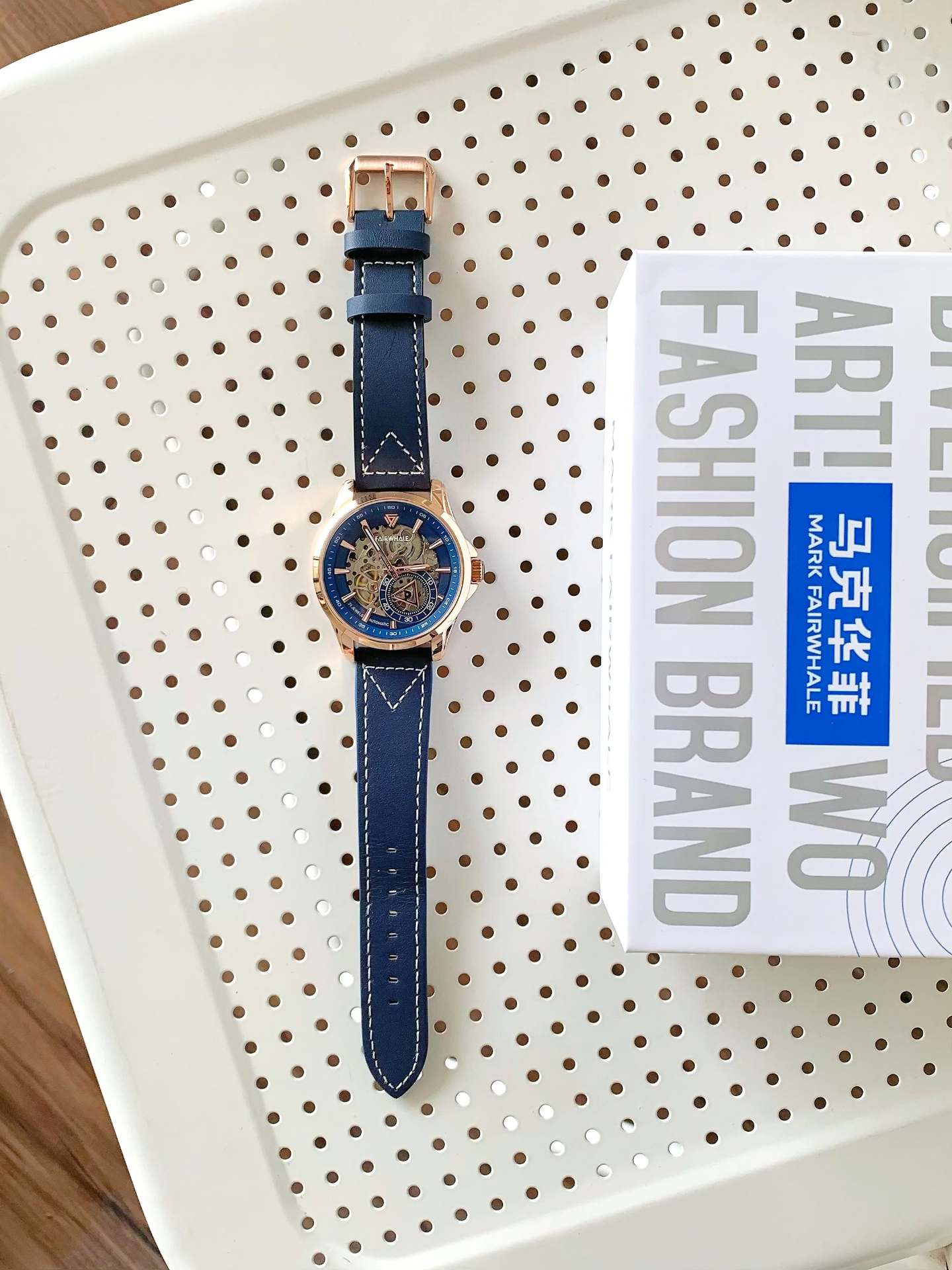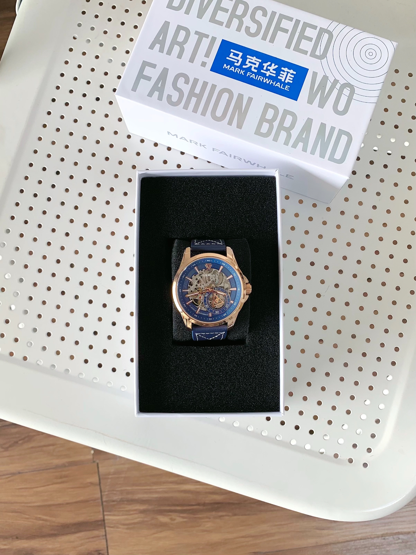 本篇笔记关联了Mark Fairwhale/马克华菲 高端真皮防水双面镂空雕花飞轮自动机械男士手表 【蓝色鲸鱼手链礼盒】蓝色等商品,为用户提供真实的使用体验和购买参考。