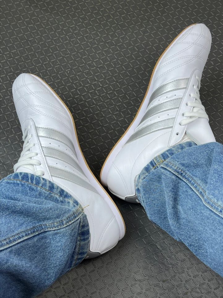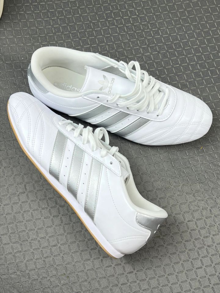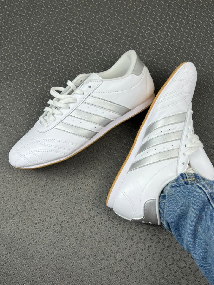 宝子们,阿迪达斯这双板鞋必须安利! 简约干净的白色鞋面,搭配亮眼的银色条纹, 经典又不失时尚感,上脚秒变时髦精✨ 优质皮革材质,质感超绝,耐磨又耐脏 橡胶鞋底防滑又舒适,无论是日常出街还是运动健身 ,都能轻松适配,闭眼入不亏!