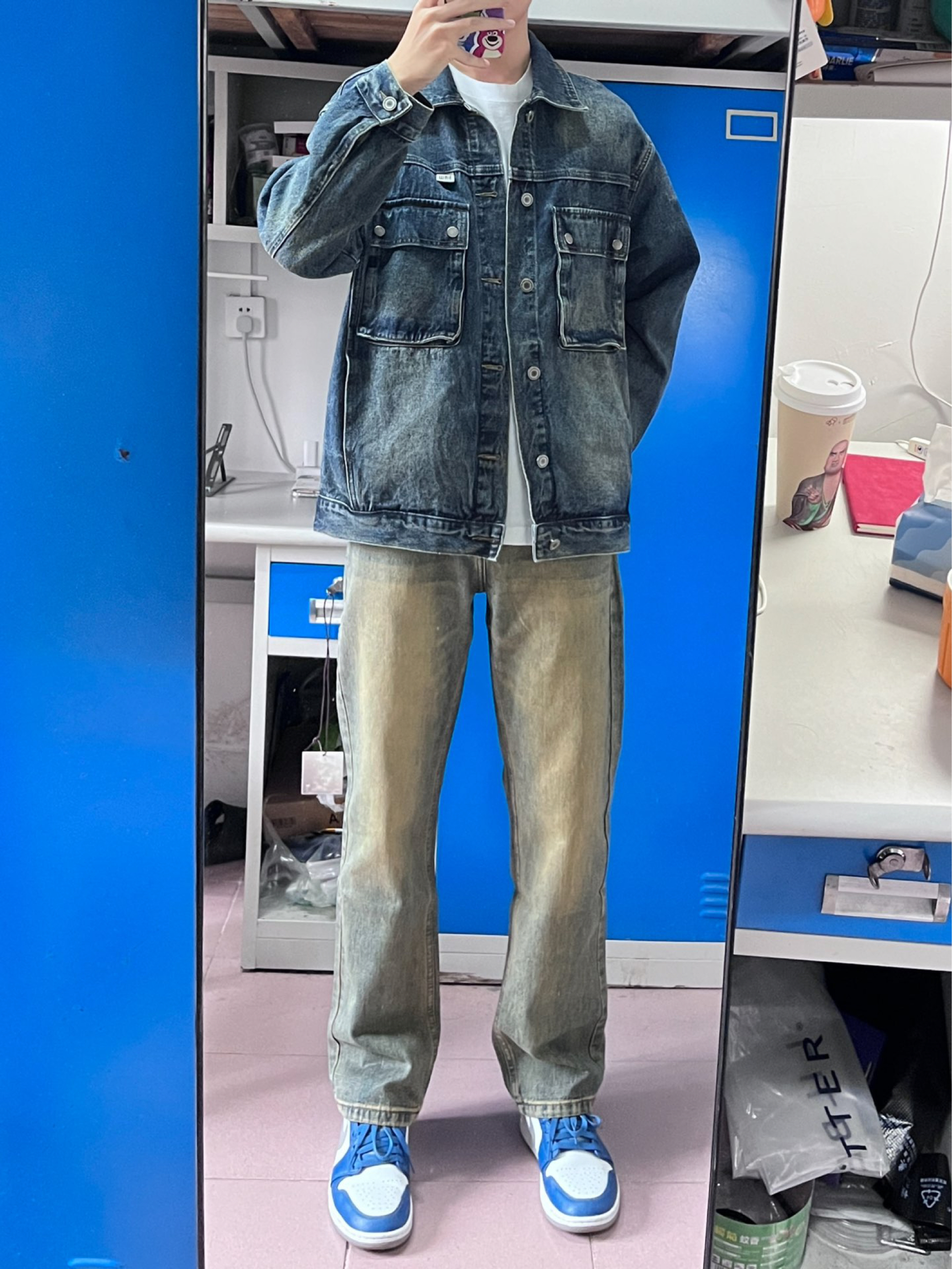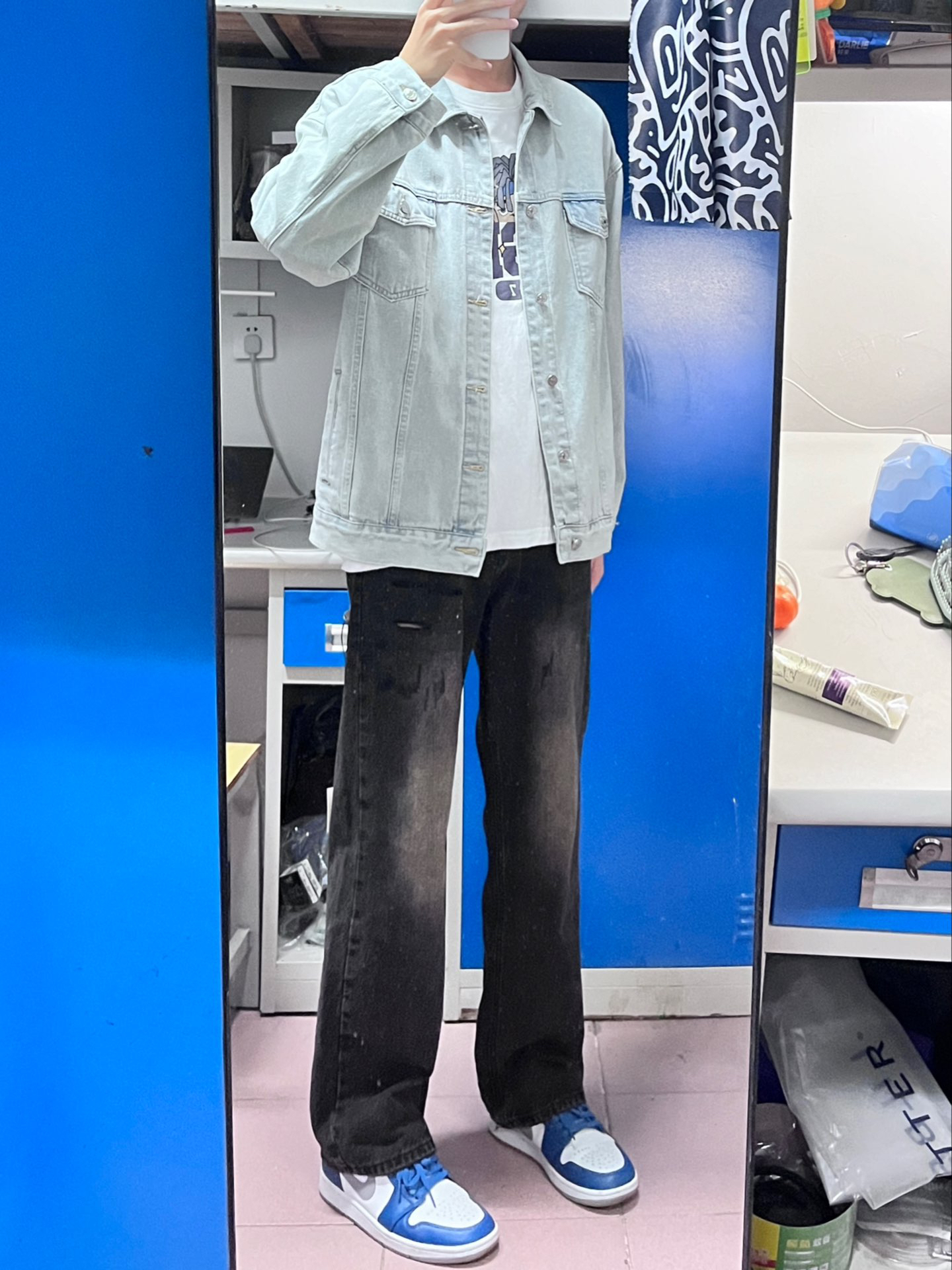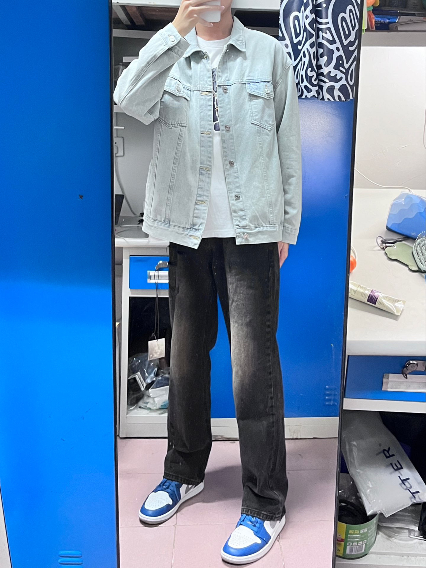 今天穿这一身 黑色牛仔裤男生衣柜里真的不能少 这一条就很合适 搭配浅蓝色牛仔裤很好看 日常出门很合适,里面穿一件连帽卫衣也很好看🤩
