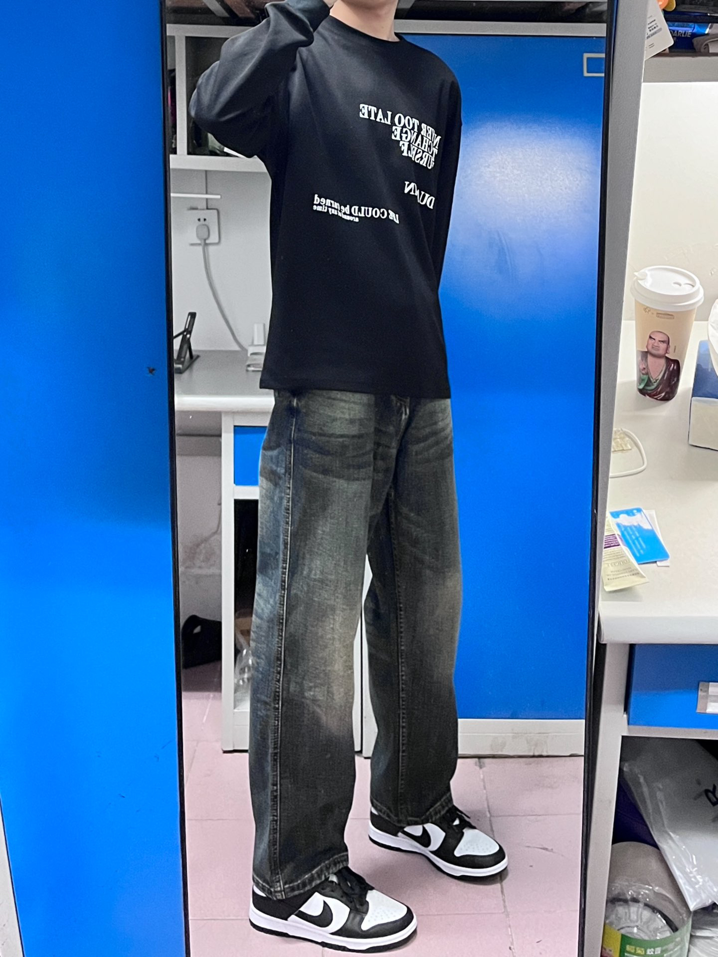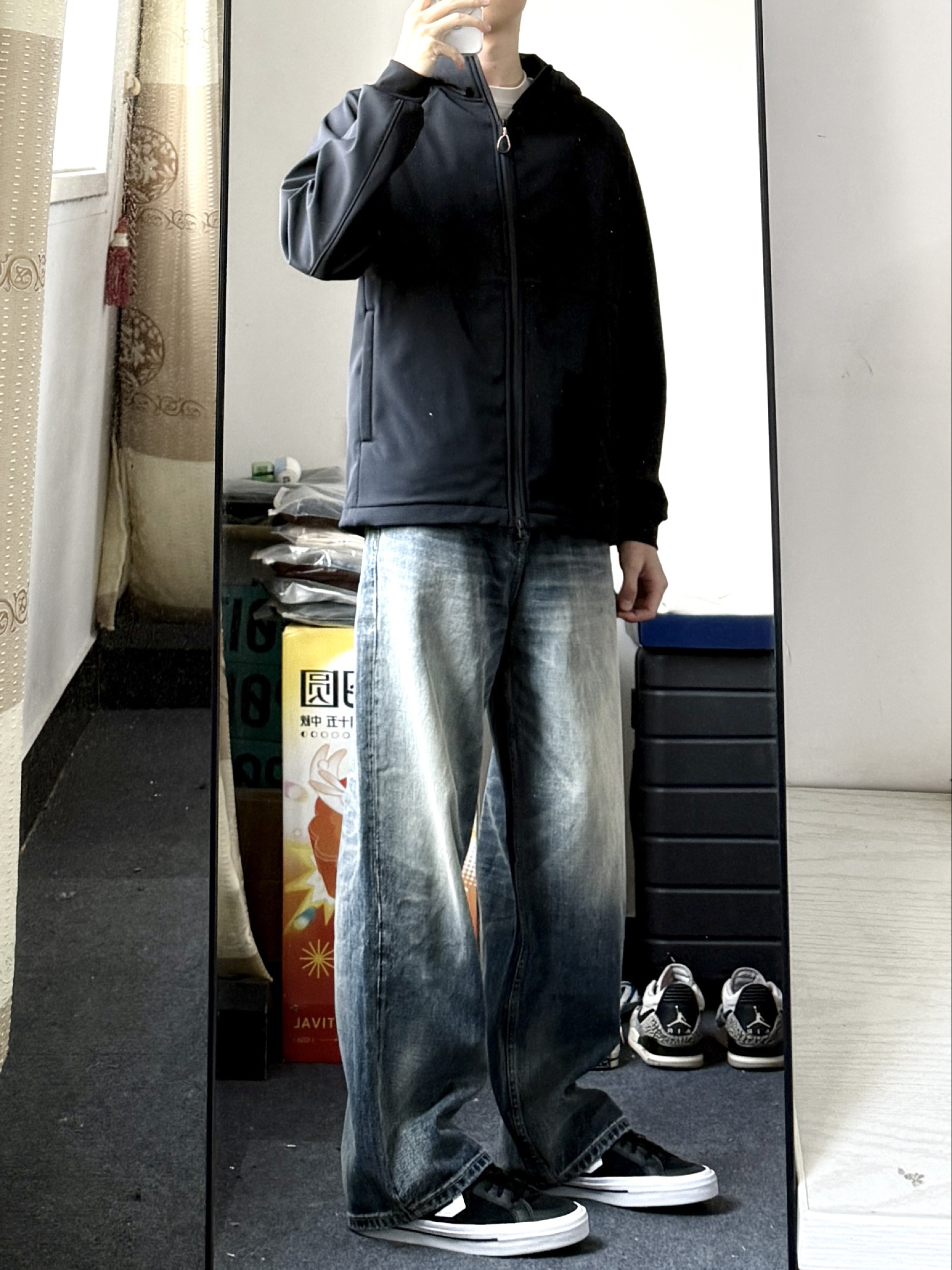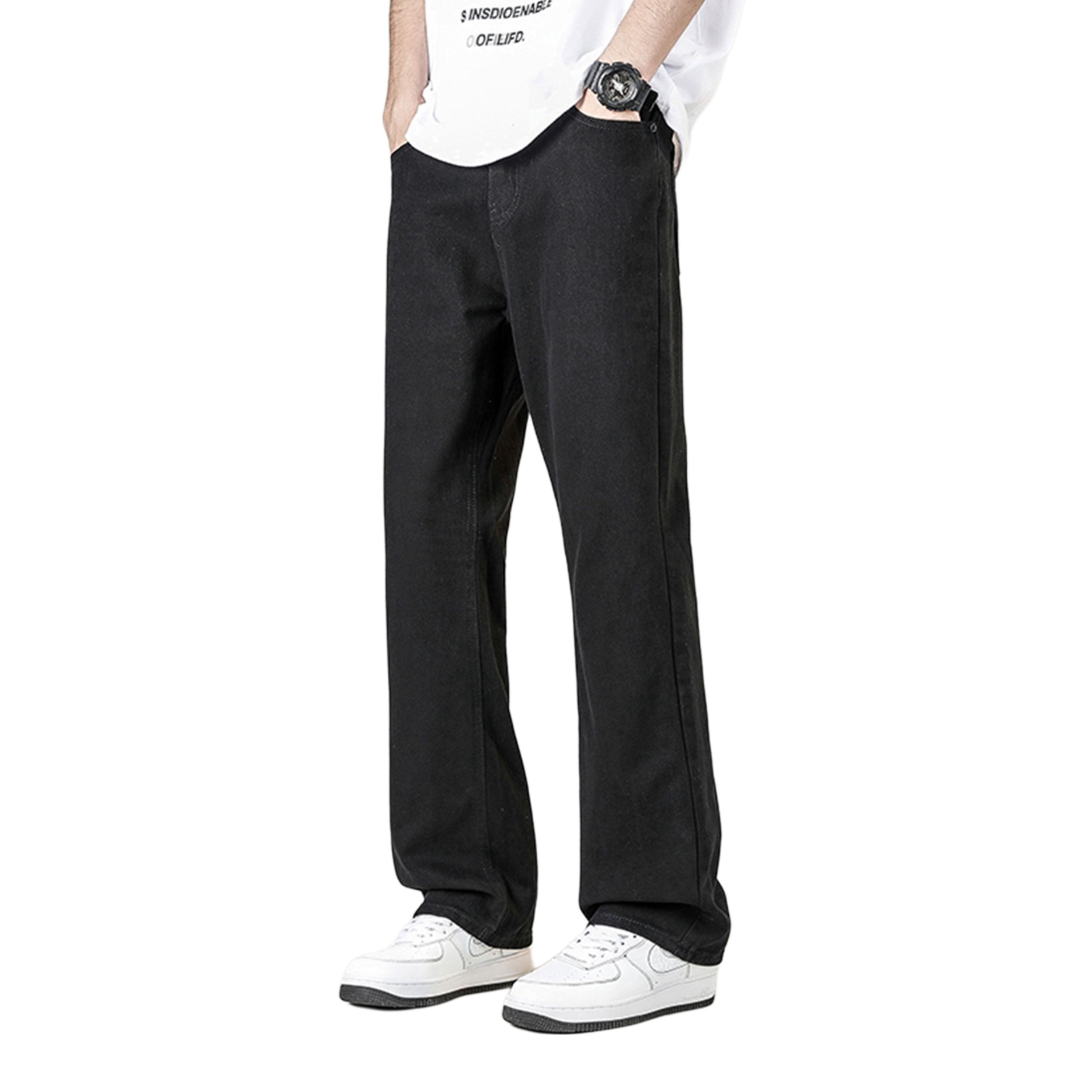 黑色牛仔裤男生真的不能少 这件直筒的黑色牛仔裤上身效果很不错 版型质感都在线 秋季搭配连帽卫衣或者圆领卫衣都很合适