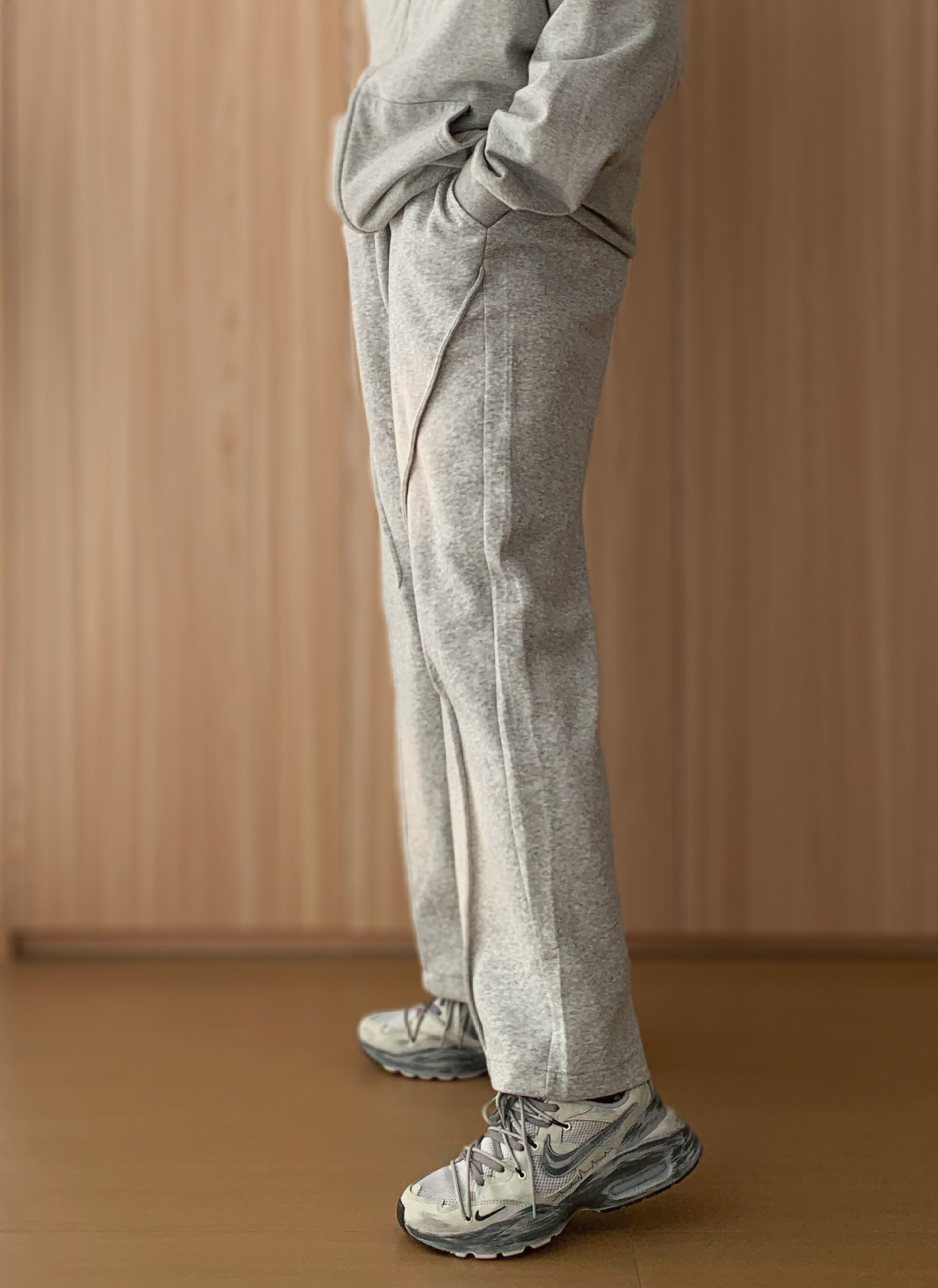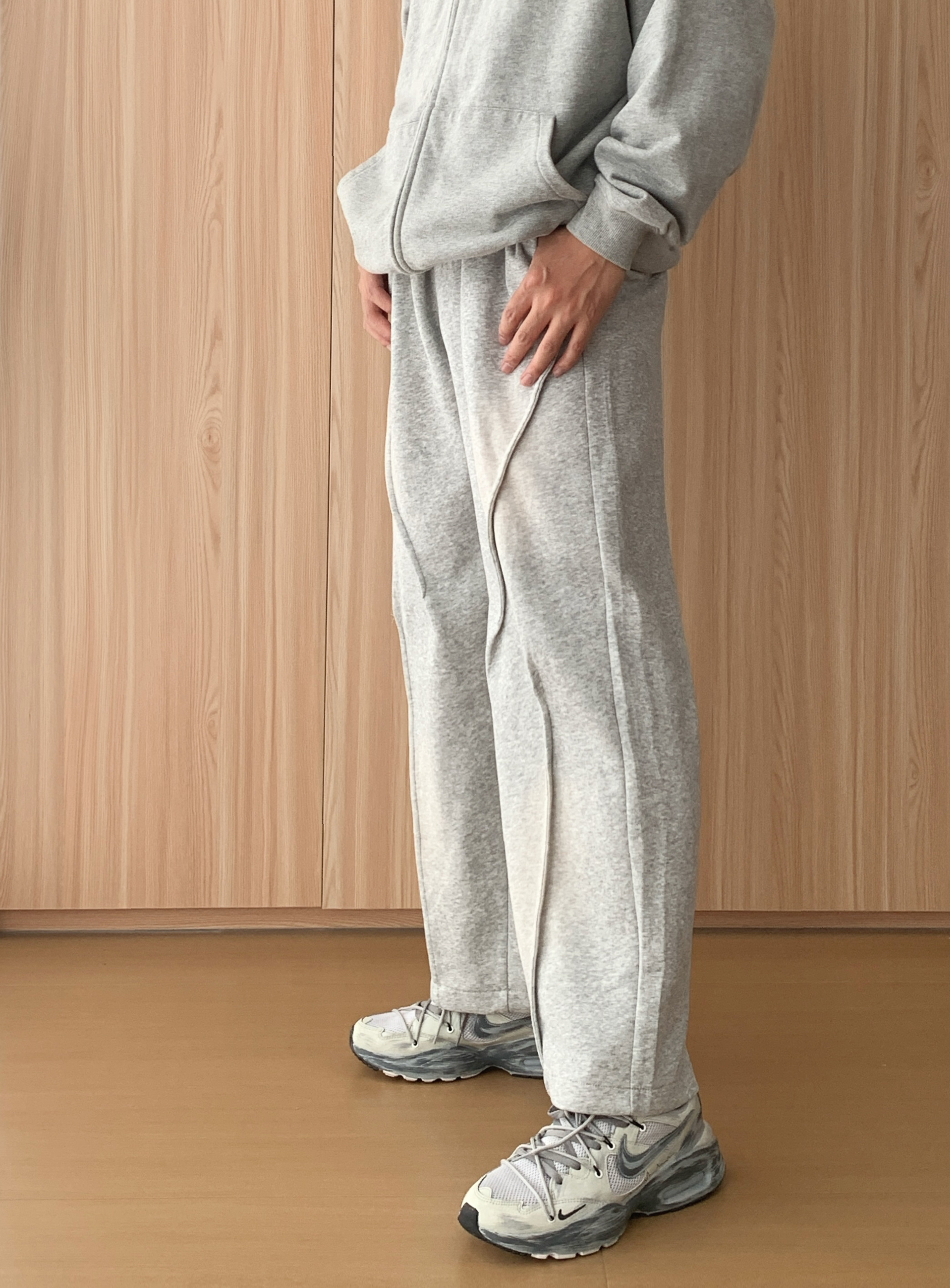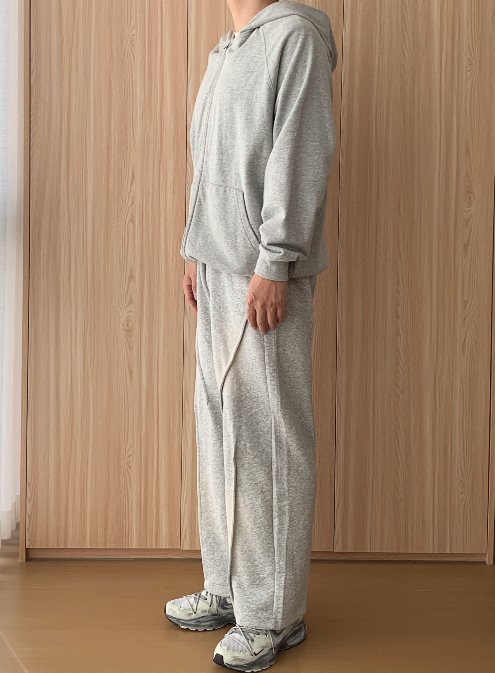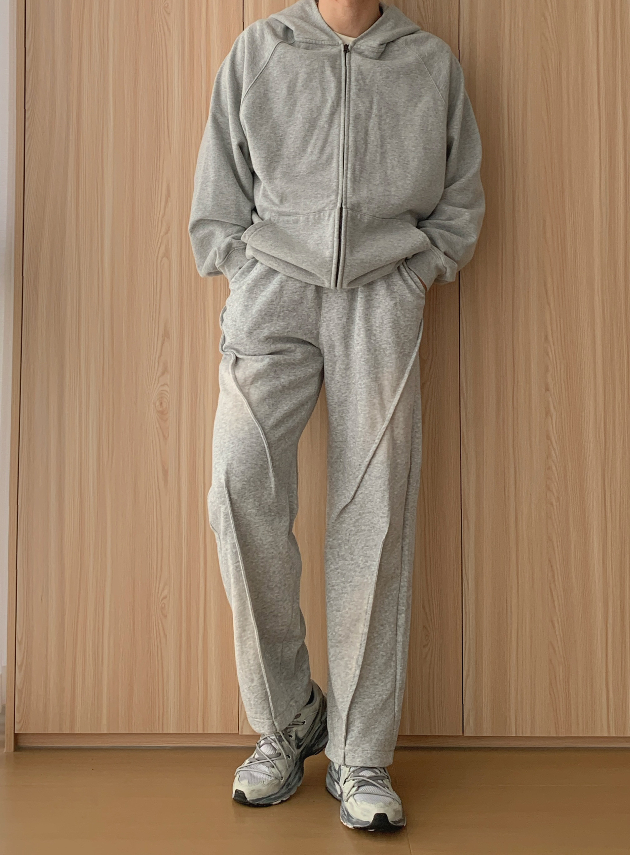 外层选一件灰色连帽卫衣开衫🧥,软乎乎的面料裹着超舒服,拉上拉链是干净利落的少年感,敞开穿又自带随性范儿,风大时还能拉上帽子挡挡风,实用性拉满~ 内搭基础款白T恤👕就很妙,简单一抹白中和了灰色的厚重,还悄悄增加了穿搭层次,不会显得单调。下装配同色系阔腿卫裤,宽松版型藏肉又自在,走路带风都不束缚,日常逛吃、取快递超适配~ 最后踩一双灰色废土风老爹鞋👟,复古纹理超有小细节,和整套穿搭色调呼应,不费力...