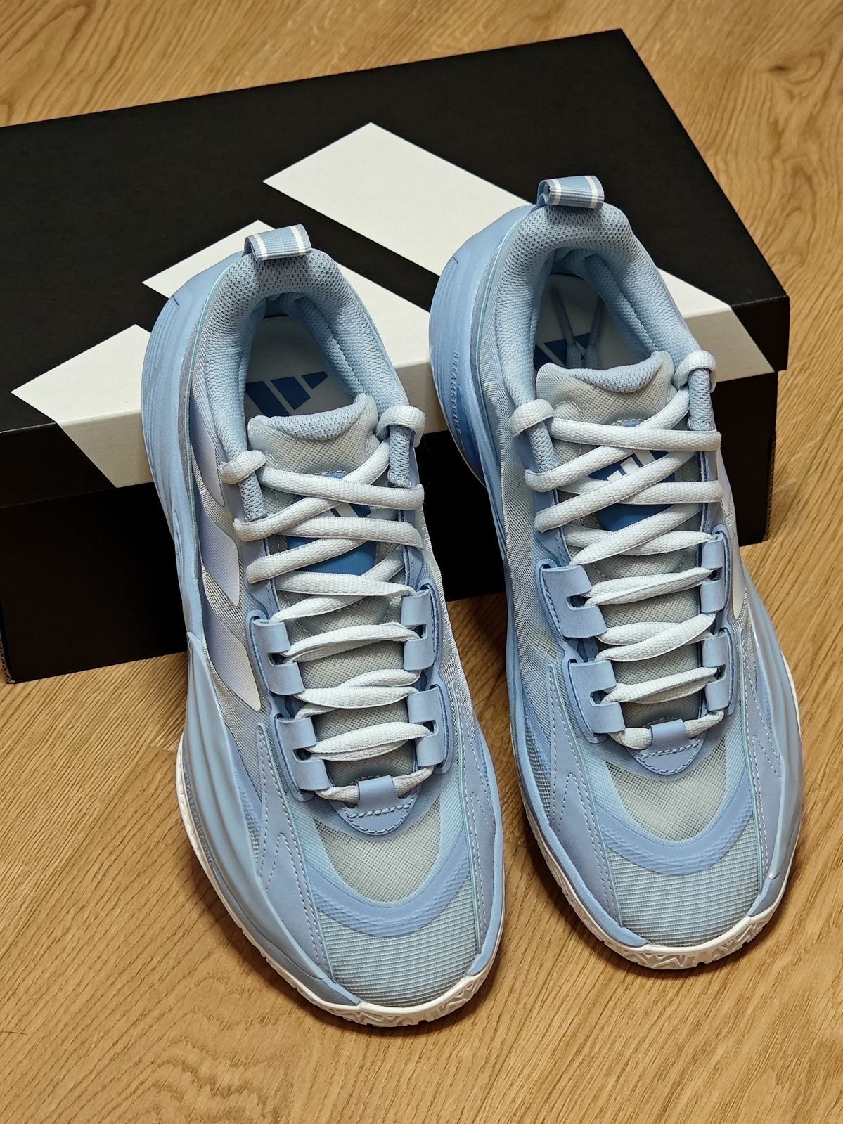 开箱一下adidas XENOBURST团队款篮球鞋 中文名称是异爆 类似北卡蓝的配色搭配十分的清新好看 中底采用了dreamstrike泡棉框架+前掌填腹试lightstrike pro超临界发泡 上脚之后的软弹感很明显,很Q弹的脚感 多少阿迪球星签名鞋都没有的豪华中底配置,居然在这双2开价位的团队携款上找到了 不过相应的,鞋面材料就比较普通,略显廉价 鞋面的动态鞋带孔有4组,鞋带摩擦力也比较大...