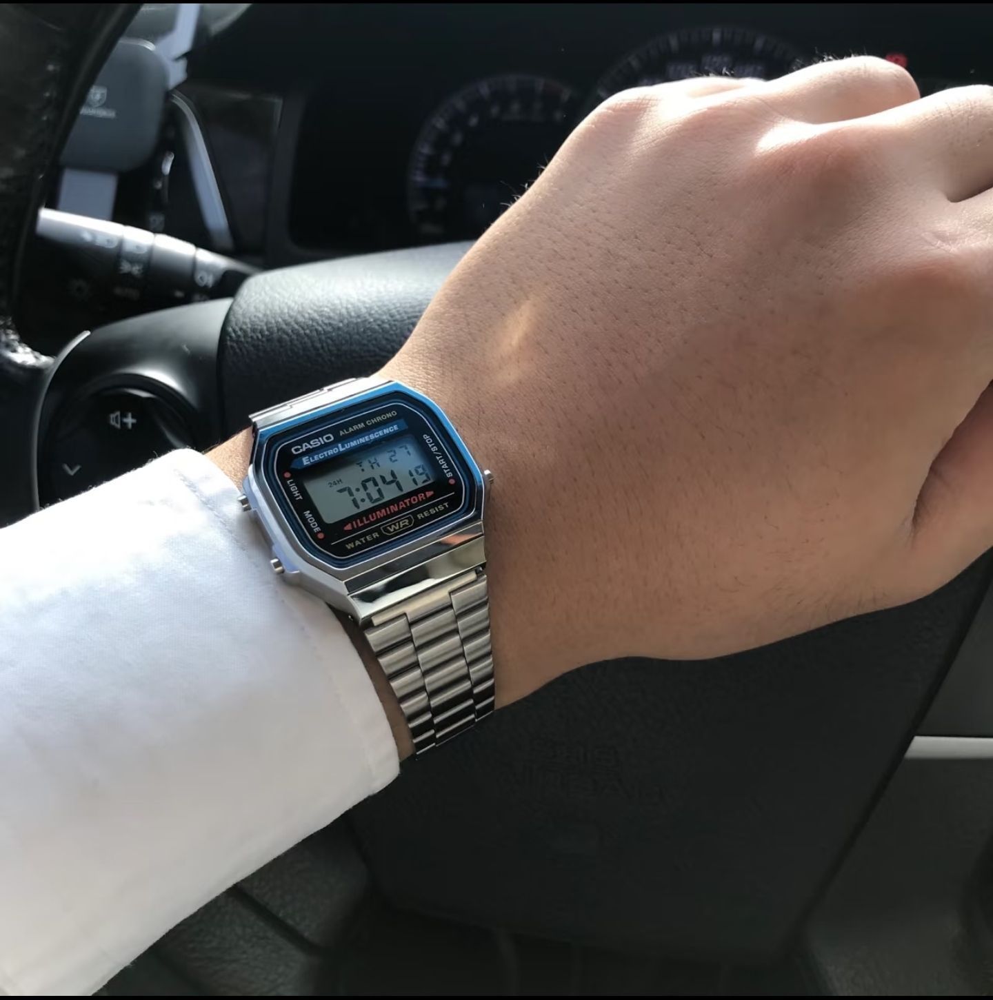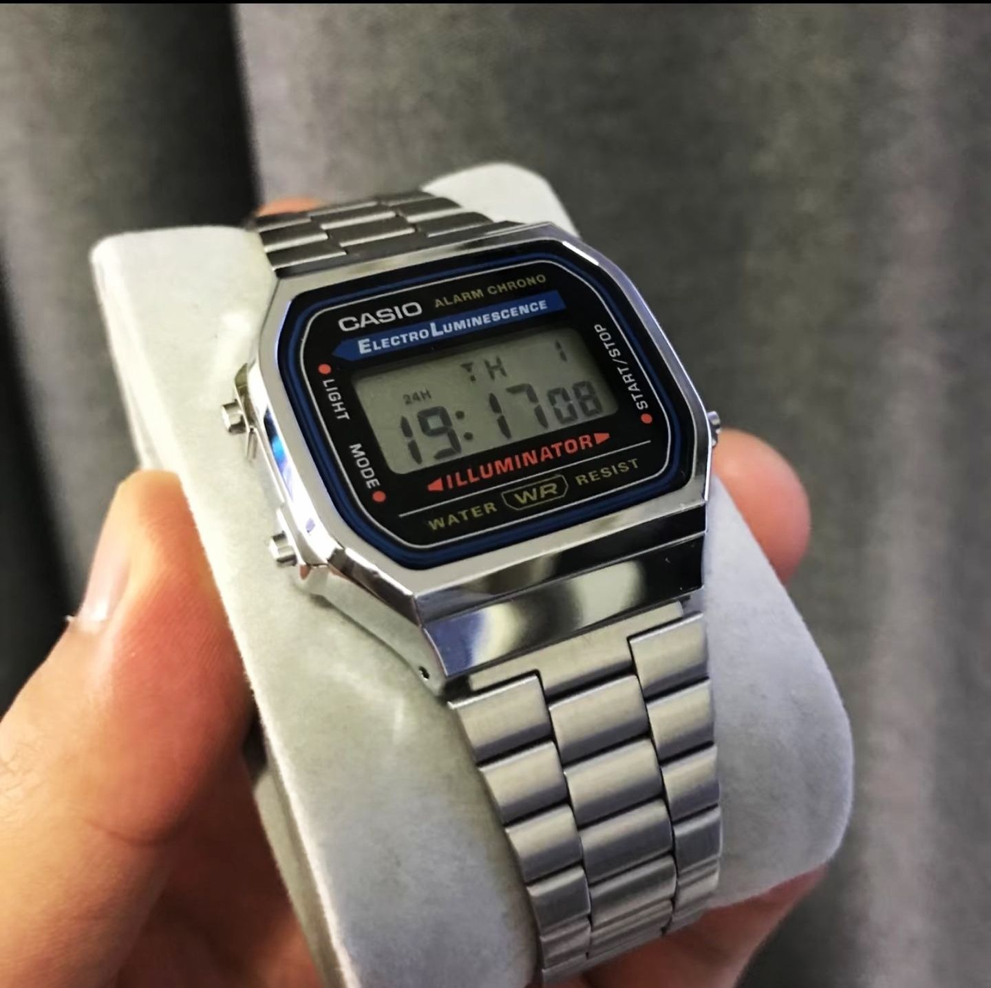 【陈小春同款复古潮品】Casio卡西欧A-158WA-1小方块 不锈钢防水石英表 男女同款仅需116元 复古小方块造型,轻松拿捏美式复古、日系街头等多种风格,戴它出门回头率拉满,搭配什么衣服都有格调;卡西欧正品保障,功能丰富(闹钟、计时样样行),还防水耐磨,学生党、打工人闭眼入都不心疼;石英机芯走时准,不锈钢表带经久耐用,日常洗手、小雨天完全不怕,既是实用工具表,也是时尚配饰。