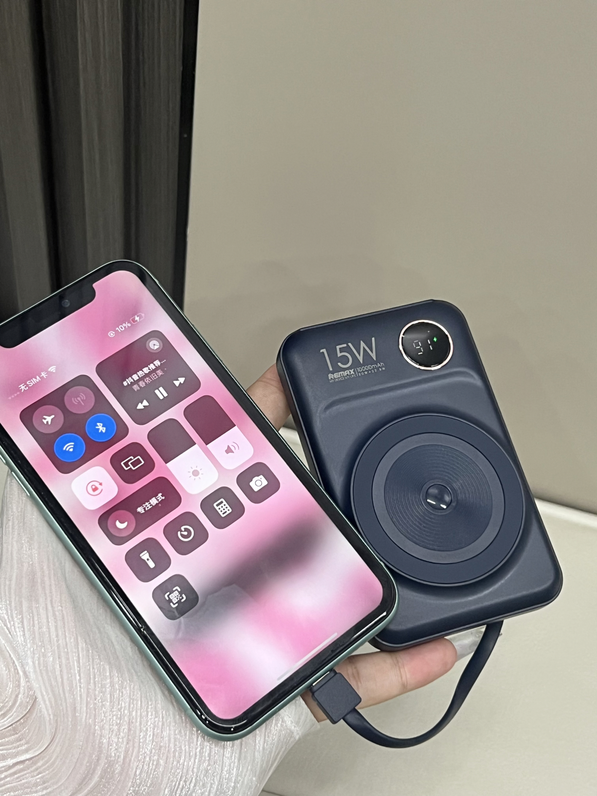 一出门 这手机电是真不抗用啊 索性备个充电宝 但是都不抗用 要不然就是忘带线 这回好了 发现了这个睿量家的充电宝 机身有点像一个复古相机 可以同时充安卓和苹果 我这个是10000毫安的 出门拿着也方便 可以上高铁和飞机 磁吸的设计 也可以直接吸在后面 我可太喜欢了 国庆出游 一定要带着!