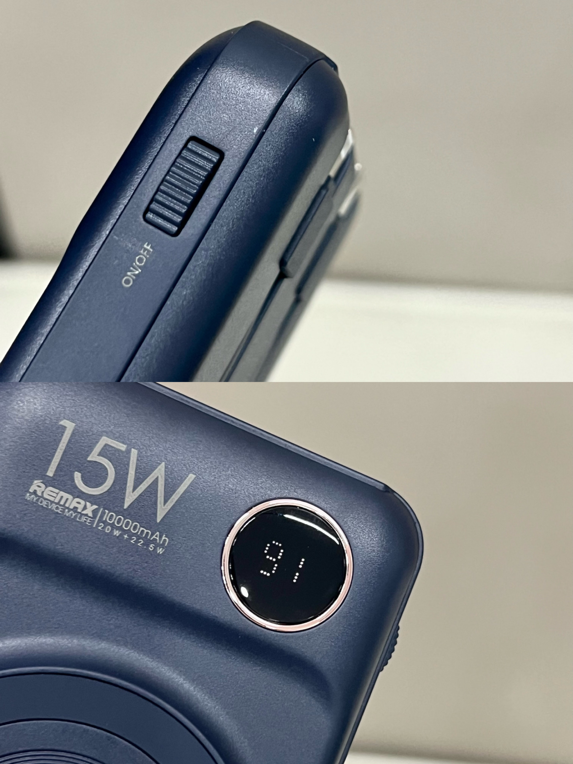 本篇笔记关联了Remax/睿量 10000mAh 22.5W 磁吸 移动电源 小巧 便携 自带双快充线 数显蓝等商品,为用户提供真实的使用体验和购买参考。