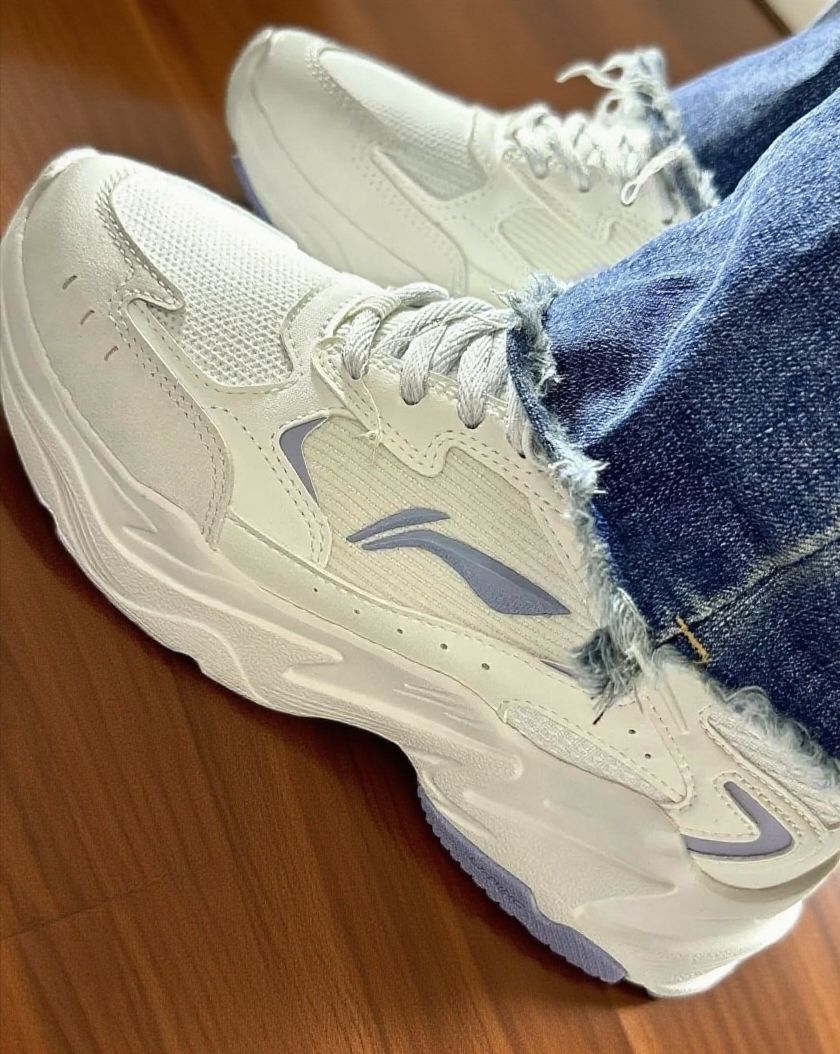 李宁这款老爹鞋,是我近期穿搭的宝藏单品 版型: 整体设计很有层次感,厚底但不笨重,鞋型偏圆润,能把脚修饰得很秀气。搭配牛仔裤、运动裤都很适配,我平时穿它配做旧毛边牛仔裤,休闲感直接拉满,显腿长的效果意外地好。 脚感: 上脚很软和,日常走路、逛个把小时街,脚也不会觉得累。鞋底的回弹感很足,每次迈步都觉得很有劲儿。 优点: 颜值在线,奶白配浅紫的色调很清新,不容易撞款;舒适度高,日常通勤、轻度运...