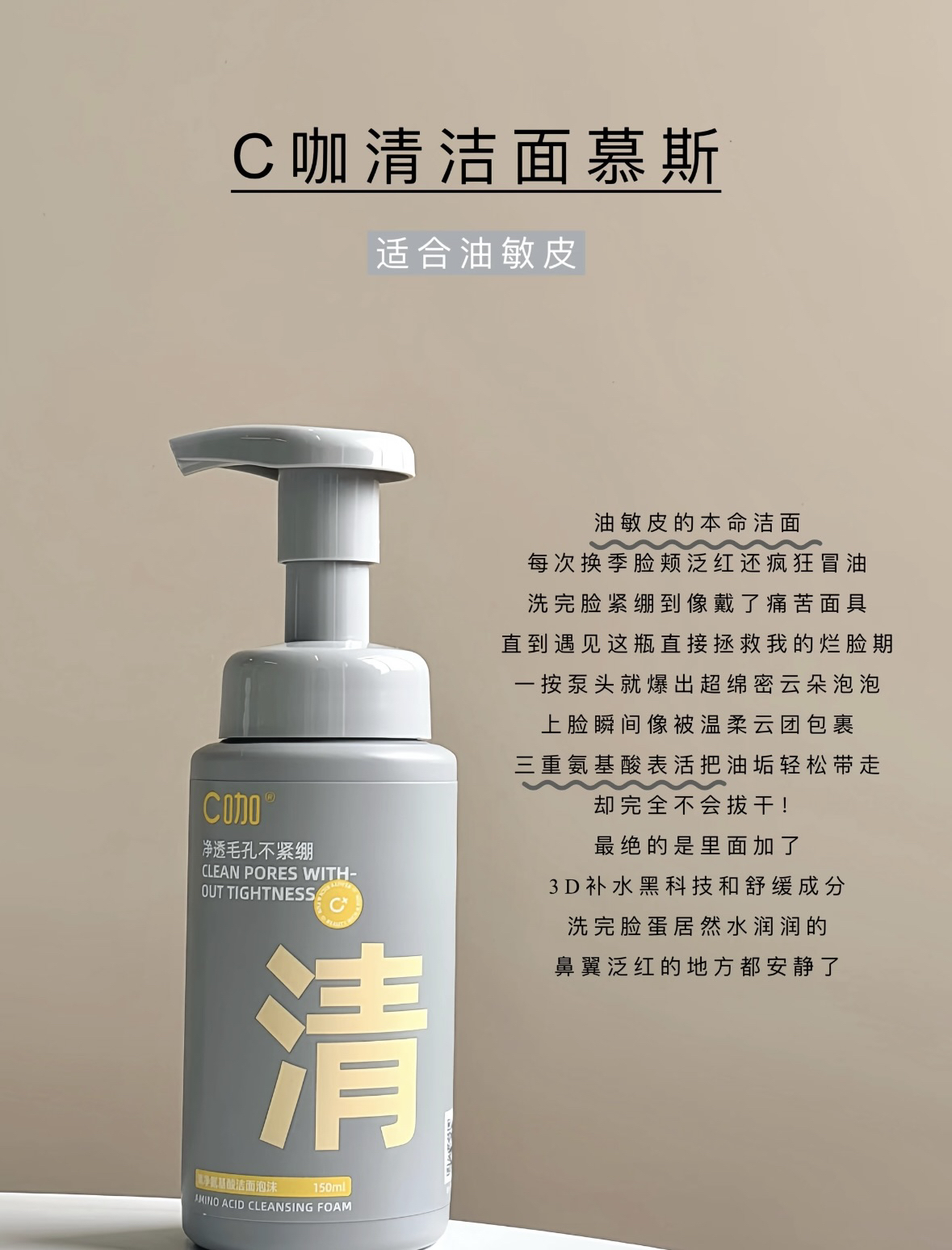本篇笔记关联了C咖 氨基酸祛痘双管洗面奶 控油净痘清洁黑头毛孔清透油修护敏感肌 【2.0】祛痘款、C咖 氨基酸洁面慕斯 控油祛痘保湿温和清洁油敏肌 150ml、C咖 氨基酸祛痘双管洗面奶 控油净痘清洁黑头毛孔清透油修护敏感肌 【3.0】控油款等商品,为用户提供真实的使用体验和购买参考。