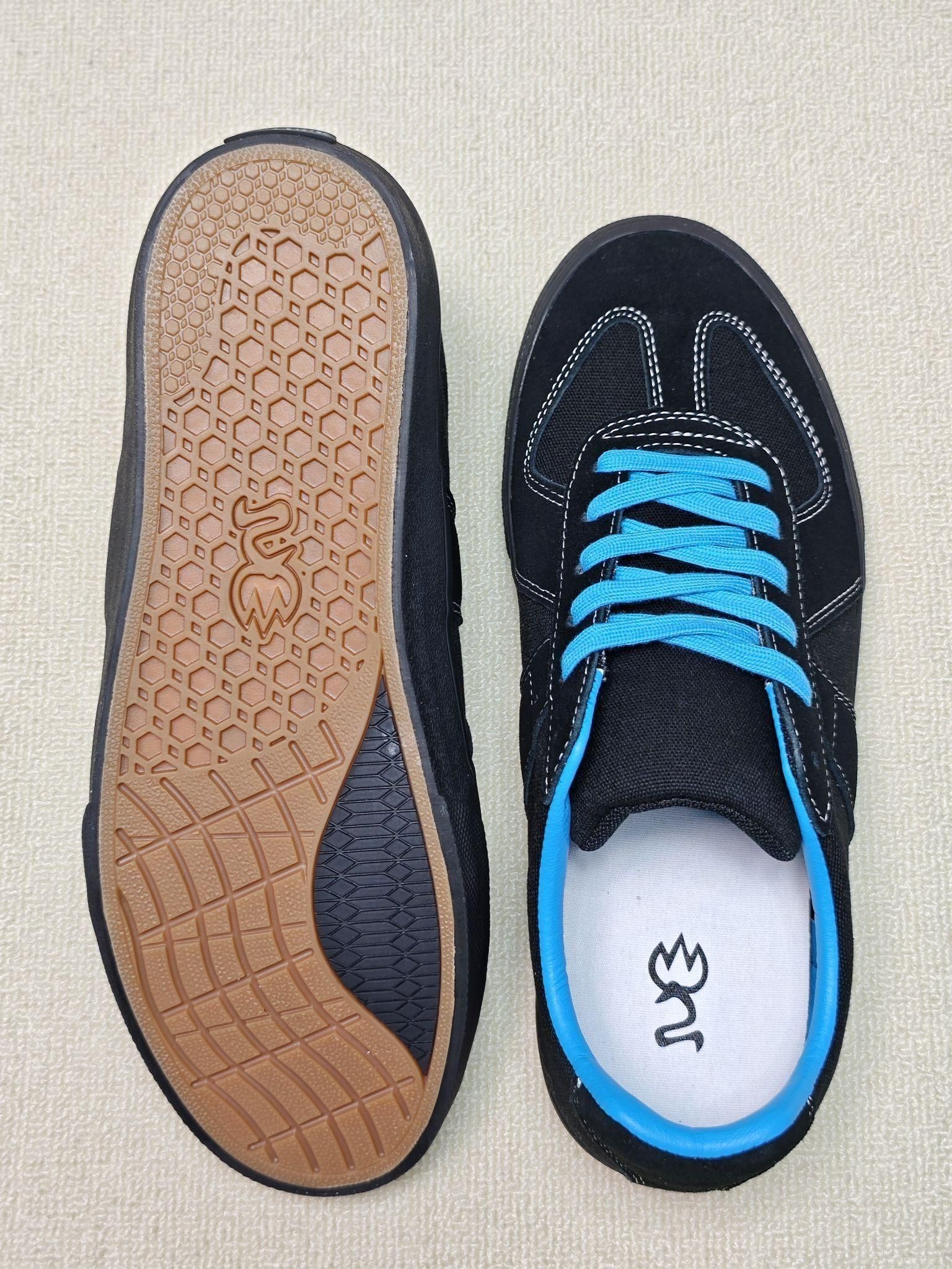 近期种草一双极路客滑板鞋✌️ 鞋子采用复古德训鞋鞋型,牛剖层革+织物材质鞋面质感很好,上脚舒适性不错 黑色鞋面搭配鞋身几处蓝色的撞色设计很吸睛,日常可搭配牛仔裤和工装裤😉 缓震方面采用PU减震鞋垫,上脚脚感软弹,长时间走路也不累脚😎 硫化大底耐磨不错,尺码正常不偏码