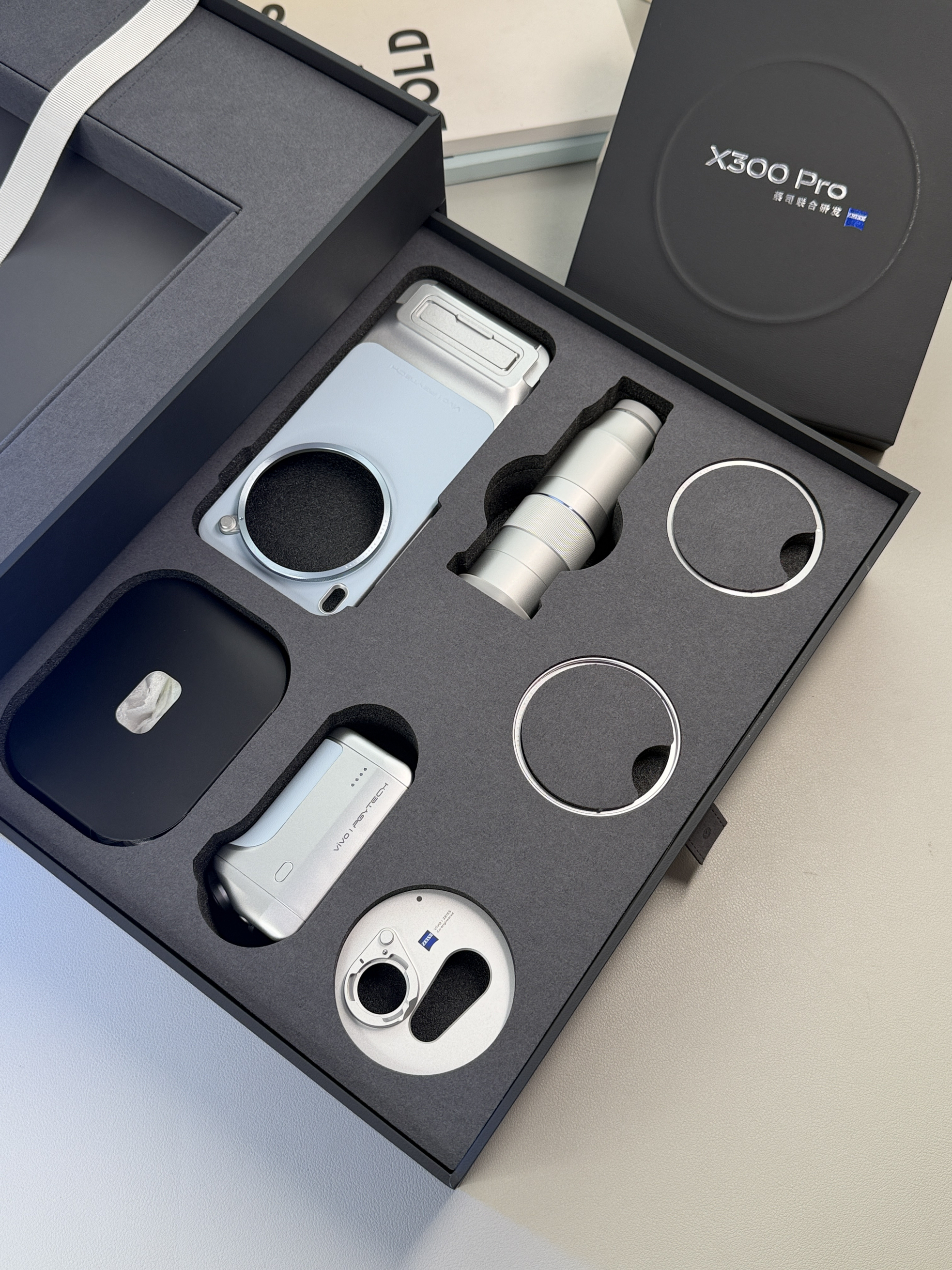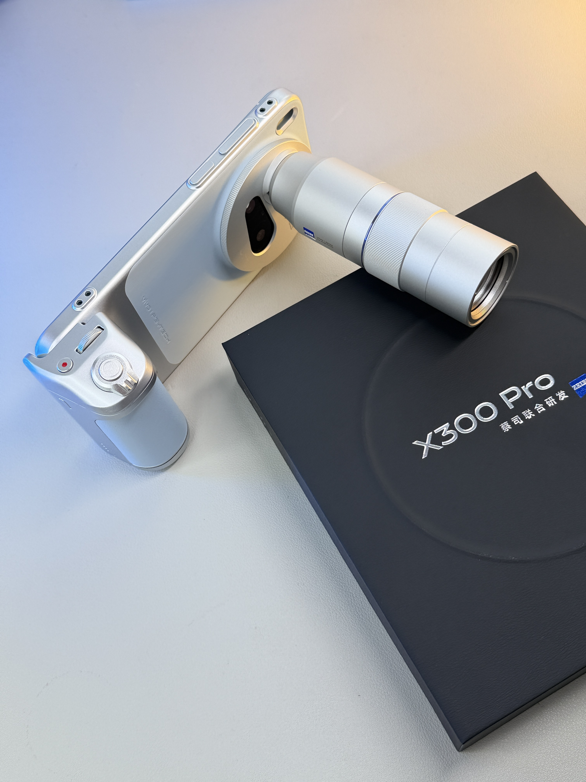 还是一如既往的诚意满满👍 套装专属保护壳,摄影手柄,增距镜一应俱全。 装配完成后简直就是手中的“摄影大炮”📷 手柄上的快门键手感清脆!反馈明确,每次按下都超级过瘾🥰今年的演唱会神器必然有vivo X300 Pro 一席之地了! 手机本体上手的质感超棒✨今年的影像模组并不十分突出,整体更协调美观~ 淡淡的天蓝色很戳中我的审美🩵看着清爽又高级。屏幕改为了我很喜欢的直屏设计,握持手感很棒✅ 搭...