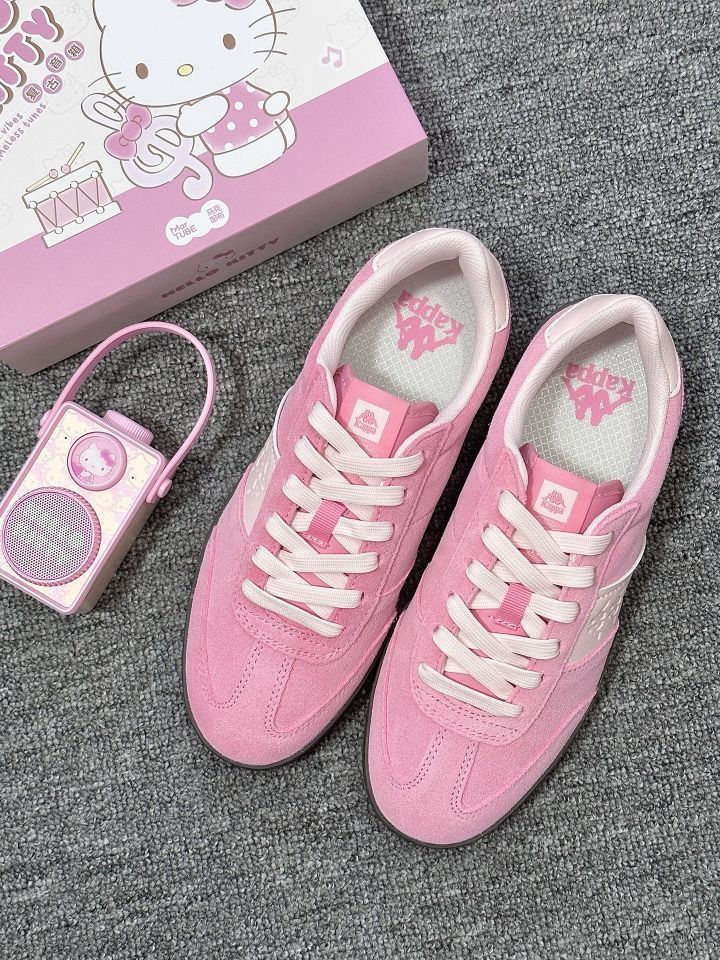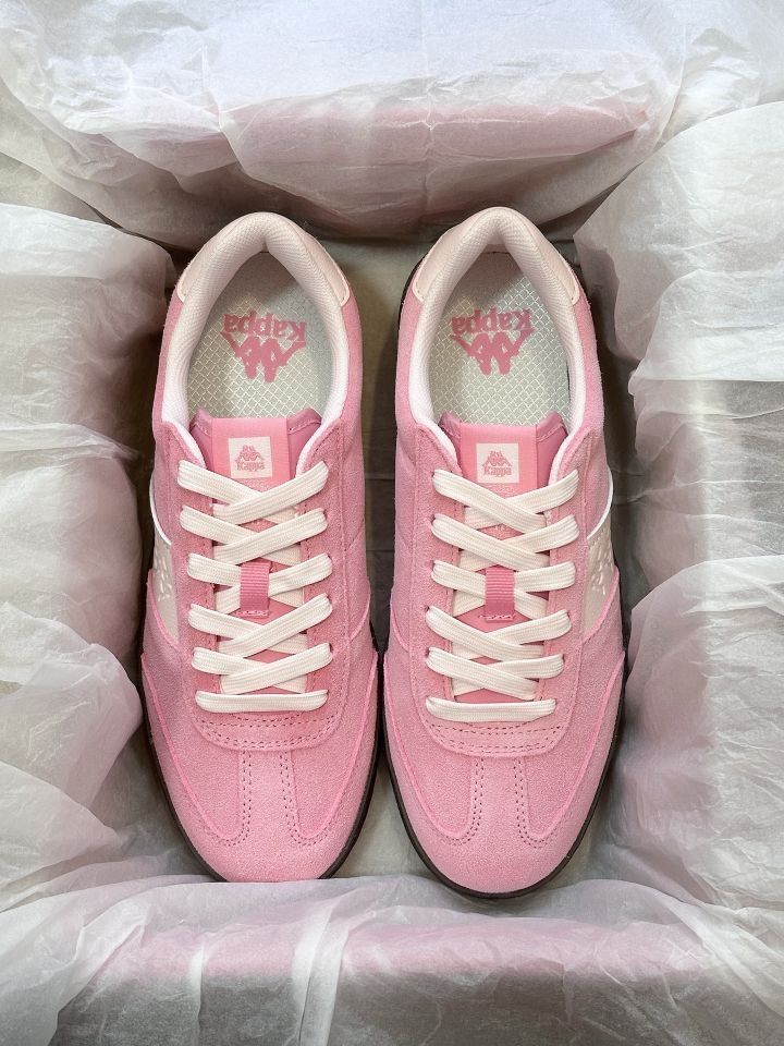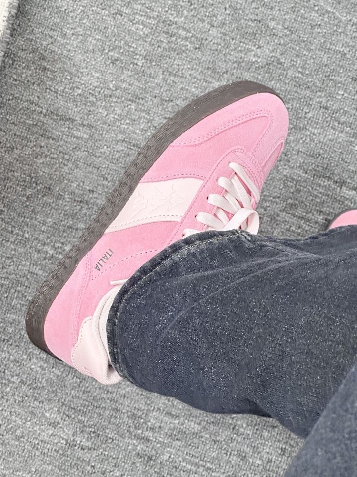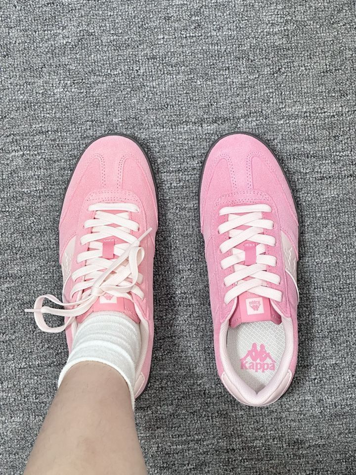 家人们!Kappa这双粉鞋太会了吧💥 粉粉嫩嫩的配色,像把蜜桃汁浇在鞋上~ 麂皮质感高级,上脚软乎乎巨舒服,复古又甜妹,搭配裙子裤子都很绝,妥妥穿搭作弊神器,闭眼冲就完事!