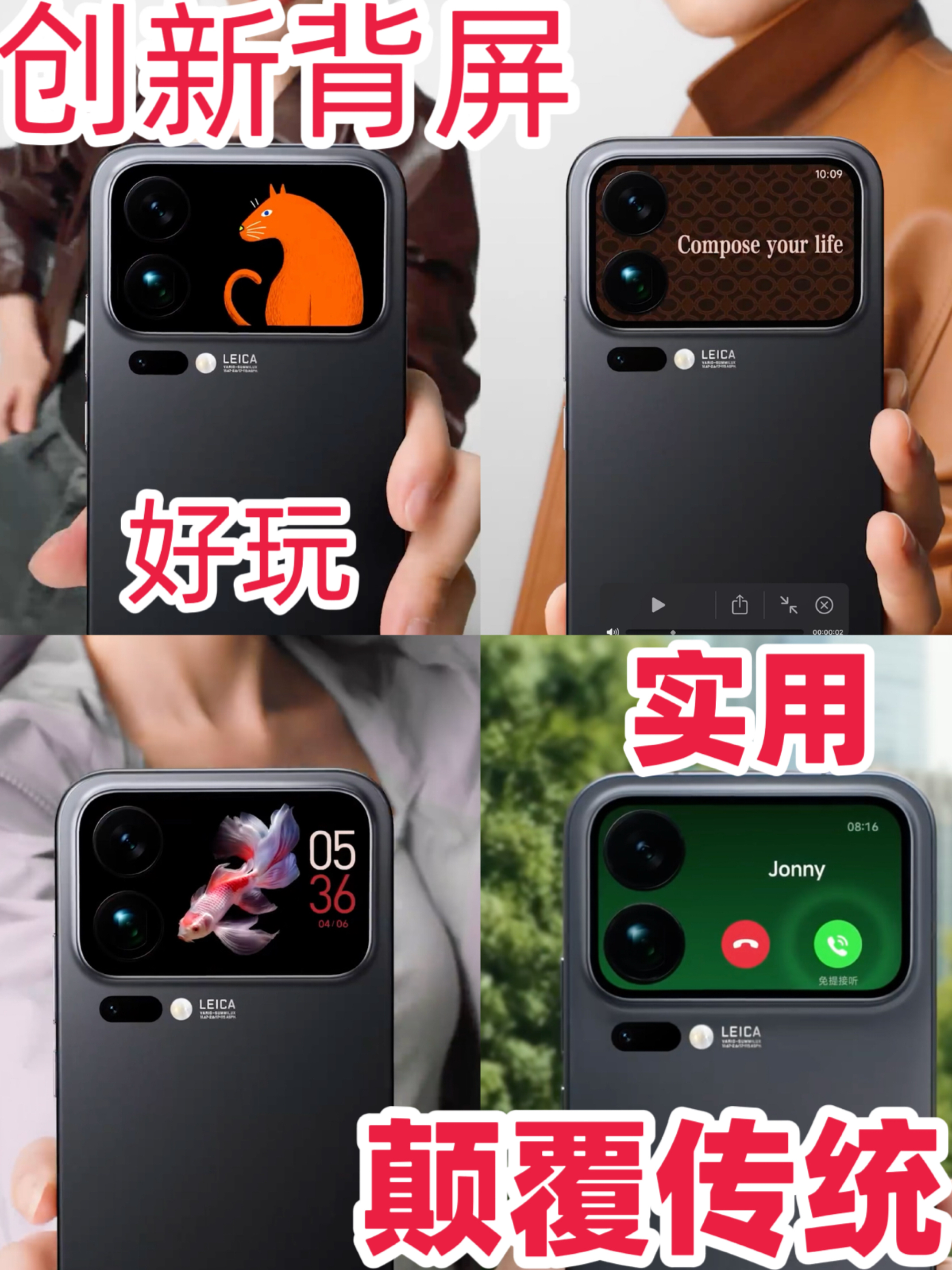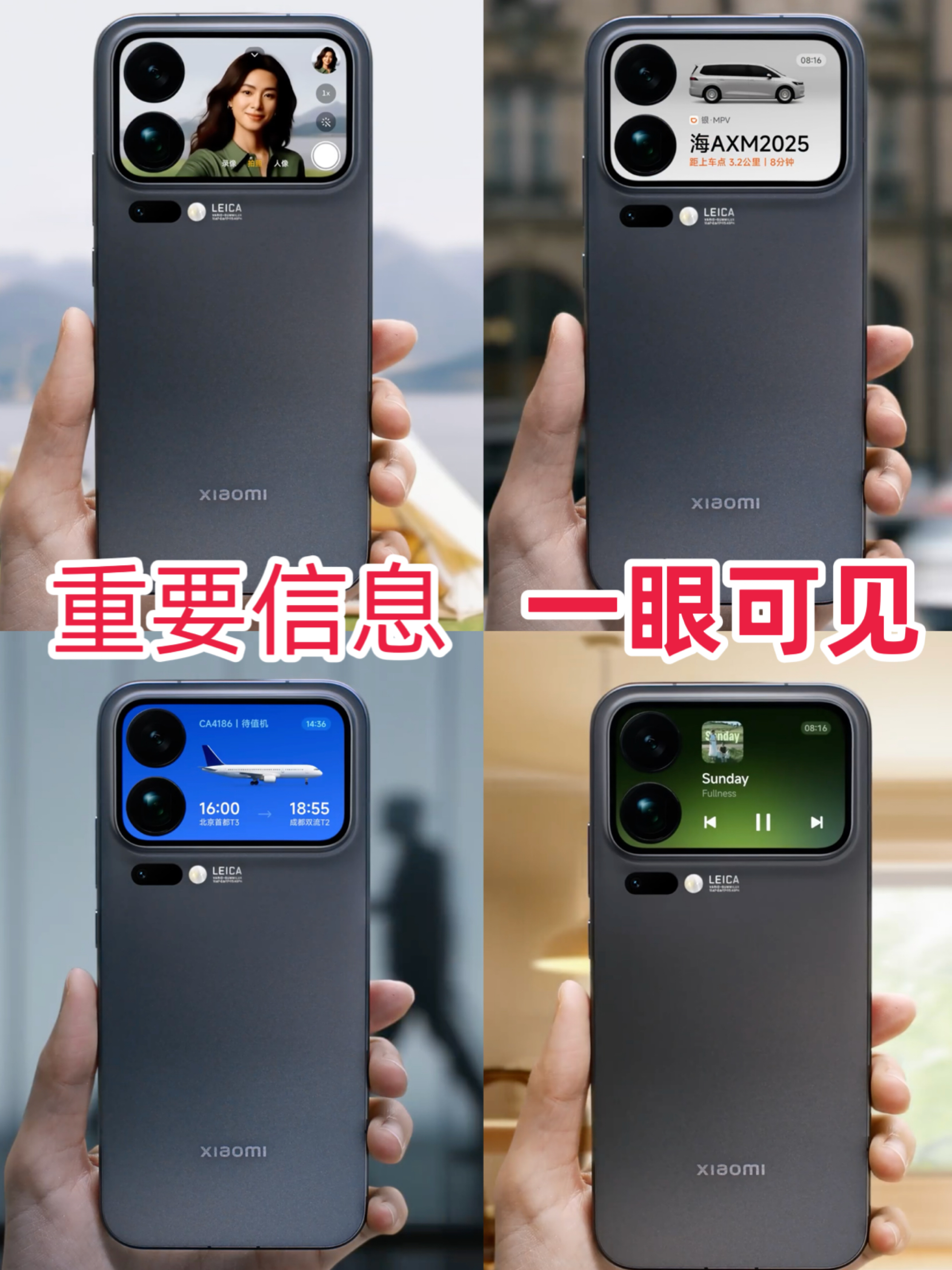 🔍背面设计:一块屏 vs 一个框,玩法天壤之别! 同样是17Pro,同样在手机背面搞花样。果子是延续经典,强调功能;小米17Pro的创新背屏直接颠覆传统——不仅是后摄模组的一部分,更是一块可交互、可定制、能玩出花的超级副屏 !把“好玩”和“实用”这两个词在一部手机上有了全新演绎,和同样是17Pro相比,有了别样的魅力。 🎨 背屏自拍:前置镜头怎么和后置镜头比?! 📲为什么爽? 直接调用后置徕卡...