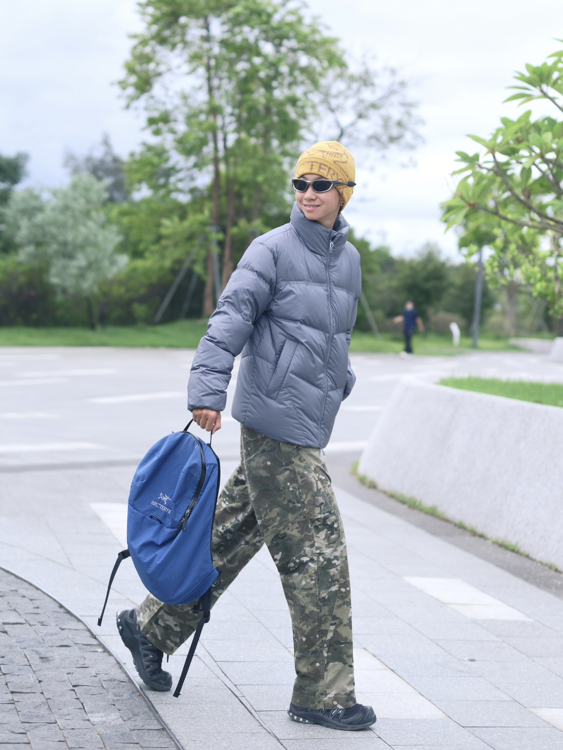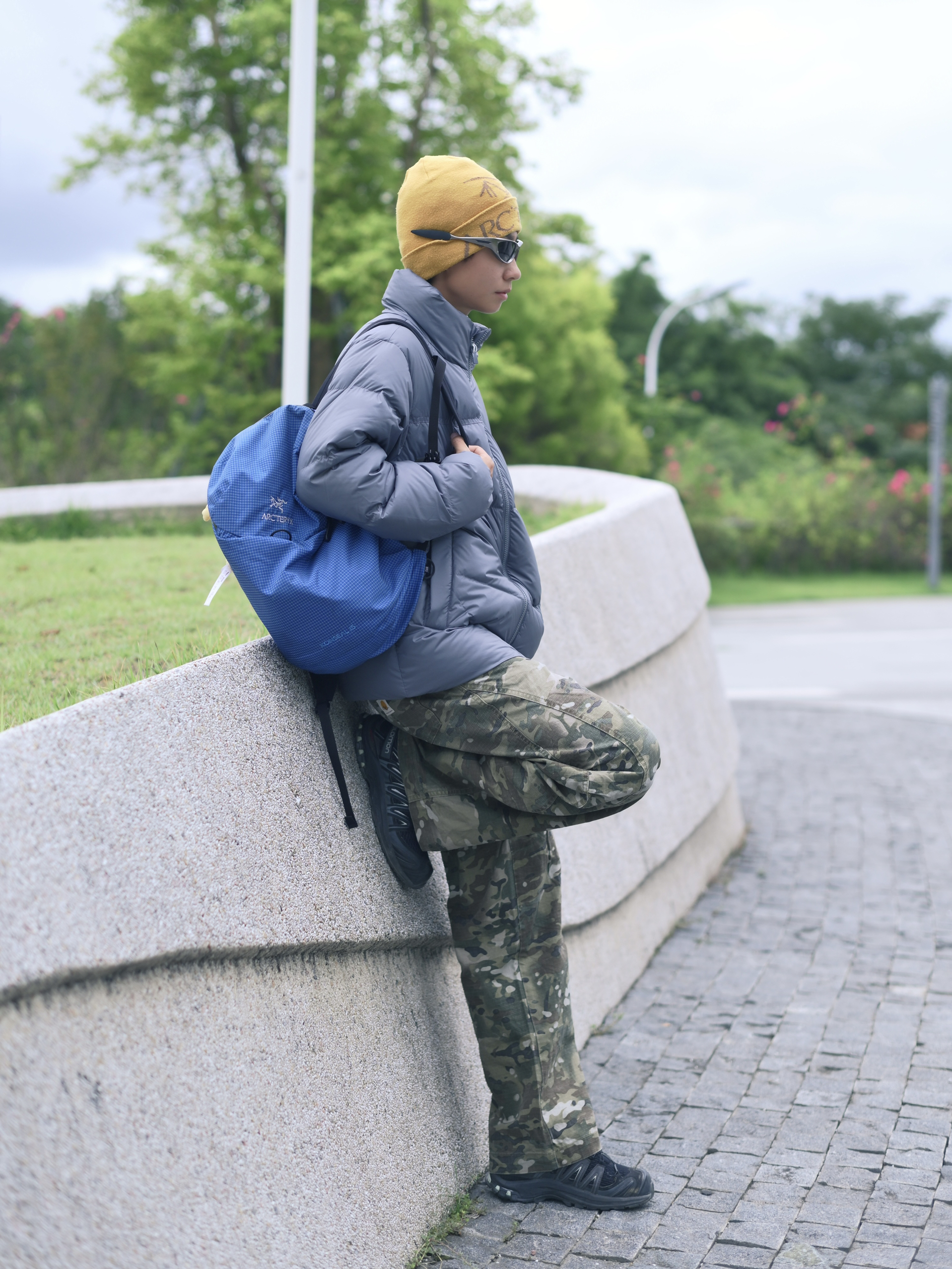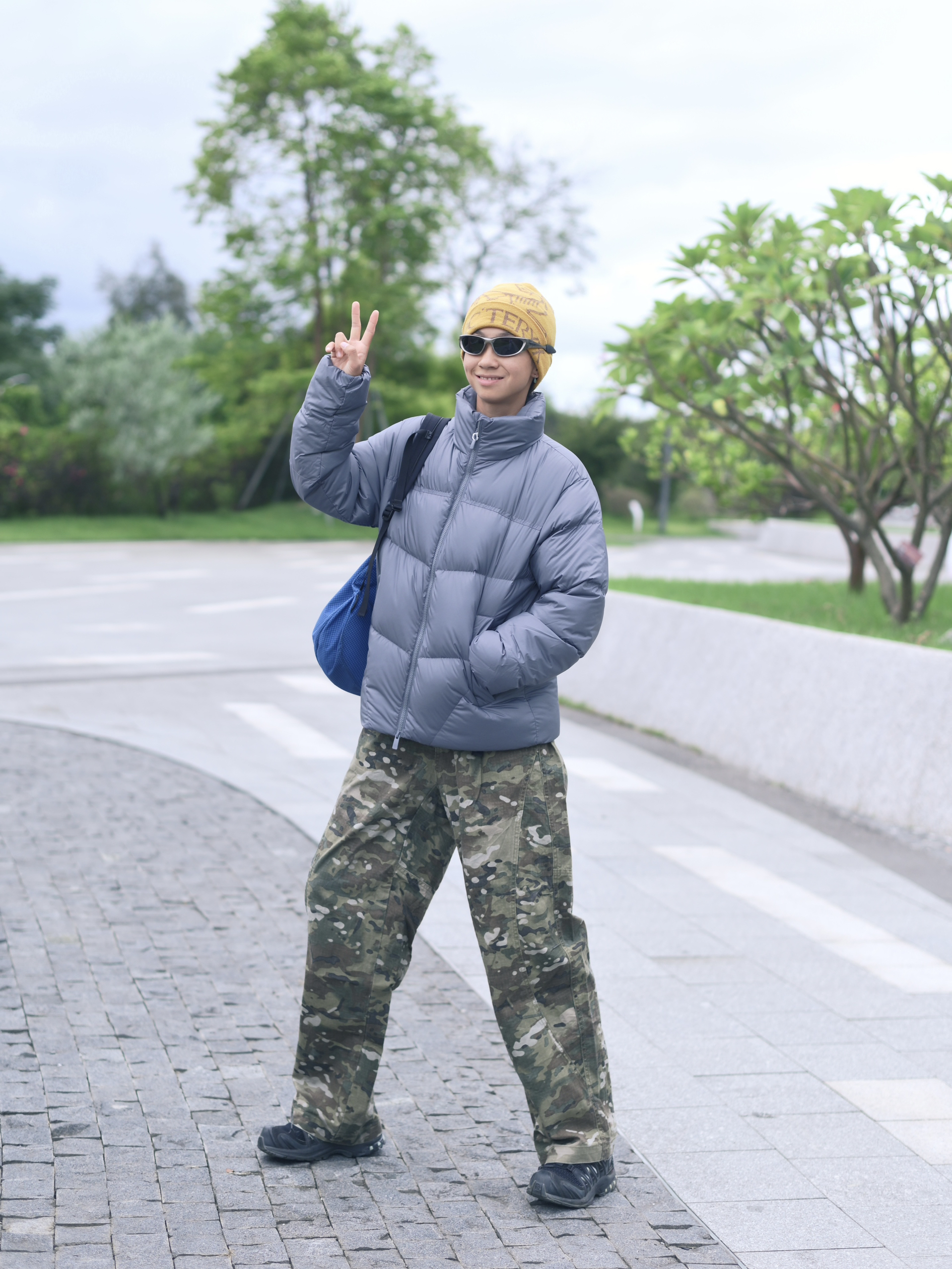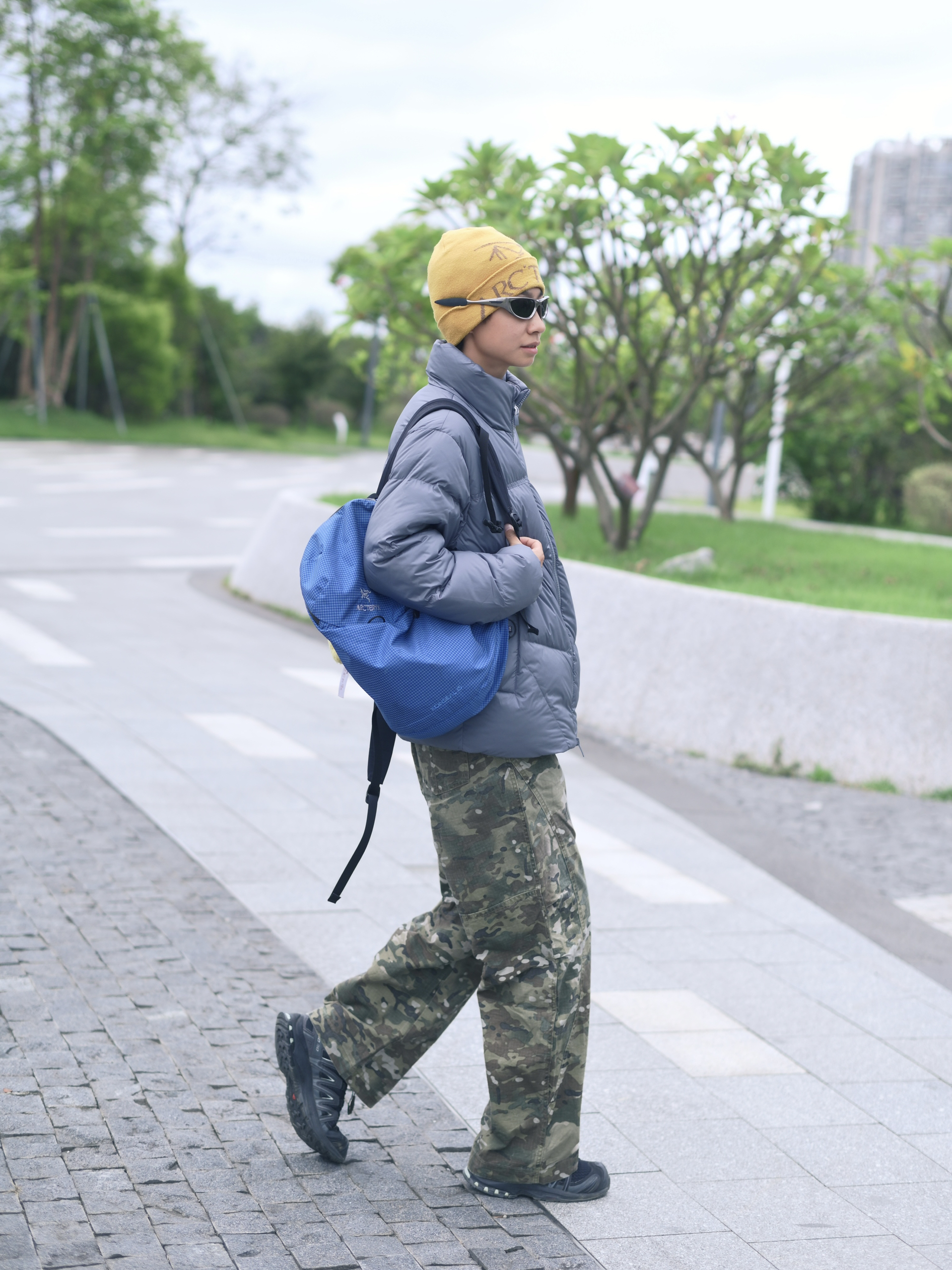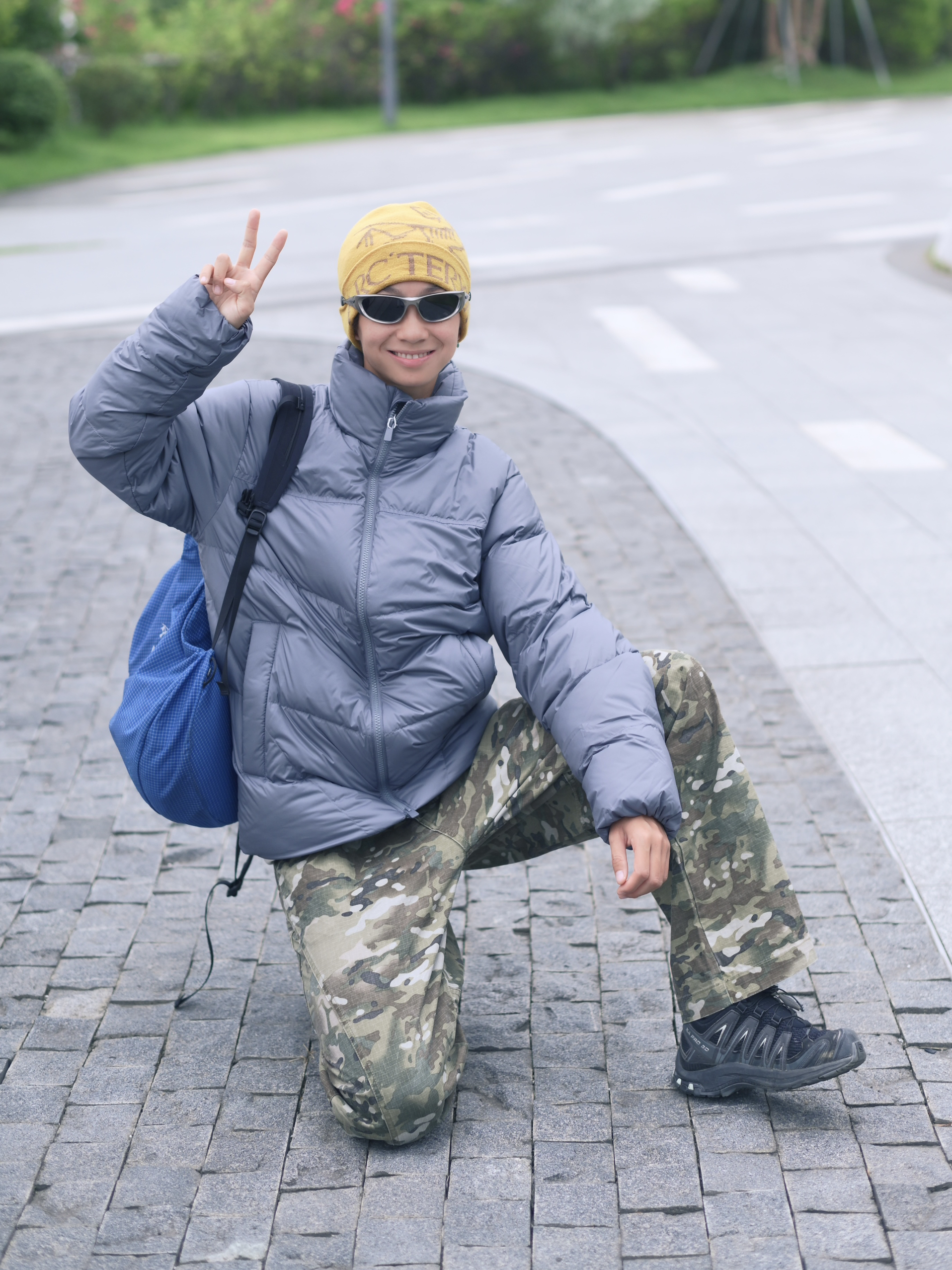 欢迎进入无敌小圆哇子的穿搭分享频道 172CM|55KG 👔:m👖:m|👟:39码 突然降温的天气终于能穿上森马宝藏羽绒服啦~ 迷彩长裤+黑色徒步鞋打造户外松弛感 羽绒服双侧拉链能装的哇 下摆还能调节防风 搭配始祖鸟黄色冷帽点亮整套look,山系氛围感直接拉满❄️
