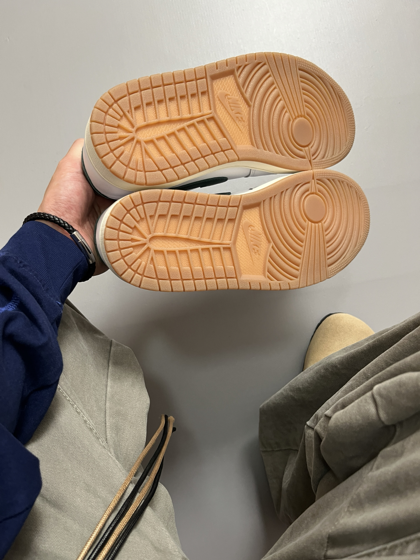 秋季打算穿上我的AJ1去炸街🔥 这双全白➕军绿色点缀好有复古感呀 依旧皮革材质的鞋面,摸着也有质感 ❌省略掉鞋底偏硬这个通病不说 它的穿搭性还是蛮强的👌 任意搭配一条工装裤或者牛仔裤轻松出片~ ⚠️尺码参考:170/120 穿着41 码正好的 @潮流精选 #入秋球鞋穿搭 #板鞋控DNA动了 #新鞋零时差 #一人一张球鞋美照 #上瘾的AJ1