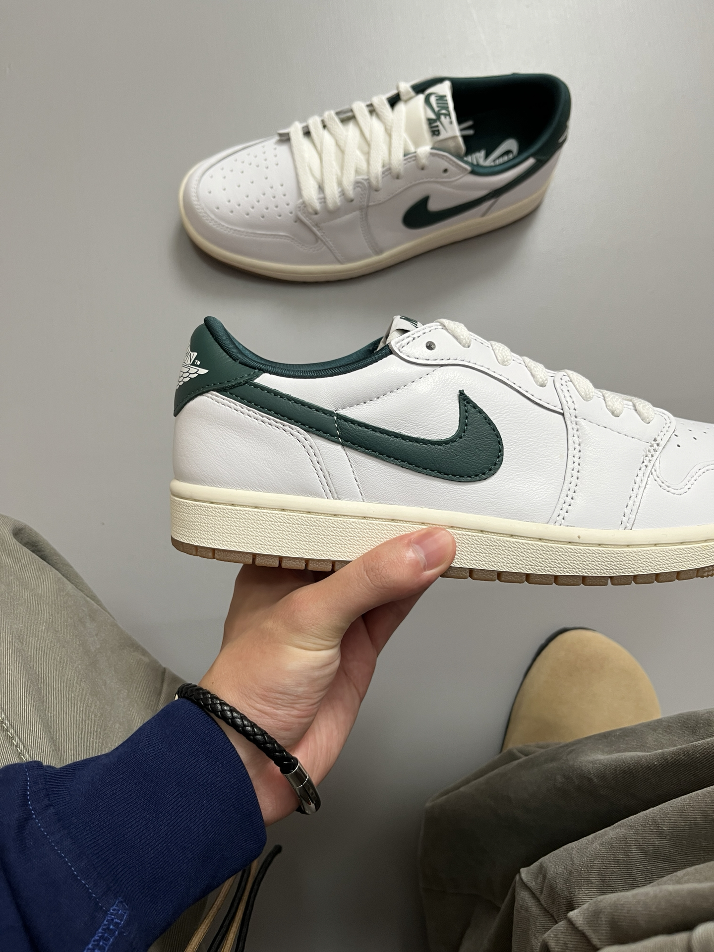本篇笔记关联了Air Jordan 1 板鞋 运动休闲鞋 复古潮流支撑合成革 白色/墨绿色等商品,为用户提供真实的使用体验和购买参考。