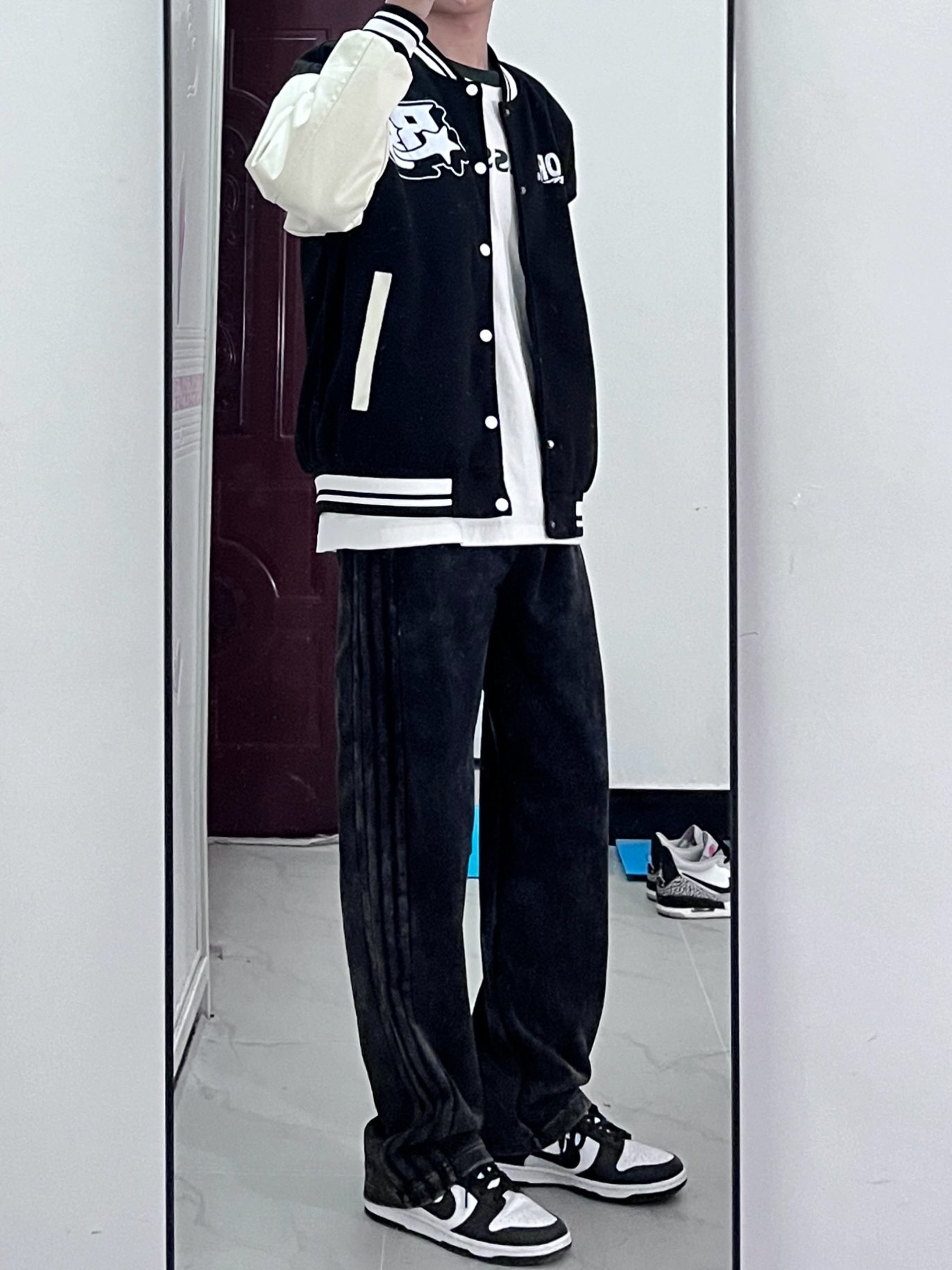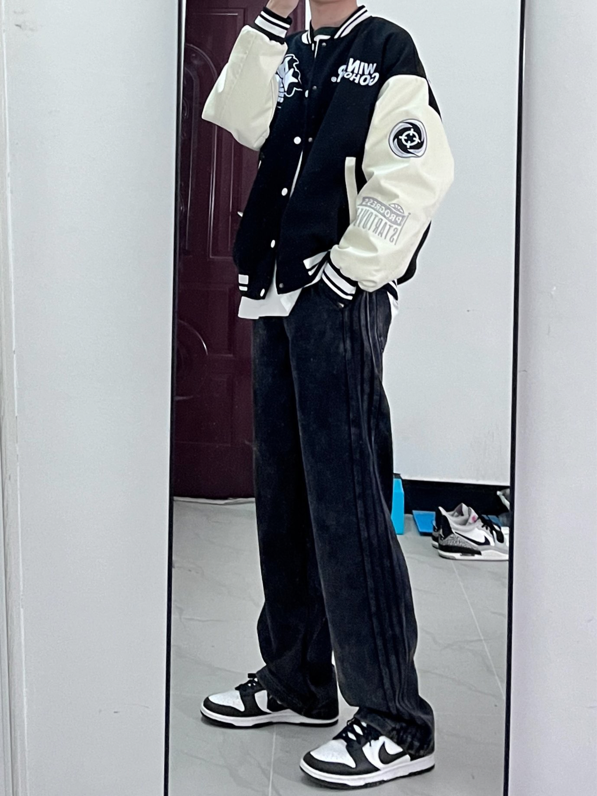 今天穿这一身 黑色牛仔裤真的很适合秋天穿 这件搭配黑色的棒球服就很帅 里面可以再加一件连帽卫衣 松弛感拉满👌