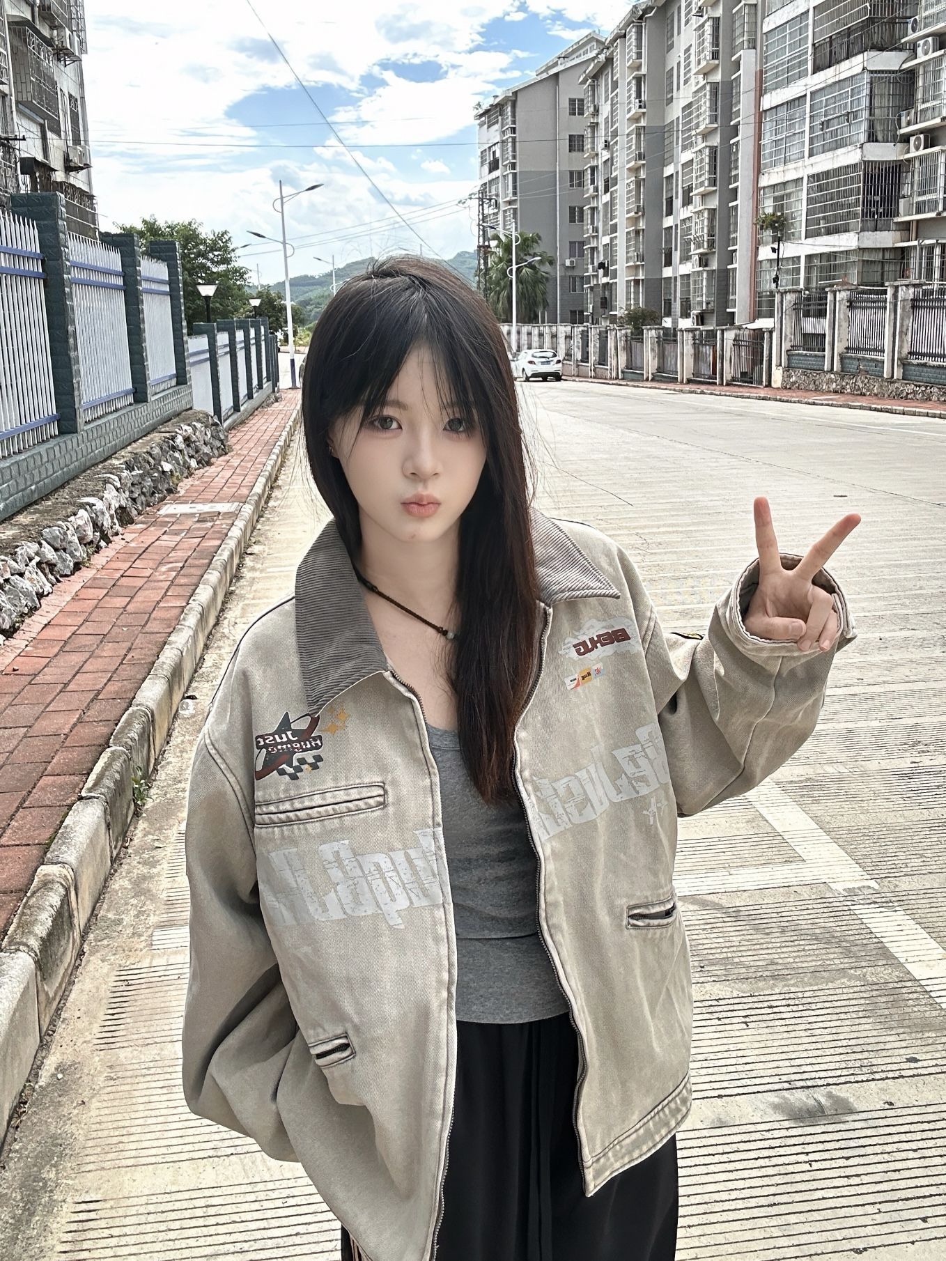 今天穿的是 BJHG 的美式复古外套 穿上真的回头率满满🥰 超级帅的印花logo 很重工 版型很好 🛍️167 95 M码