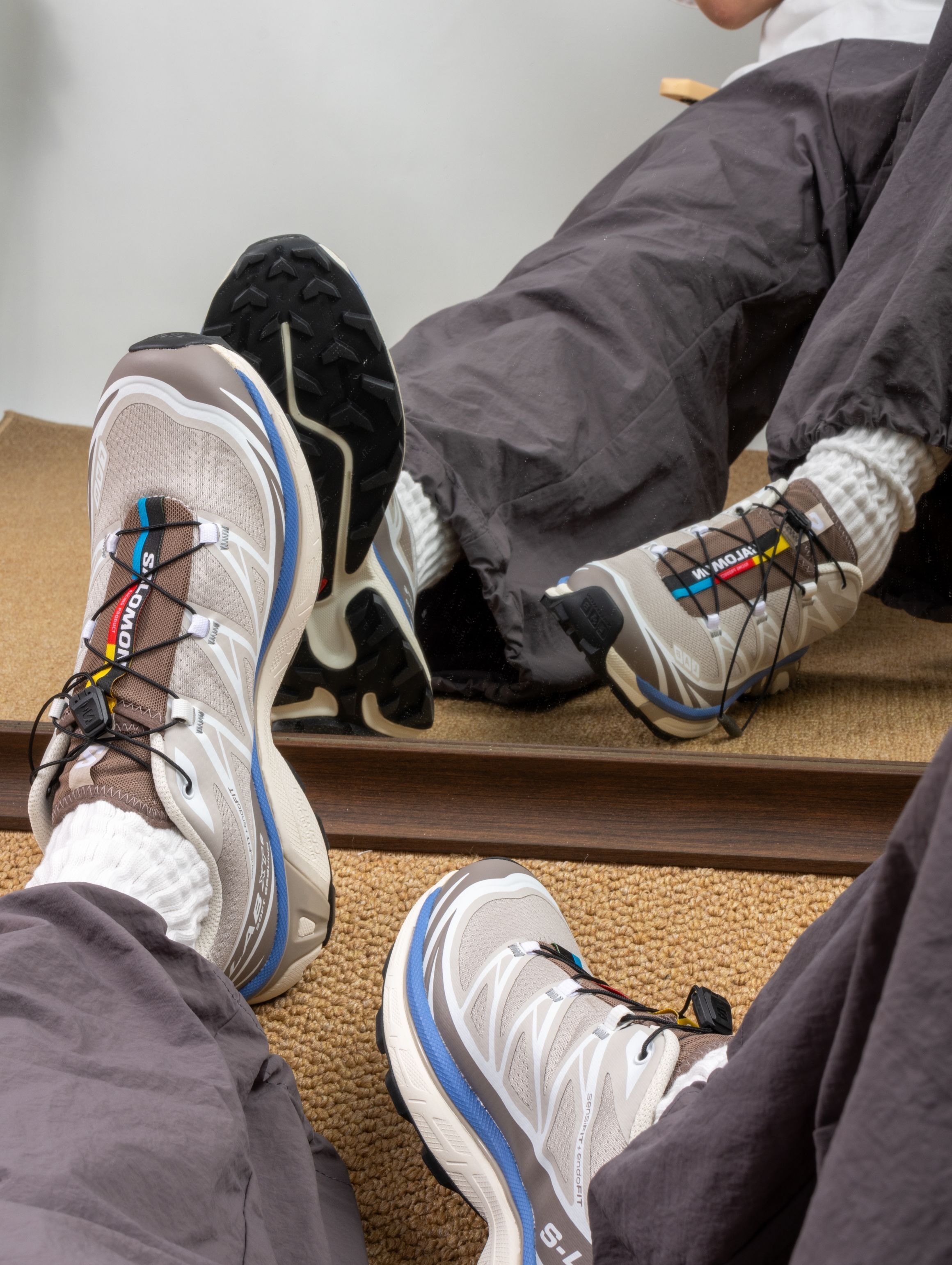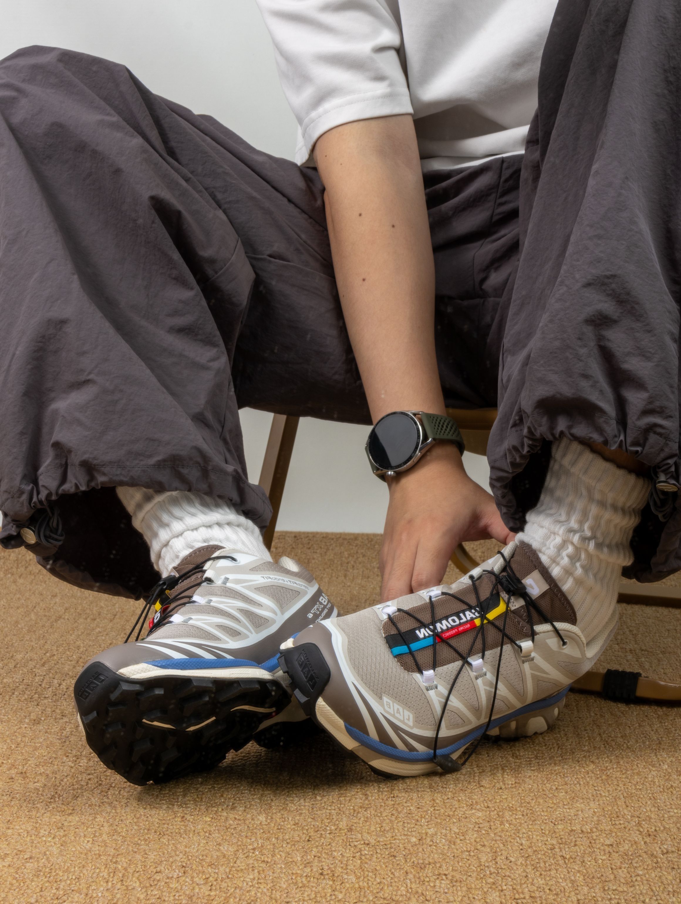 马上要放假了,大家决定去哪玩了吗?我要穿着这双XT-6出去玩喽,颜色简单还好搭。 灰白色为主色调,外加淡蓝色为线条点缀,黑色鞋底为基准,标准的越野鞋配置。 XT-6的脚感不用多说,之前我也分享过好几双喽。