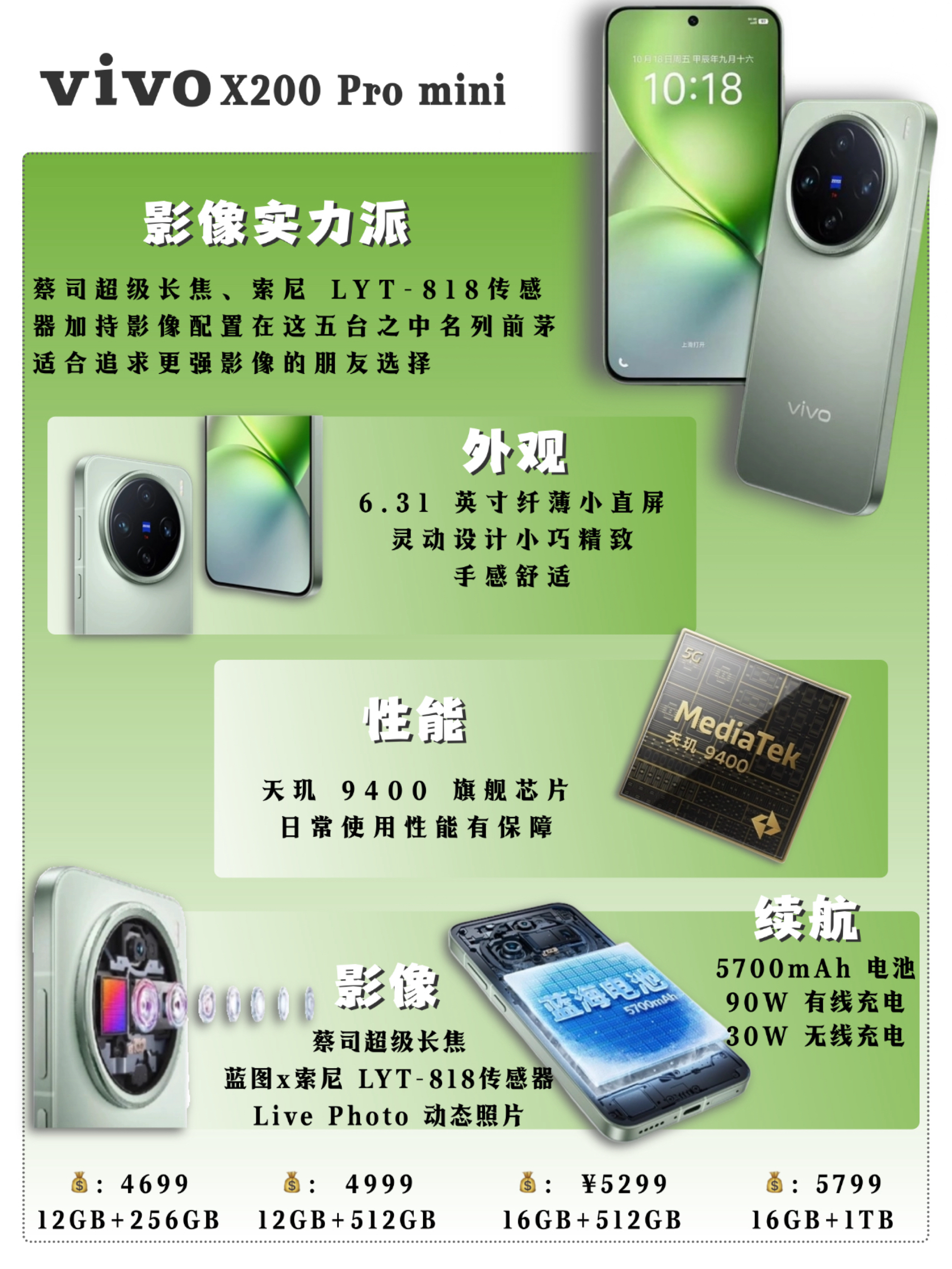 小屏党的宝子看过来!2025年这些小直屏旗舰机也太香了吧✨ 小尺寸+旗舰性能+绝佳手感,每款都戳中痛点,快来看看哪款是你的菜! 🍃vivo X200 Pro mini 直屏旗舰影像实力派 天玑9400+蔡司三摄,6.31英寸小屏也能拍出大片质感!5700mAh电池续航在线,影像党冲就完了~ 💰4699起(12GB+256GB) 🌊vivo S30 Pro mini 小尺寸全能选手 天玑9300+潜...