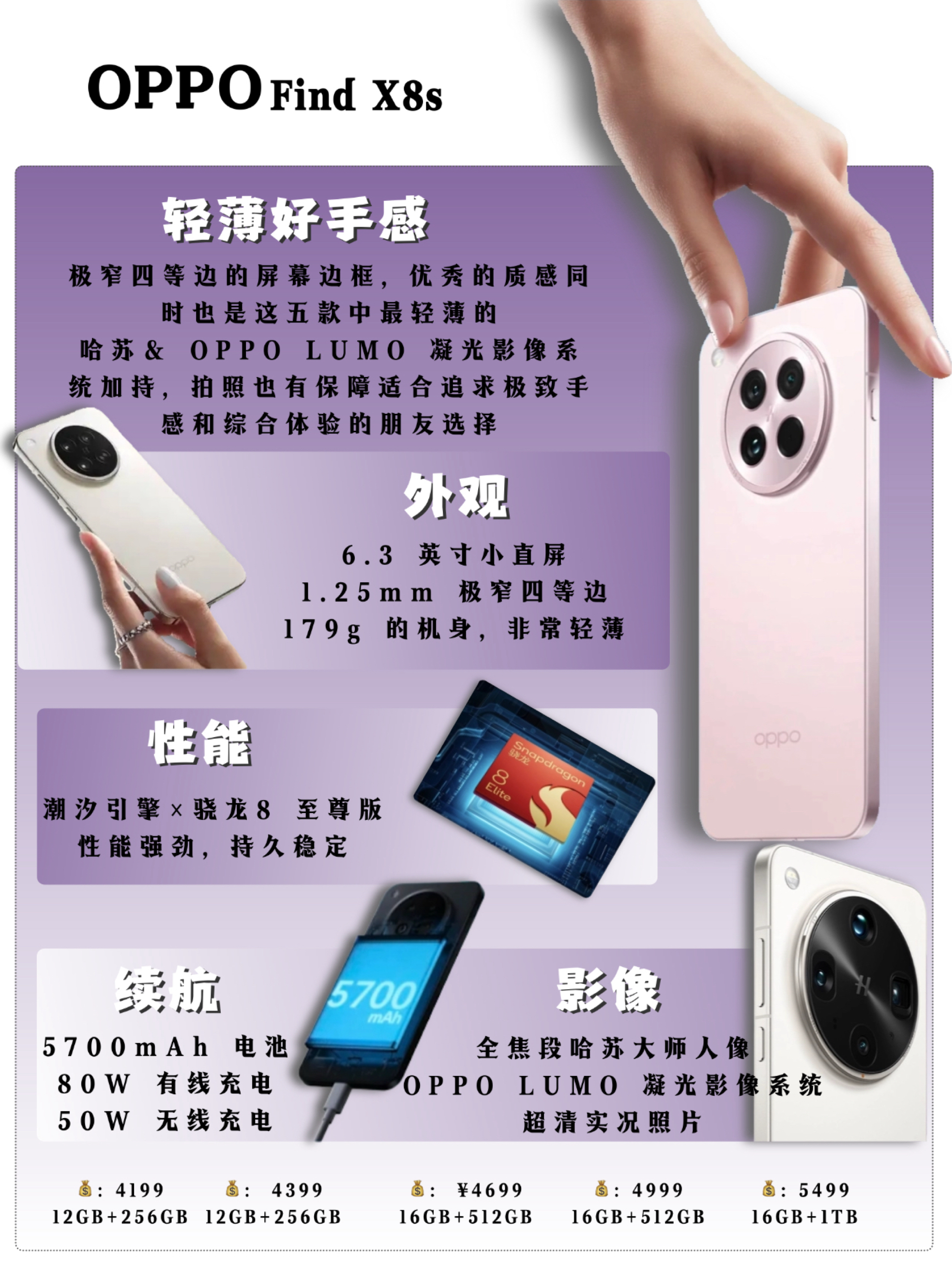 本篇笔记关联了OPPO Find X8s+ 5G 手机 6.59英寸 超轻超薄 超绝质感 哈苏影像 夜景拍摄大师 四等边极窄 哈苏人像 超长续航 全网通 大电池 快充 潮汐引擎 风信紫、OnePlus/一加 13T 5G 手机 6.3 英寸小屏 6200毫安时电池 晨雾灰、vivo X200 Pro mini 5G 手机 拍照 超级长焦 全网通 闪充 蓝晶 小屏 超大底主摄 特质纤薄小直屏 旗舰芯片 大电池 快充 淡紫等商品,为用户提供真实的使用体验和购买参考。