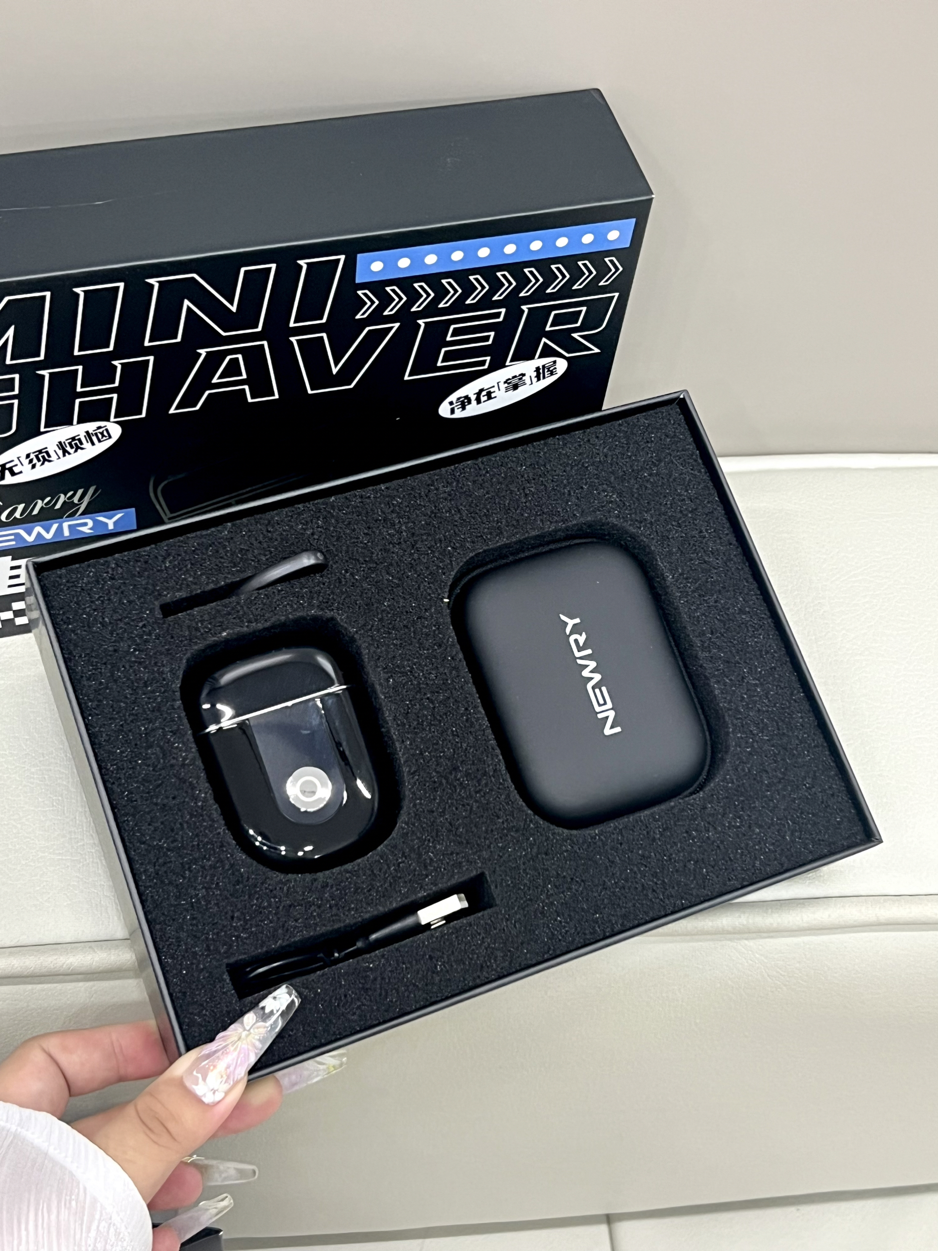 这个是纽立家的剃须刀 我猜只有男孩子才懂叭 机身真的很小巧 还送啦收纳包 出门拿着也方便 磁吸的设计 盖子和剃须头都是磁吸的 方便拆卸 礼盒+礼袋的包装很适合送给男朋友呀~