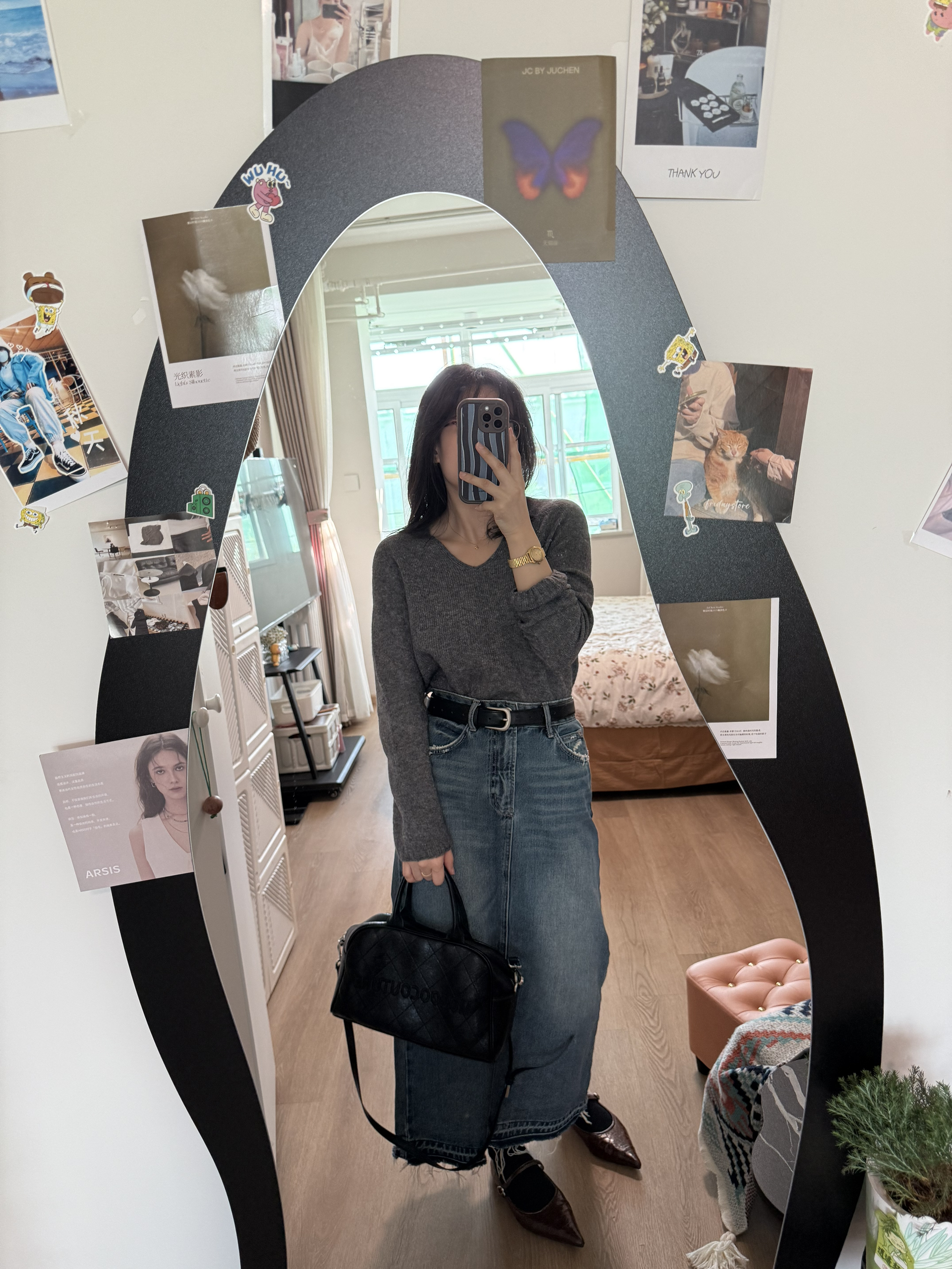 🌟灵活适配四季 针织衫的厚度与织法决定了它的跨季能力——无论是春秋、秋冬、单穿、叠穿都恰到好处 🌟饰品则是这套穿搭的灵魂所在 颈间戴着精致的金色项链,在灰色毛衣的衬托下,闪耀着光泽,V领针织最好戴细细的项链🤓 耳旁的金色耳环,造型独特又不失优雅,微微晃动间尽显精致,提升了脸部的时尚感。 手上虽没有过多装饰,但搭配简约的戒指,细节之处彰显品味。 最后是黑色的手提包,简约的款式,质感上乘,金属装饰为其...