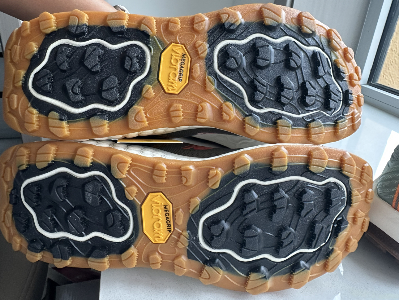 绿色的v2缓震材料更厚,也就意味着脚感更舒服些,大底是自家的大底,不是v底 棕色的v7是vibram 大底,更硬核耐用些,但v2的大底也不错,硬度也足够,应该和v底差不了多少 但好像最近绿色的v2涨价了,前段时间还是同价位