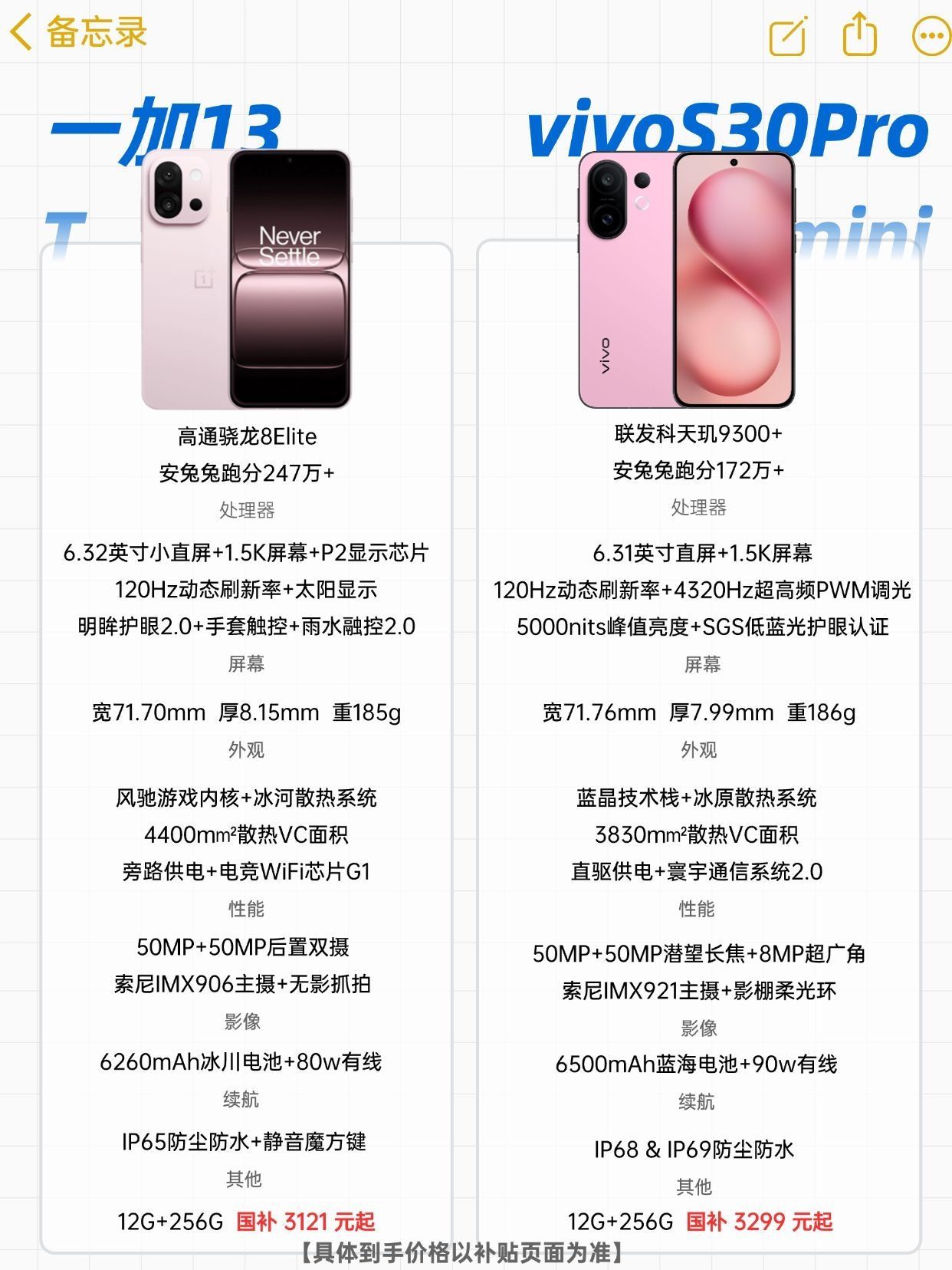 本篇笔记关联了OnePlus/一加 13T 5G 手机 6.3 英寸小屏 6200毫安时电池 怦然粉、vivo S30 Pro mini 5G 手机 多彩小直屏 超级潜望长焦 6500mAh 全网通 长续航 变焦 蓝晶 护眼 小屏 酷莓粉等商品,为用户提供真实的使用体验和购买参考。