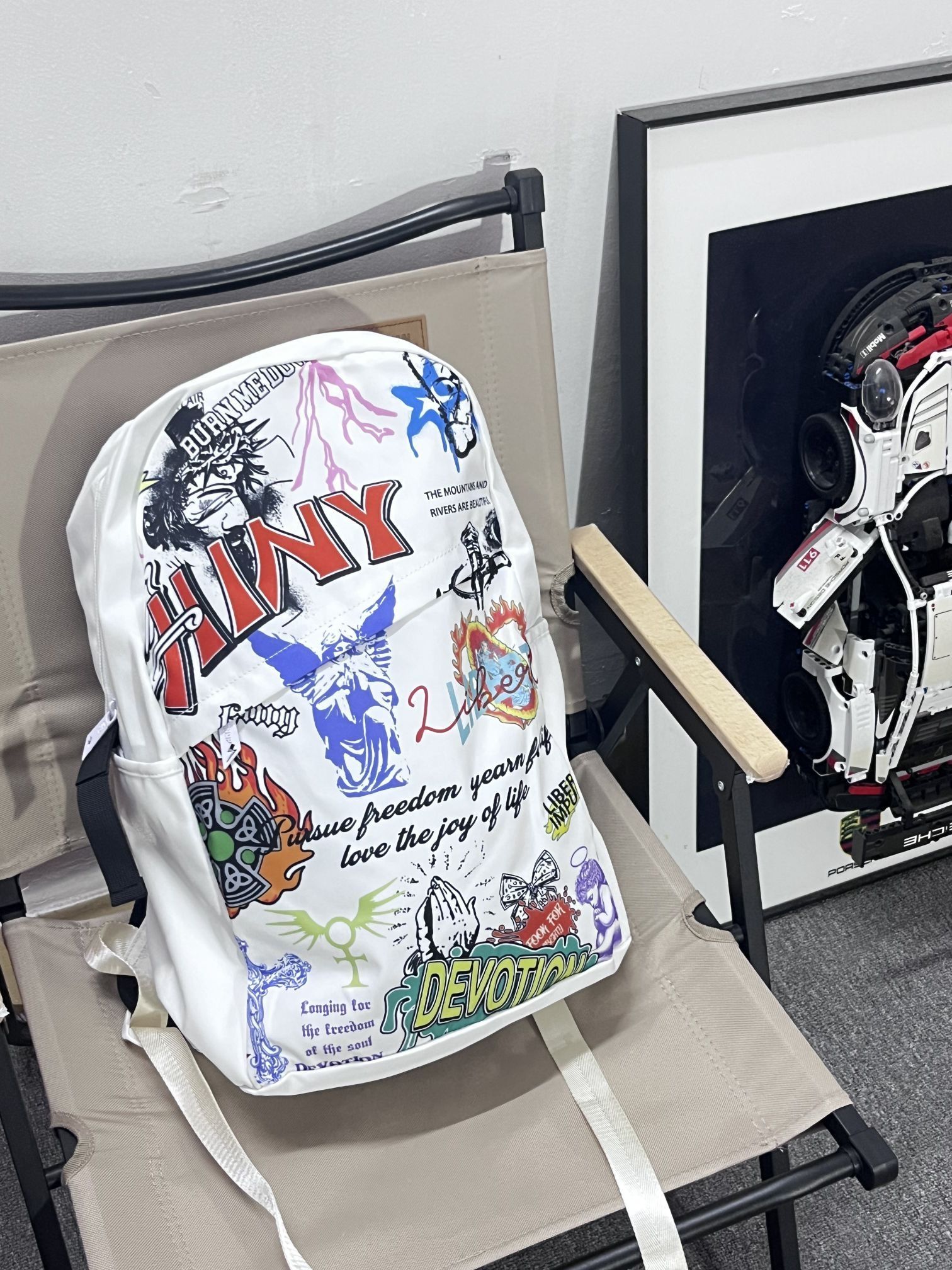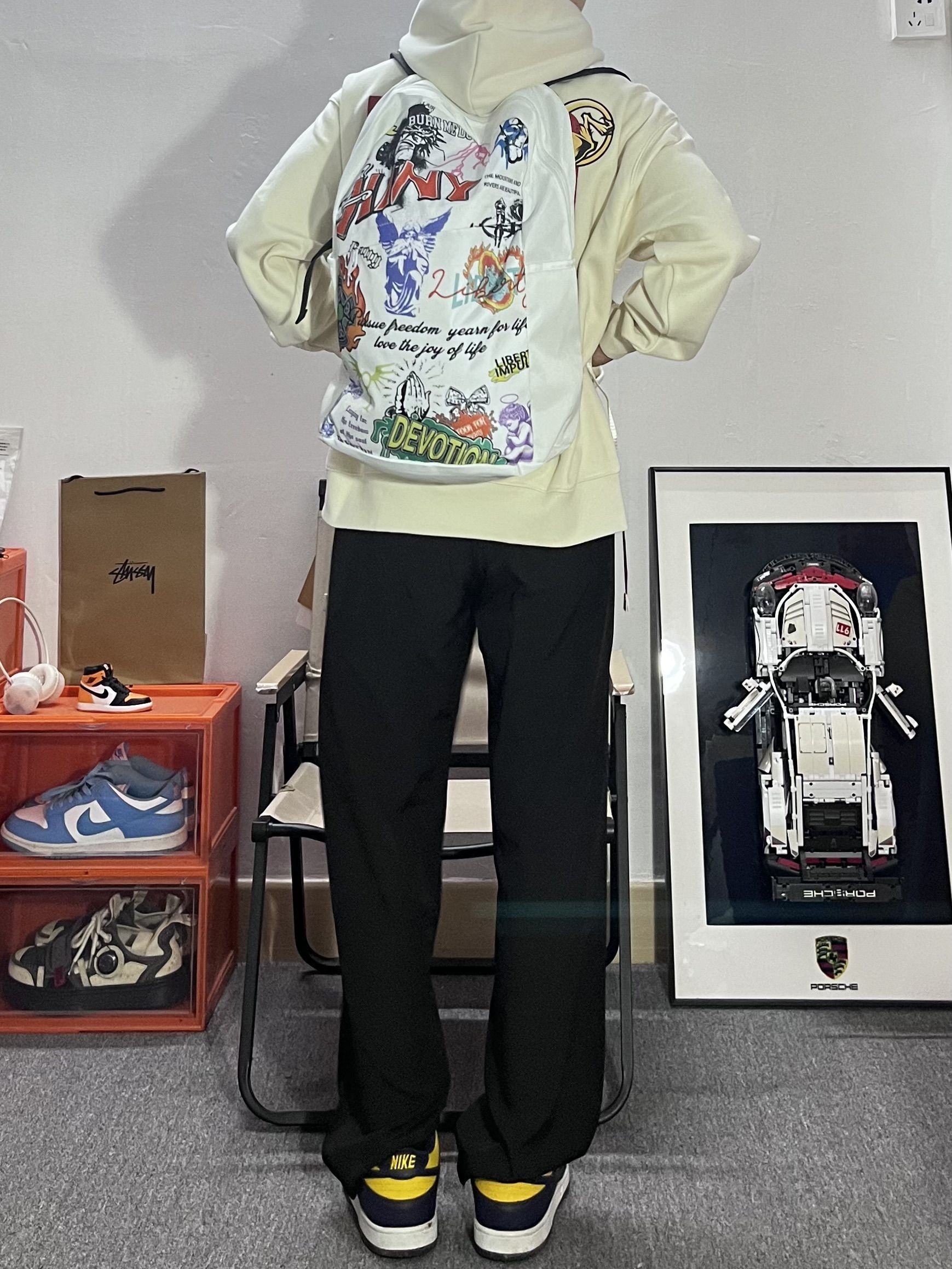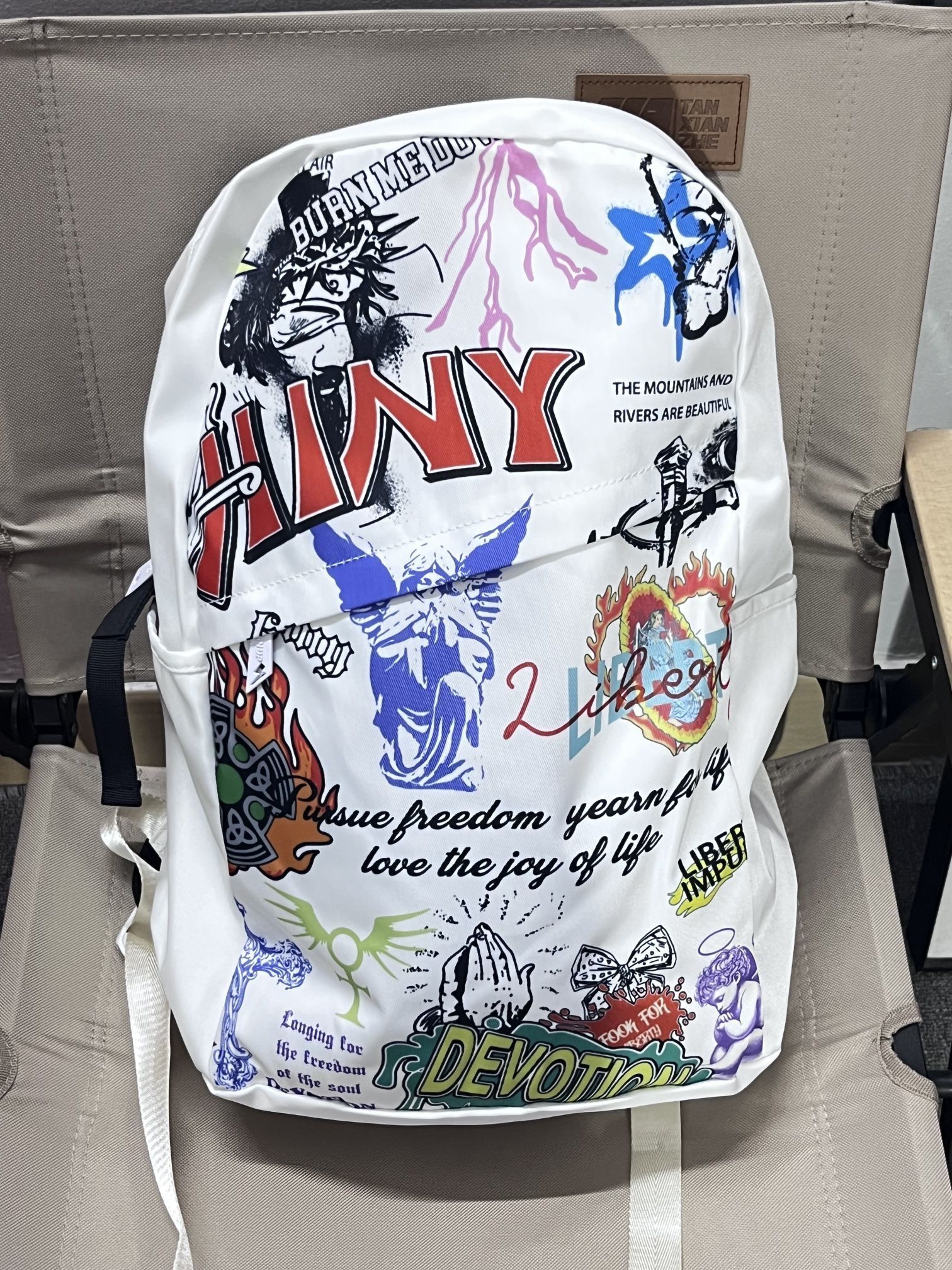 哈喽这里是pupu同鞋🏄🏻♂️ ——————————— . 🎒:HINY 美式街头涂鸦的印花吸睛好有特色 穿搭轻松搭配出美式街头的感觉 容量也很能装 早八通勤电脑也可以带上 · 👔:红炭 · 👖:有志者 · 👟:密歇根 ——————————— 💁🏻♂️:170/115 以上都是个人观点🍔欢迎讨论