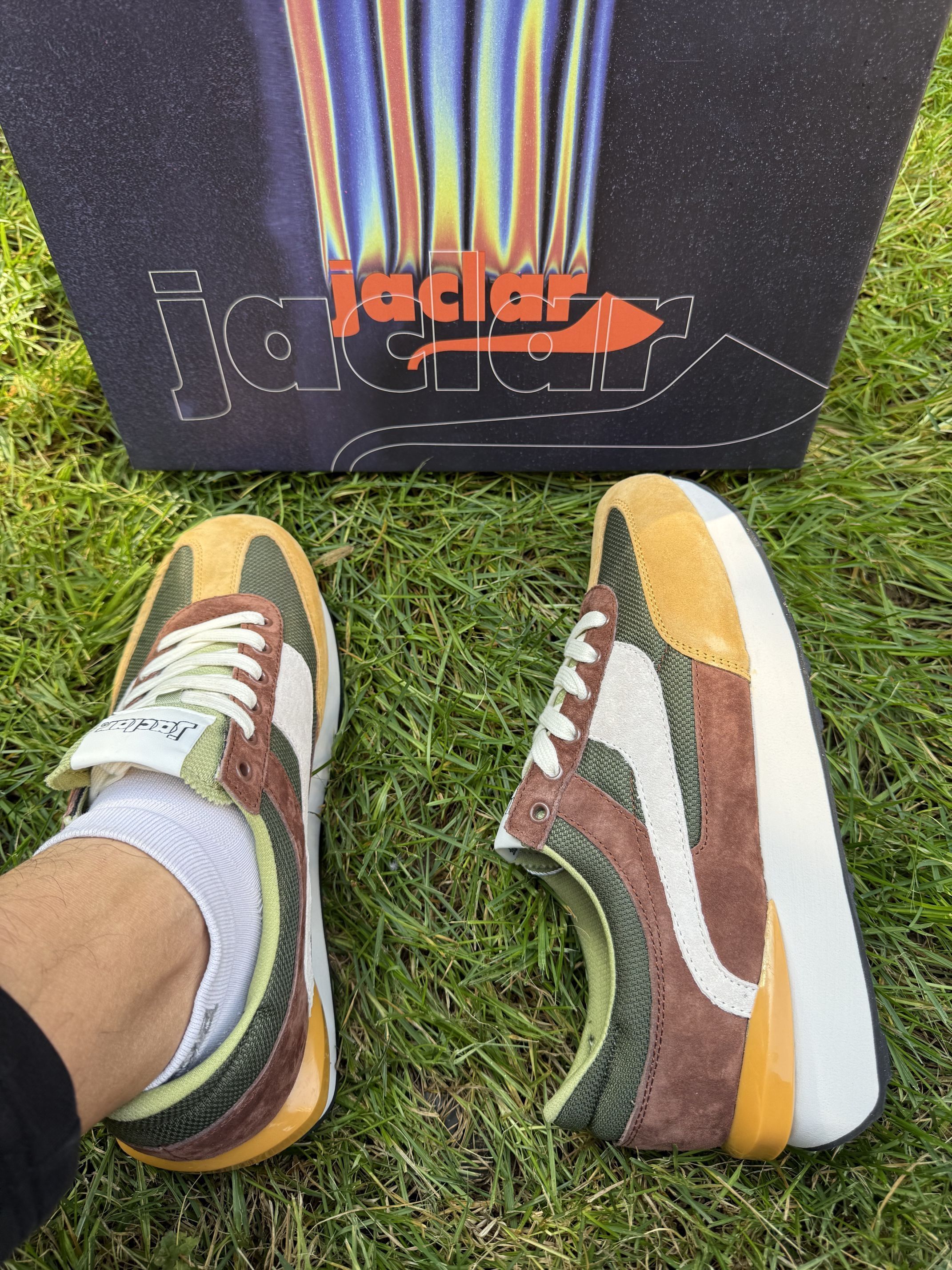 谁能拒绝一双把复古格调、质感细节、穿搭适配性全拿捏的运动鞋啊!Jaclar这双直接戳中我的复古心巴~ - 复古感拉满:卡其、棕、橄榄绿的配色组合,加上麂皮+网面的材质拼接,梦回80年代的复古运动风,随便搭条牛仔裤、工装裤都很有腔调~ - 质感绝绝子:麂皮的细腻触感、鞋型的利落线条,还有鞋垫上的品牌满印,细节处全是用心,复古爱好者狂喜~ - 穿搭无压力:日常通勤、周末逛展、citywalk都能穿,既...
