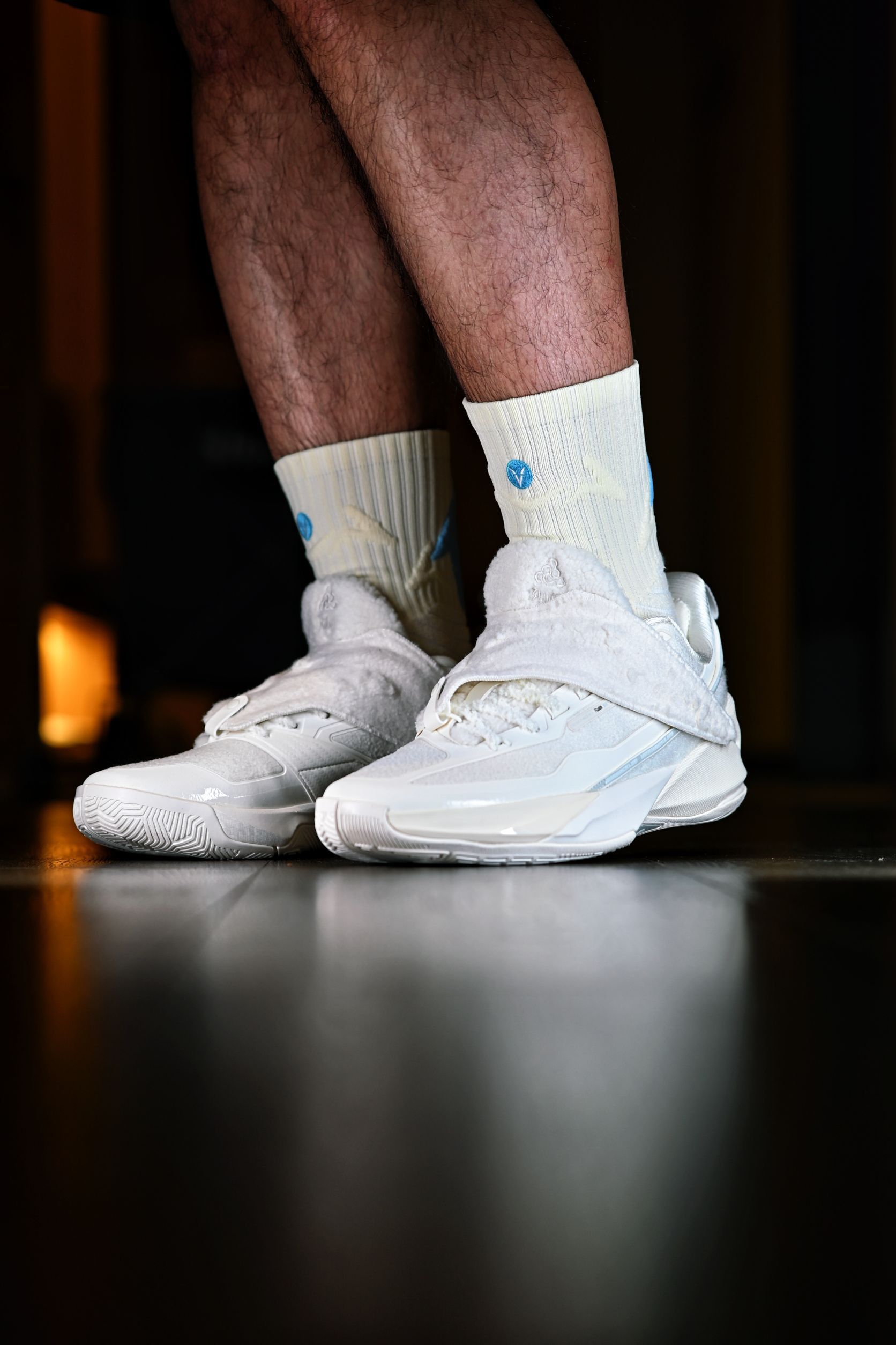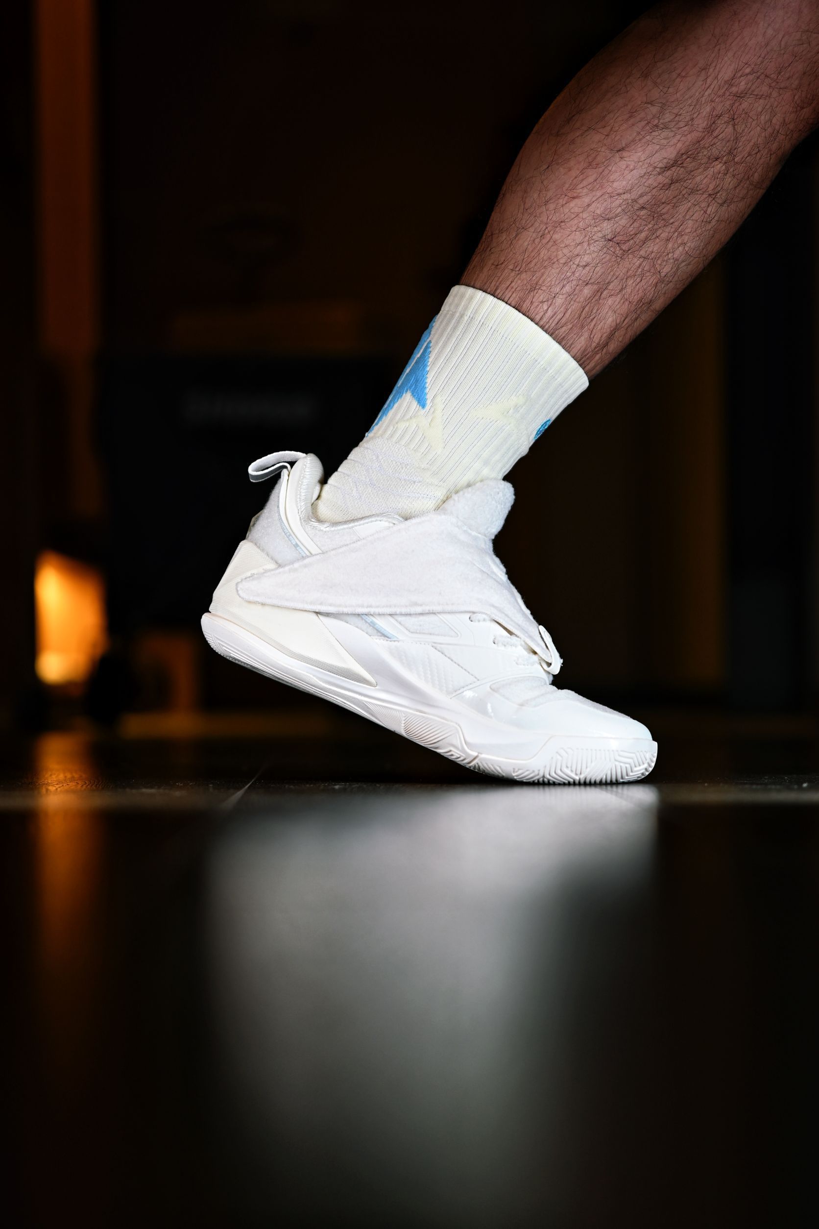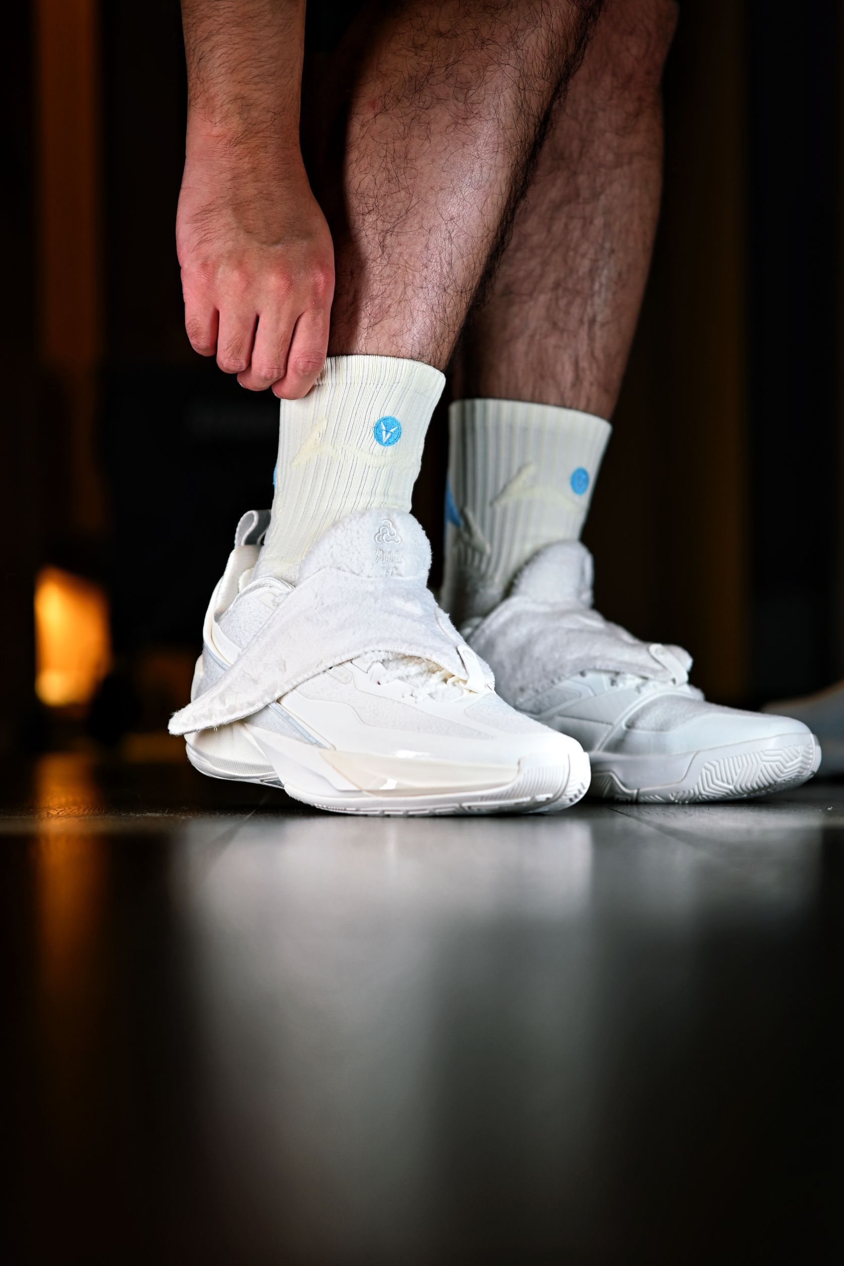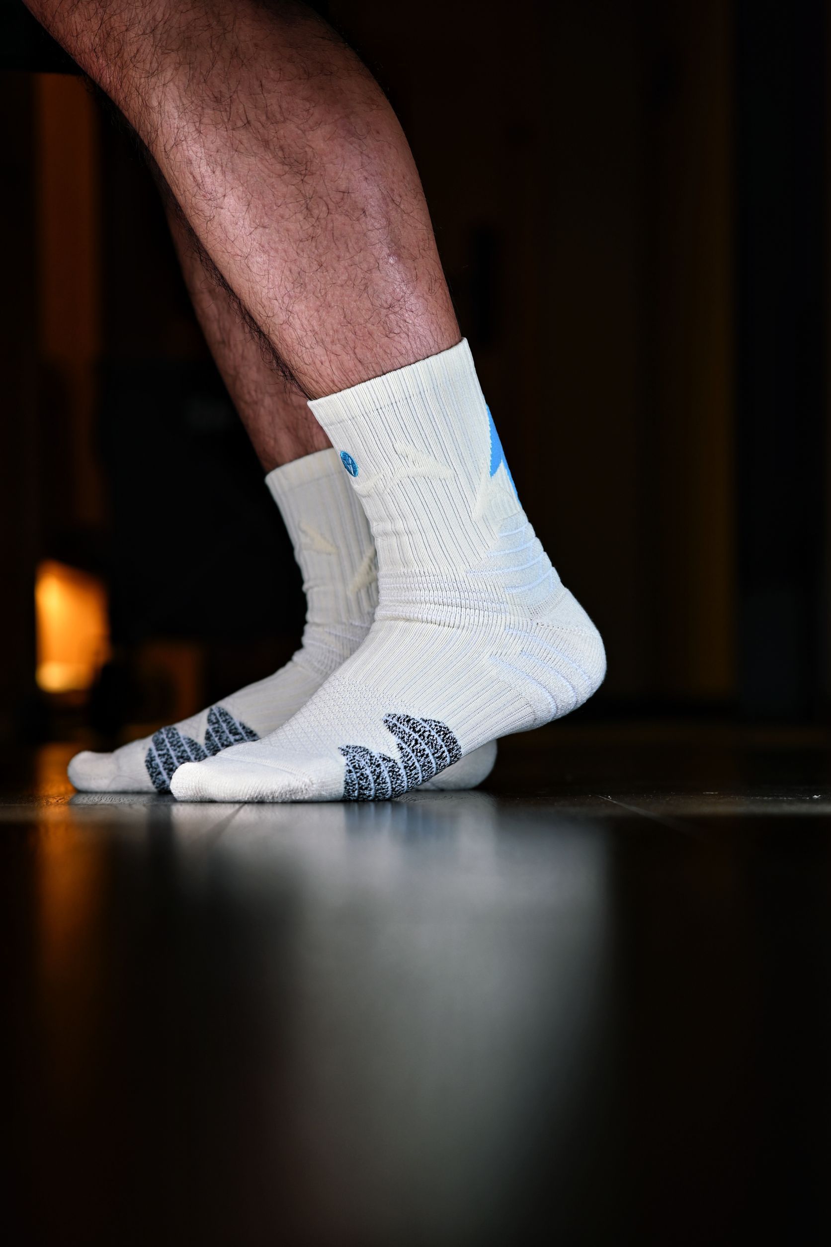 这次新入手的是维动家的这款离弦Pro 给我的第一印象就是颜值很高,特别是后跟的这个箭头标识,辨识度很高啊,整双袜子也做了分区的防护处理,脚背处也有大面积的透气网纱,打了几场球下来也很干爽 连脚踝处也有专门的保护处理,维动的这些细节还是做的很到位的