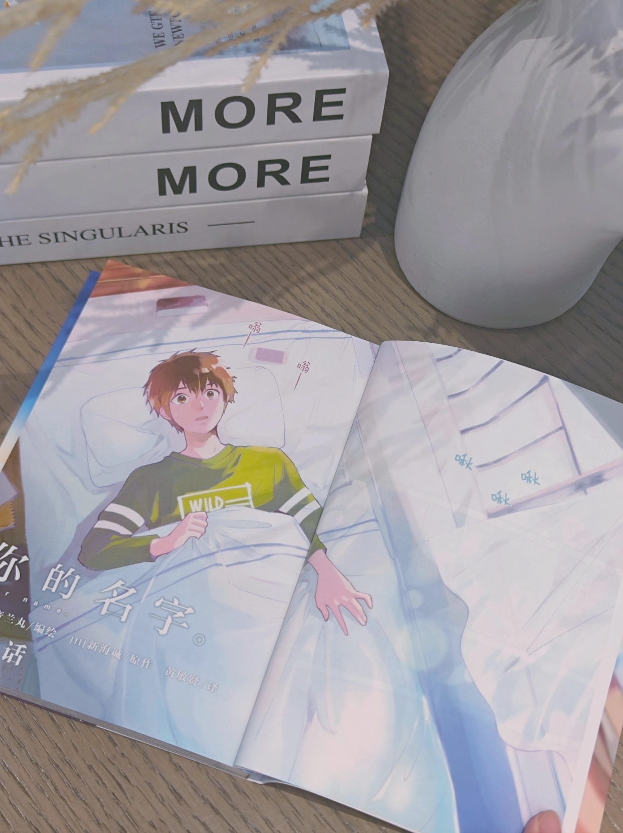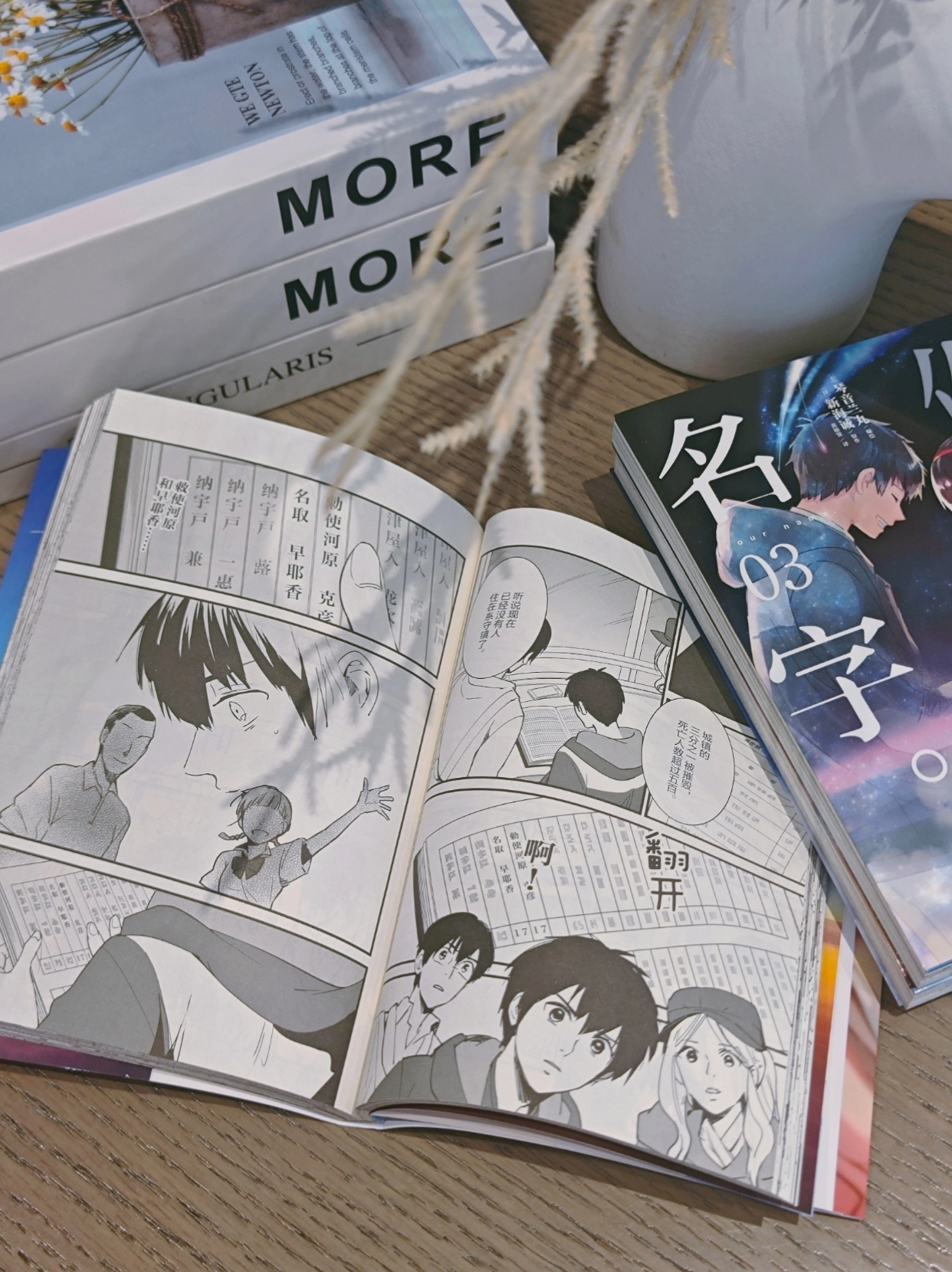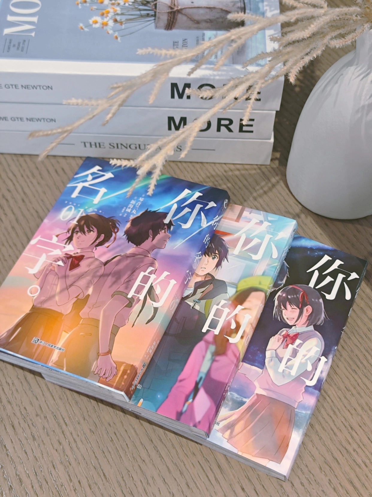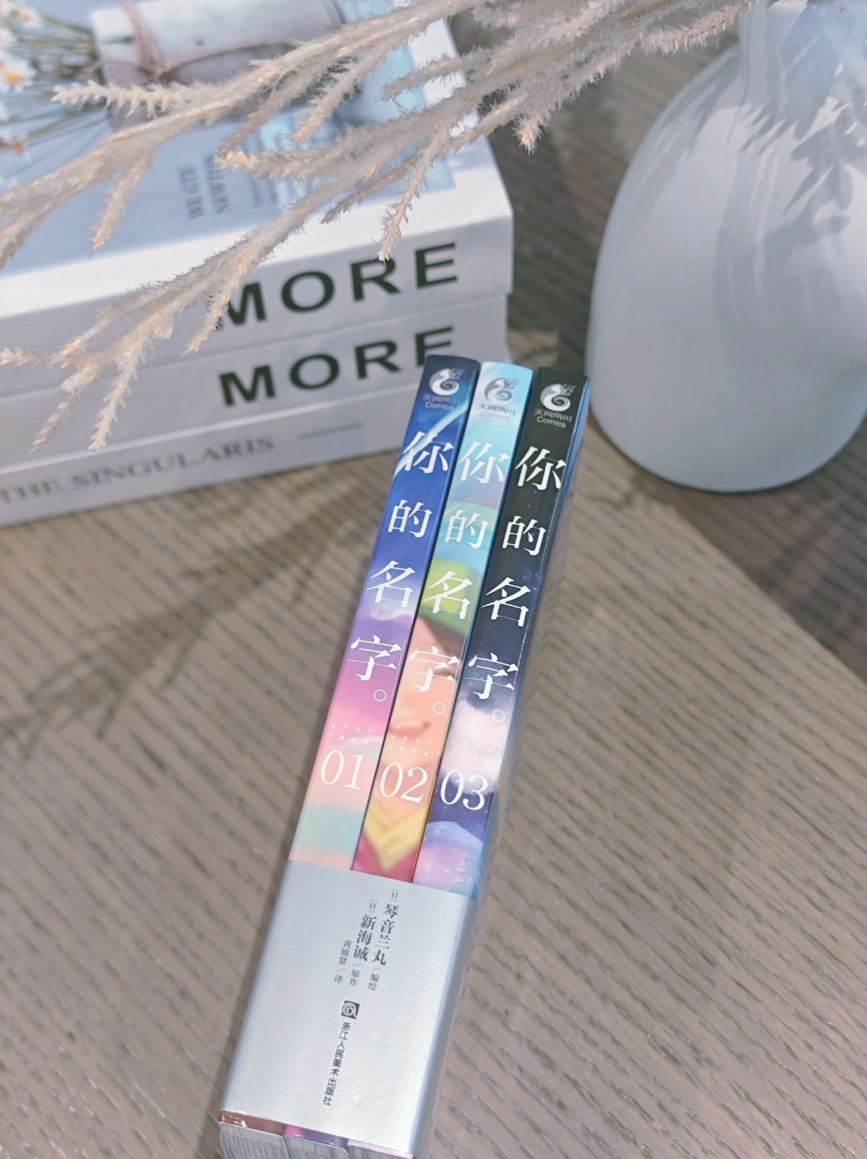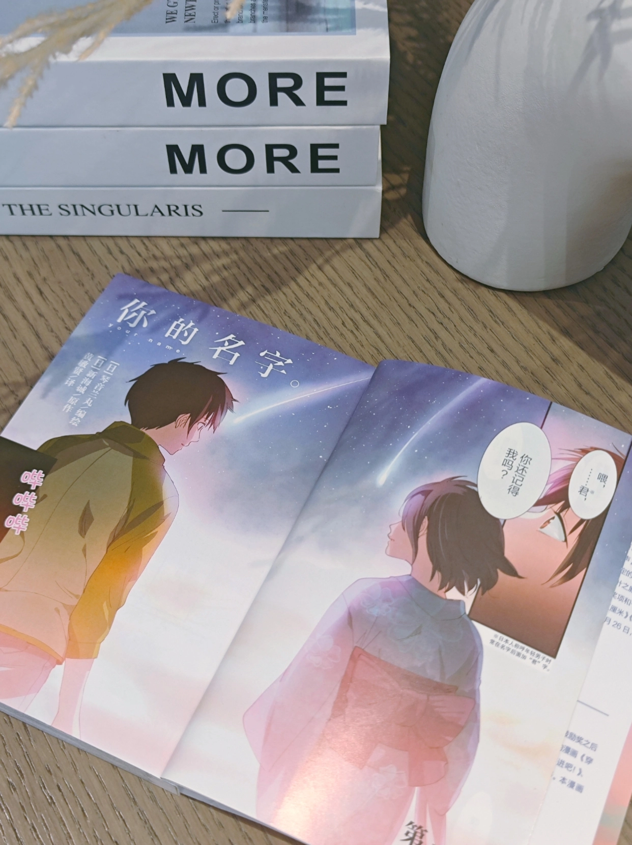 这套书真的太美了!封面是星空般的渐变色,内页印刷清晰,新海诚的每一帧画面都值得细细回味。 漫画比电影多了很多细节,三叶和泷的故事翻多少遍都不会腻。摆在书架上就是一道风景。真心值得收藏!!