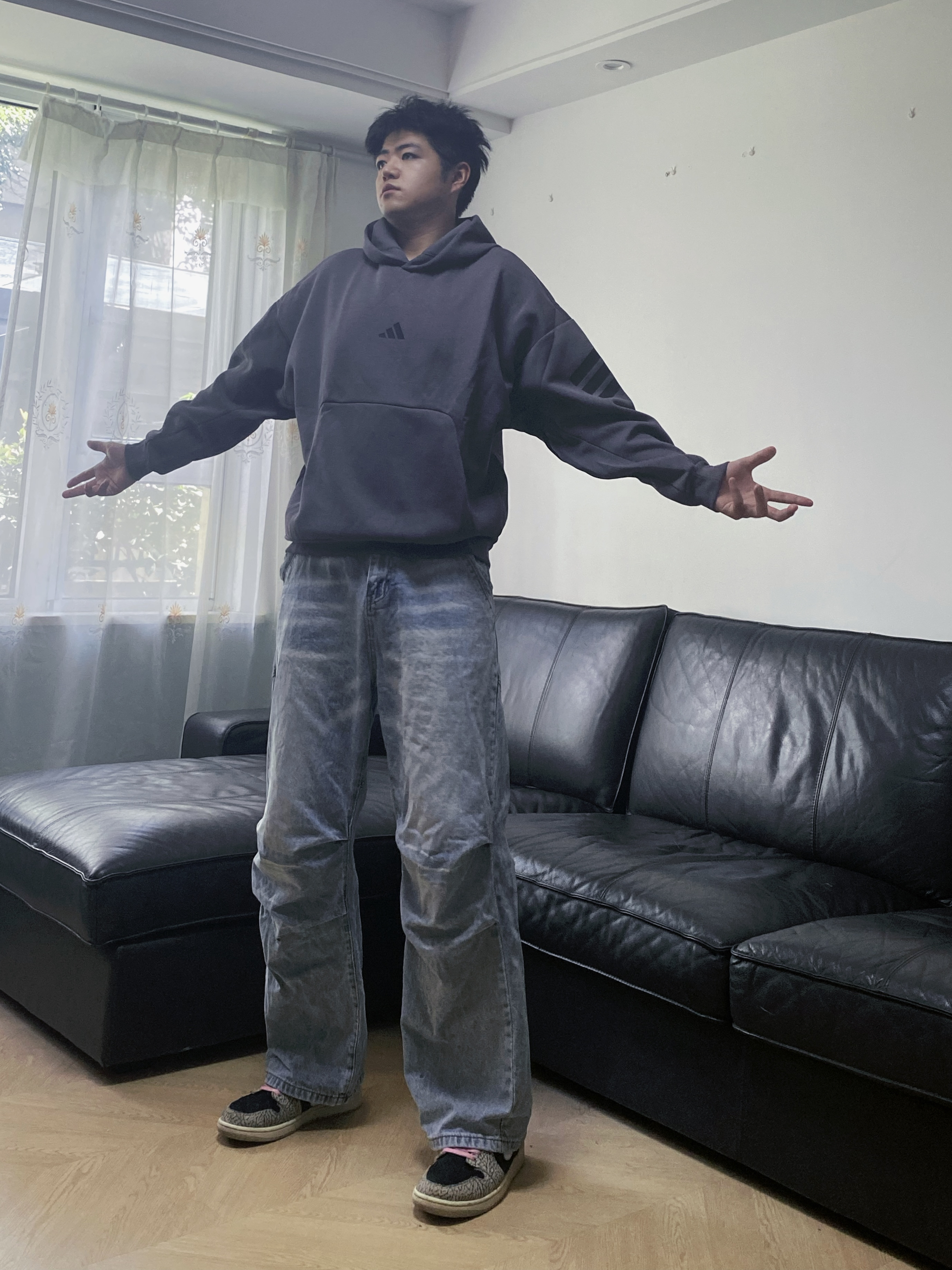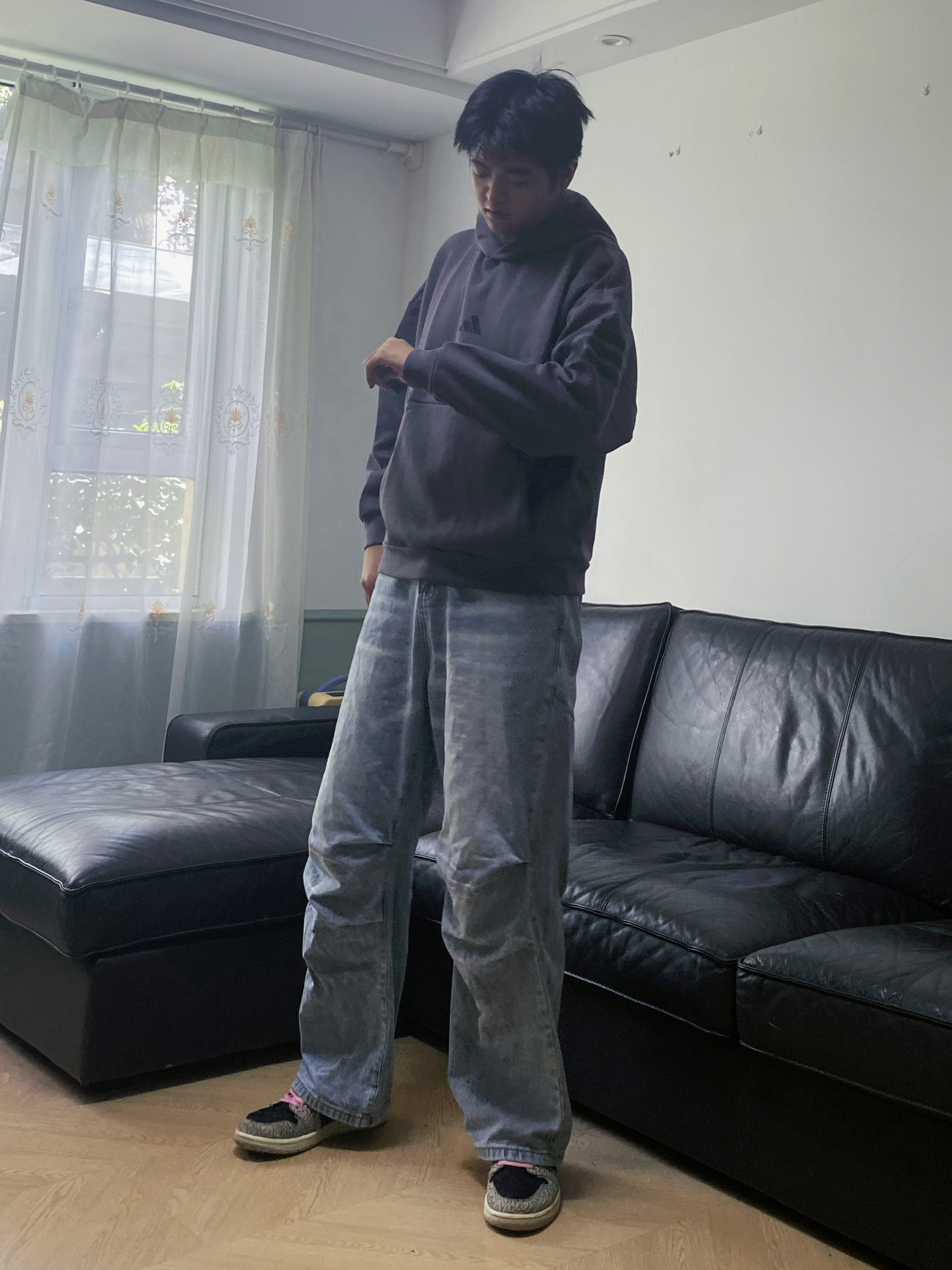 慵懒氛围感卫衣让我挖到了 这件岩石灰版型太舒适了❗️ 内里没有加绒 也是非常厚实~ 非常亲肤的质感 秋天穿刚刚好 牛仔裤搭配的是voguo家的折痕牛仔裤 超帅气 分层的折痕处理的十分舒服 慵懒感拿捏❗️