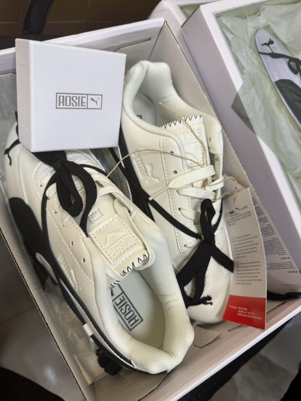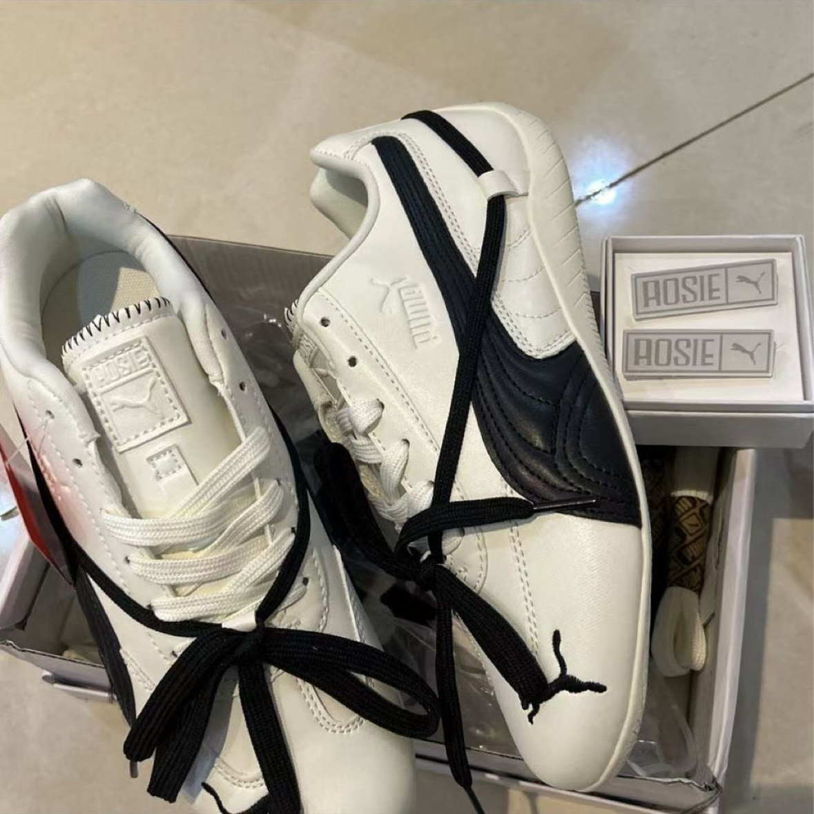 有被puma联名rose这双彪马迷到,全鞋身皮面的设计可不是有一点适合秋冬,鞋带的简单小设计,增加了鞋子丰富度,爱了! 今天到了白色,上脚试了码数很正(不要拍大)
