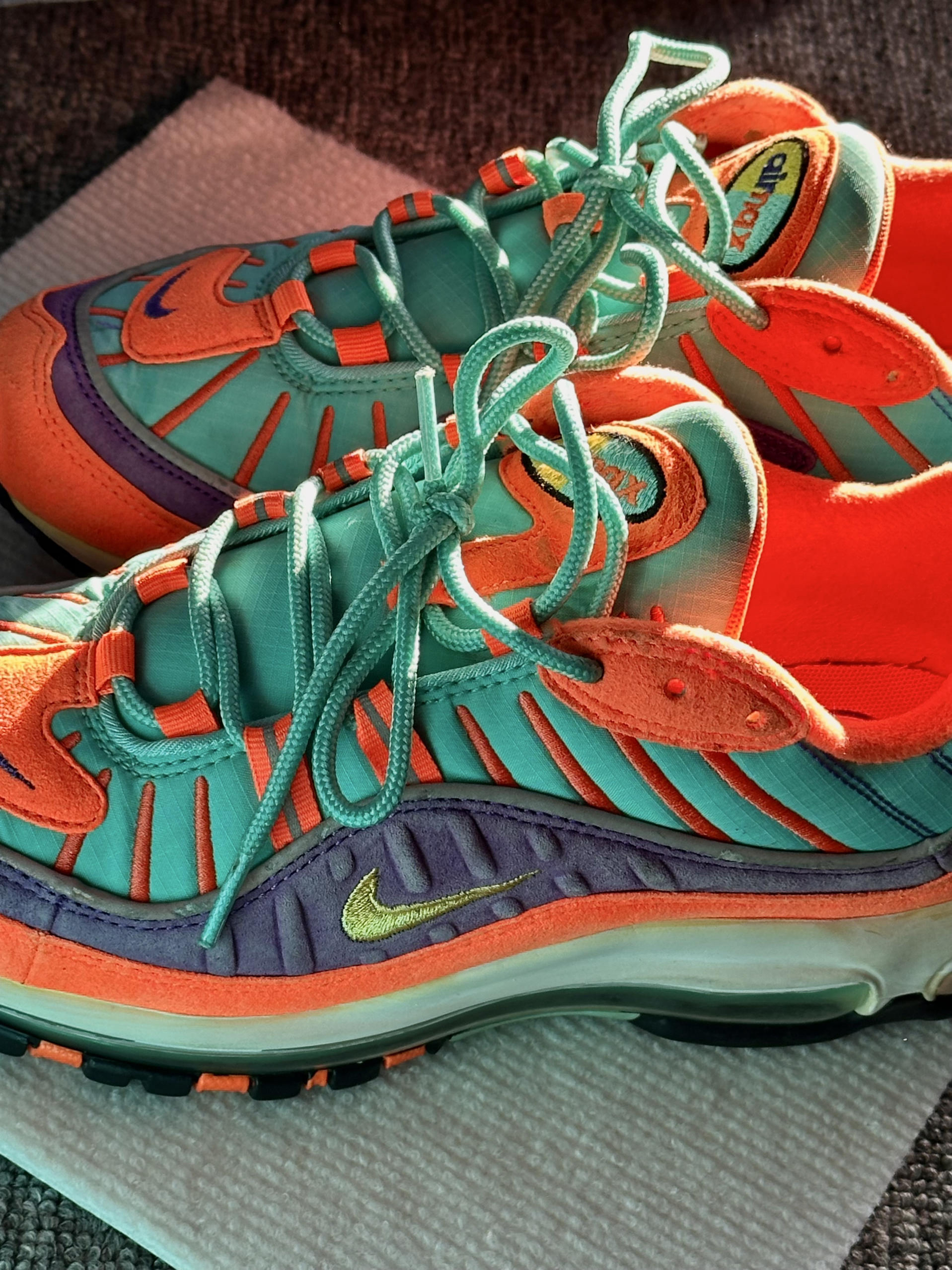 本篇笔记关联了Nike Air Max 98 跑鞋 潮流复古全掌缓震回弹防滑耐磨轻便透气时尚拼接圆头气垫 龙珠等商品,为用户提供真实的使用体验和购买参考。
