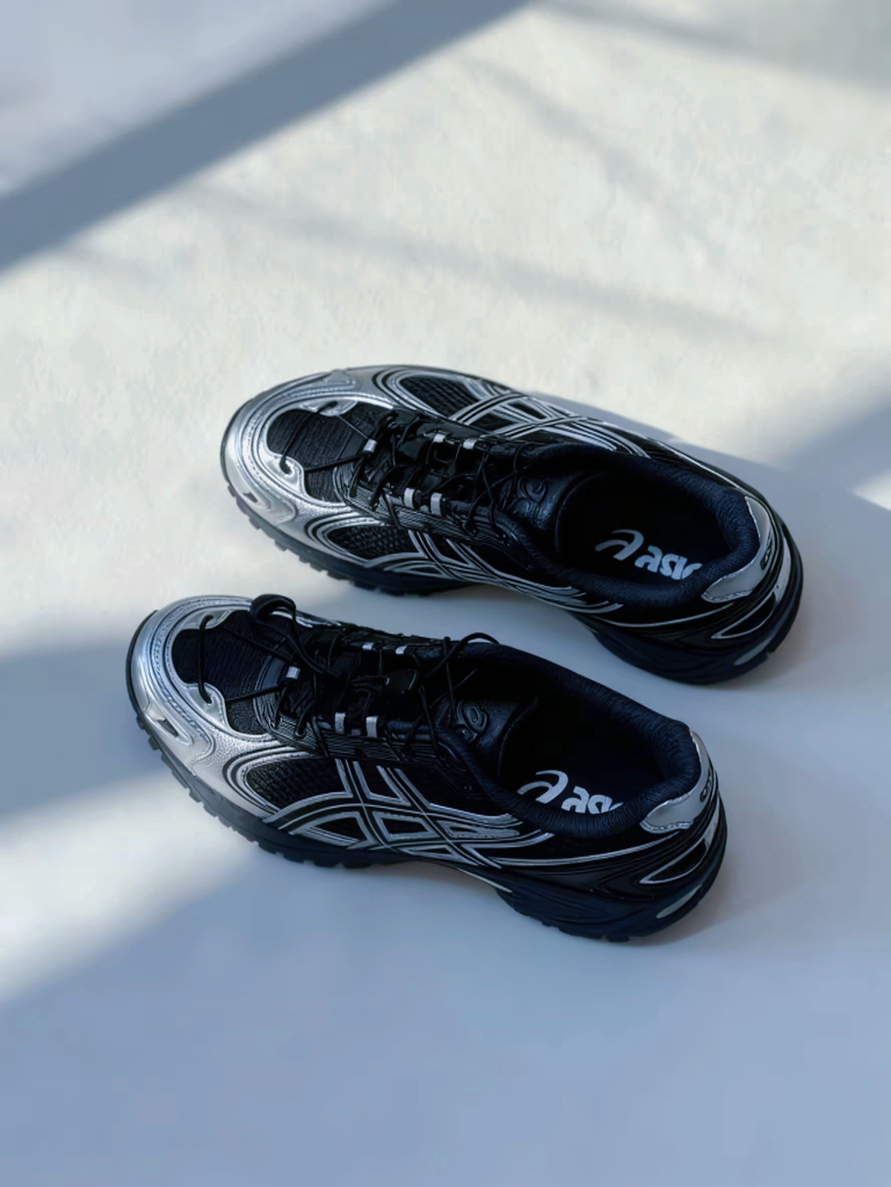 今天穿这双ASICS出门挺舒服的 黑银配色带点反光效果,跟机能风很配。 不仅复古还带时髦感!