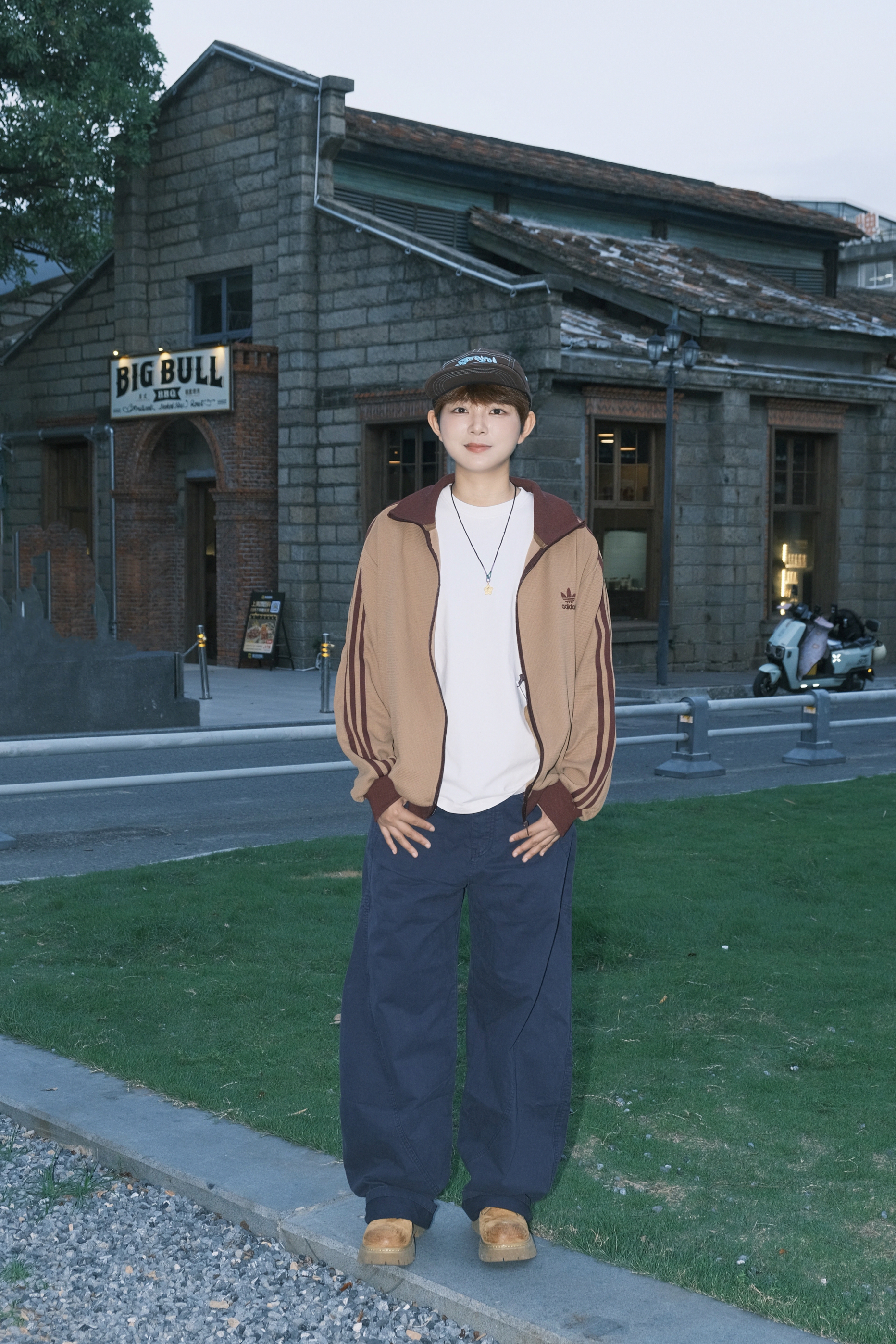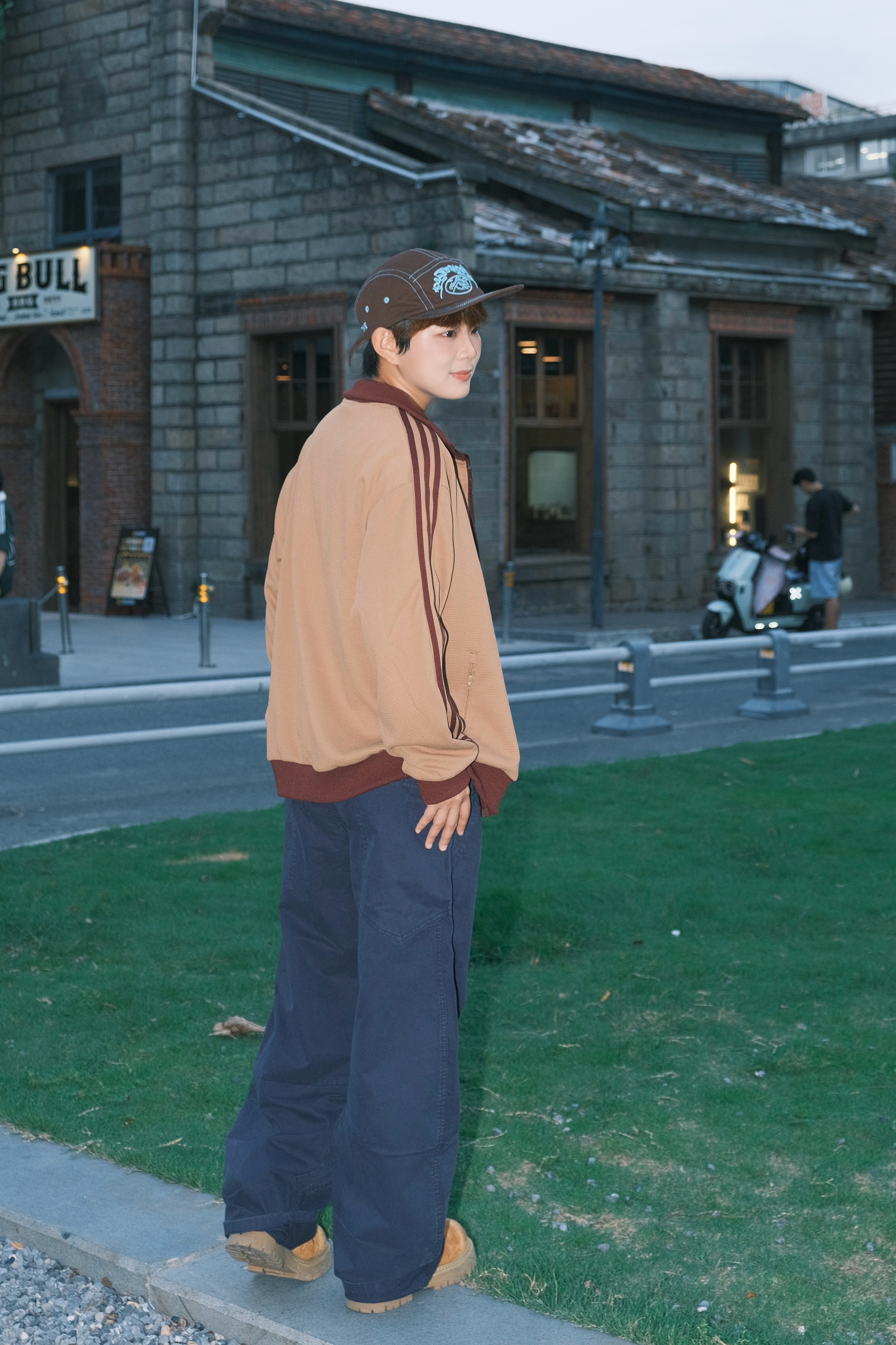友友们快看这套👀 藏蓝色弯刀裤也太绝了吧!版型宽松又有垂感,走起路来自带随性腔调~ 搭配卡其色复古外套🧥 复古感直接拉满,再踩双工装靴👟 帅到没朋友!日常出街这么穿,舒服又有范儿,弯刀裤真的是酷盖们的穿搭宝藏✨
