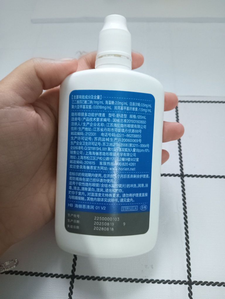 海俪恩清润护理液,120mL便携装超贴心。它能有效清洁隐形眼镜,去除蛋白沉淀,给镜片全方位呵护。搭配隐形眼镜盒使用,让你每次佩戴都舒适清爽,是隐形眼镜党日常护理的绝佳好物~