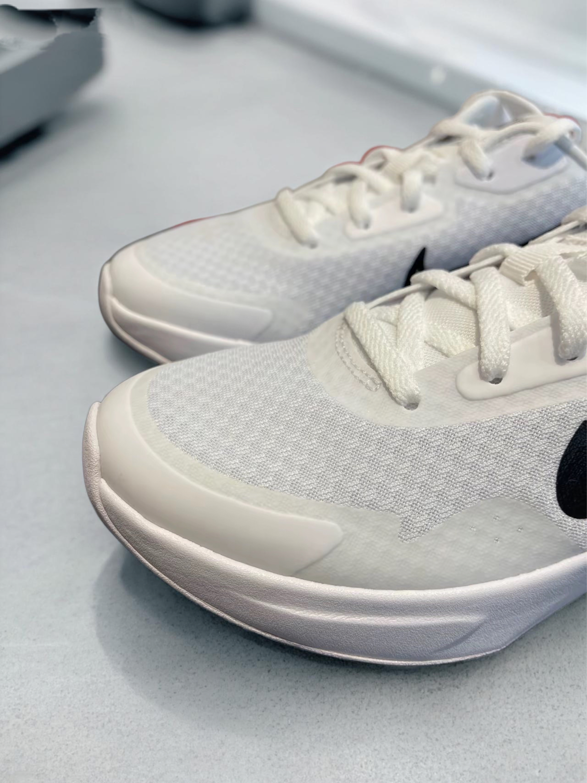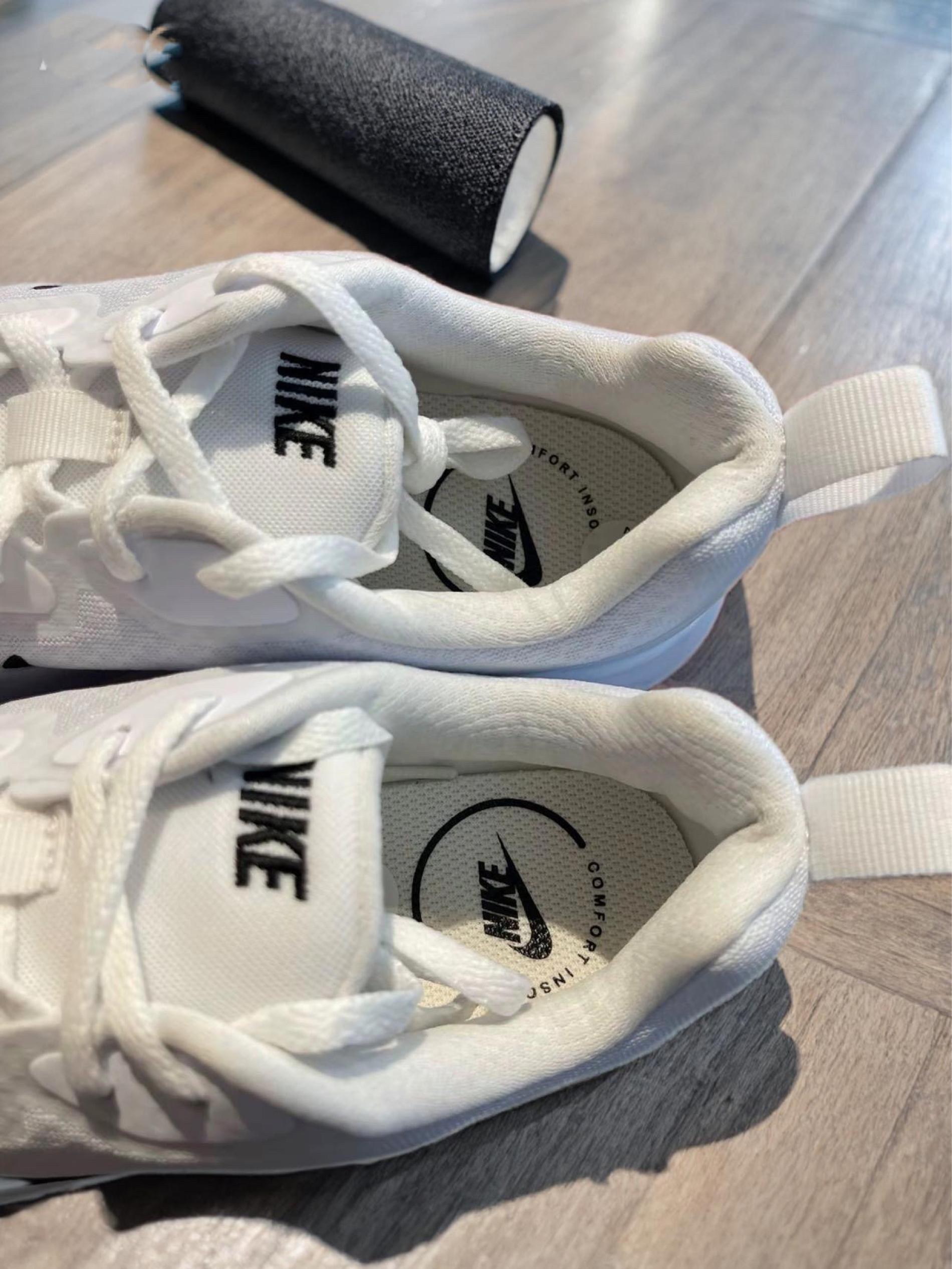 穿这双白黑Wearallday通勤快三周,总算懂了“全天可穿”的含义,日常走路、轻慢跑都hold住,性价比很能打。 经典白黑配色太百搭,纯白鞋身配黑色Swoosh,简约干净,搭运动卫裤显利落,配牛仔裤也不违和。鞋头和后跟的热熔胶贴片加固了支撑,细节精致,后跟提拉环穿脱超方便。 脚感是核心亮点。软弹工程网面透气能打,春夏穿久了也不闷脚。厚实泡棉中底偏韧实,走路、慢跑时缓震够用,对膝盖友好,但穿久...