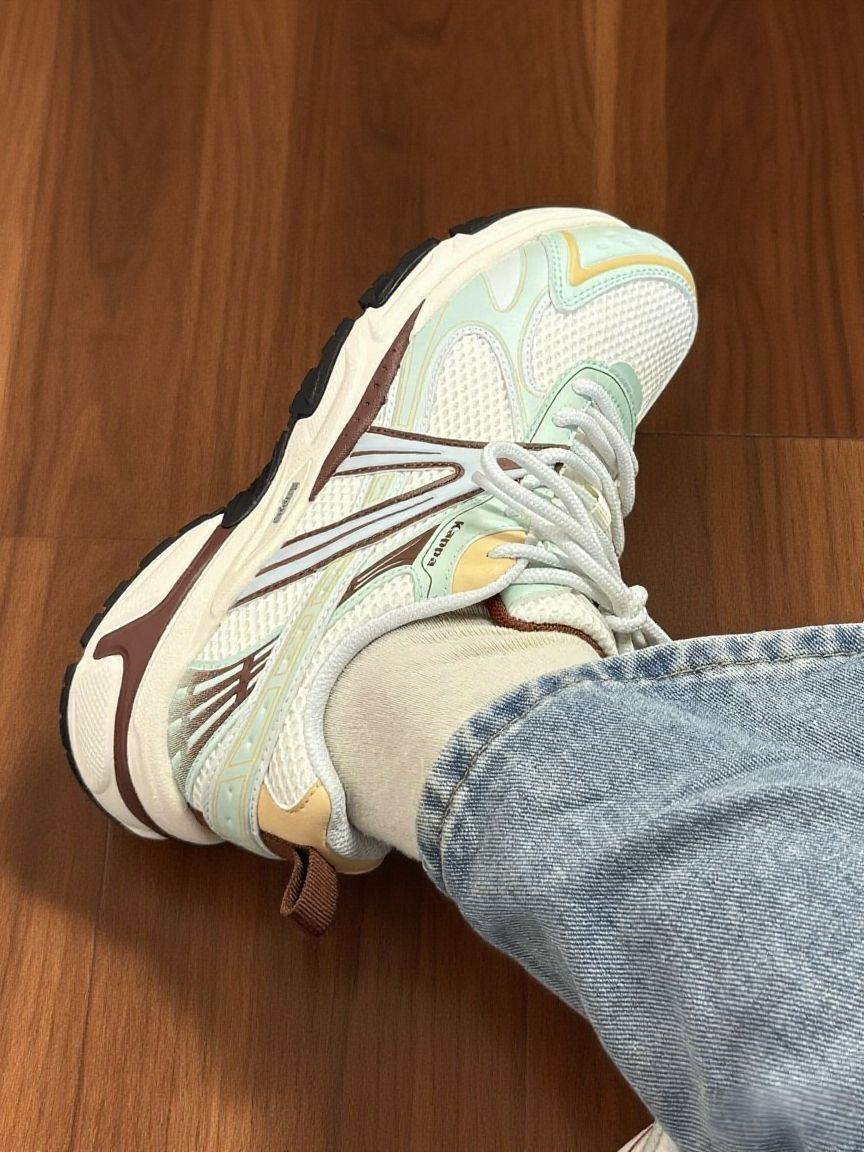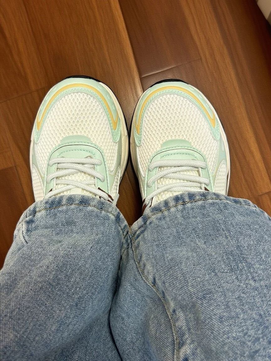 新入的卡帕老爹鞋,真的太合我心意啦! 拿到手就被它的配色吸引,浅绿、米白和棕色调搭配,清新又很有复古感。上脚的瞬间,能感觉到鞋底软软的,特别舒服。而且鞋身不算重,不会有那种拖沓的感觉,平时出门逛街、通勤,走很久都不觉得累脚。 鞋面的网眼设计很透气,现在天气不算冷穿它也不会觉得闷。搭配牛仔裤或者运动裤都很合适,轻轻松松就能穿出休闲又时尚的风格。 -不过鞋型偏宽,对于脚型较瘦的人来说,可能...