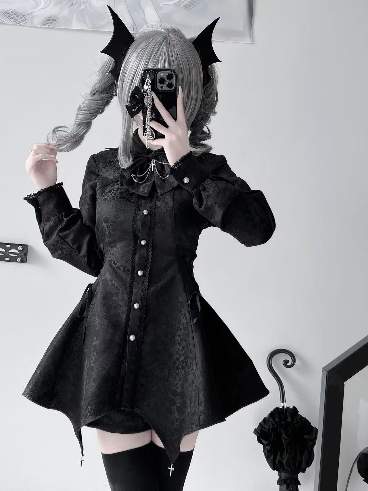 这个掐腰设计真的显得很瘦诶,还挺喜欢这个黑色的小套装的#蕾服#日系#清楚系#樱花妹