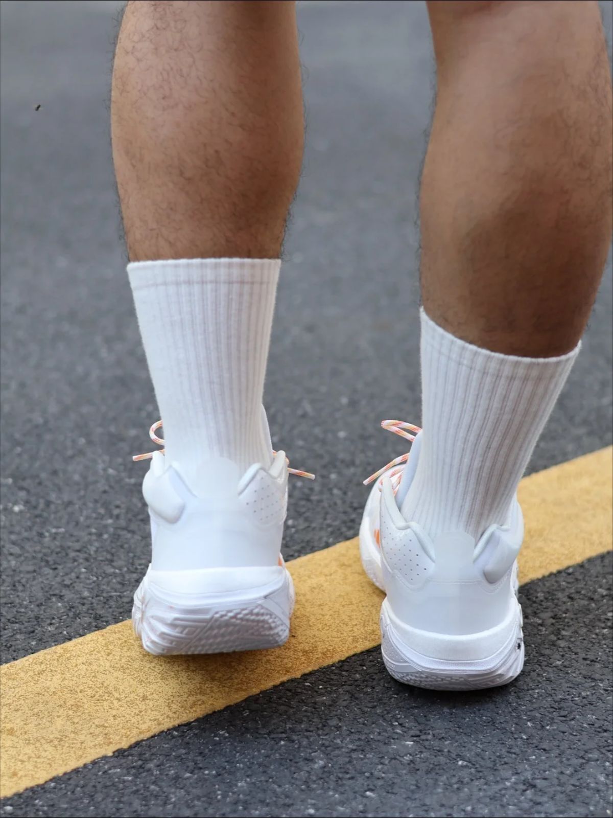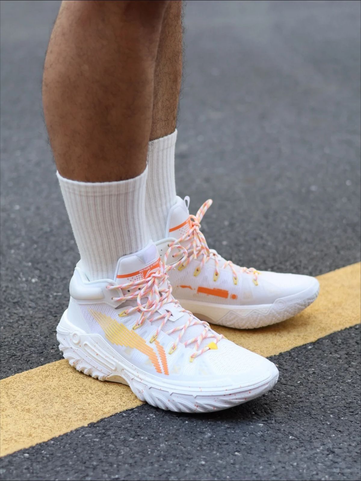 对于白色球鞋 我真的没有丝毫抵抗力 就像上脚的这双#李宁 桀骜2代白鹭配色 搭配上黄橙色的点缀 就给人一种干干净净的感觉 特别对于喜欢打外场的兄弟们来说 这个外底的防滑耐磨性 绝对满满的安全感 我178 70kg 运动过程中䨻的反馈也能明显感知 虽然是一双高帮篮球鞋 但灵活性丝毫不减 也没有感受到硌脚踝的情况 还是挺让我喜欢的