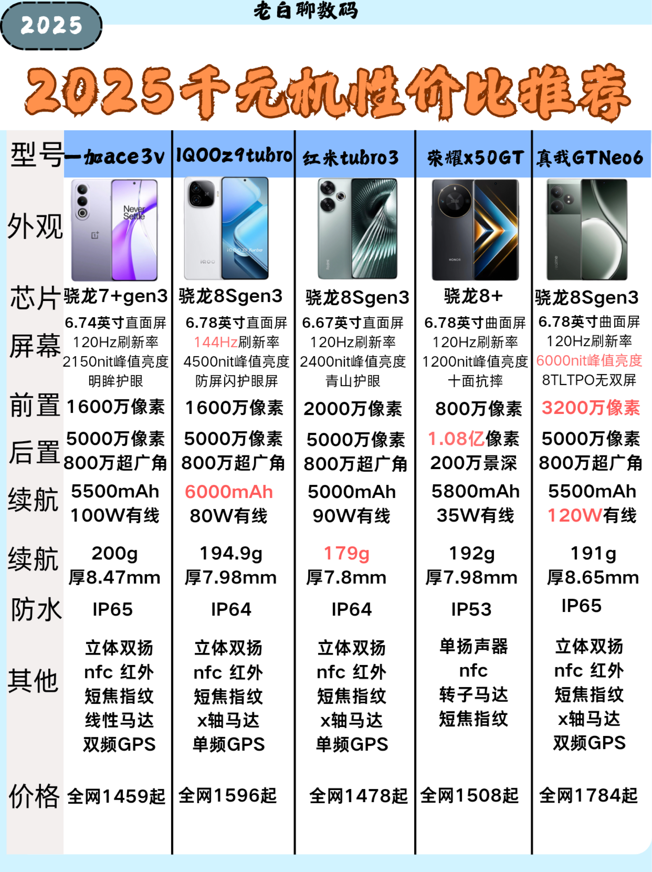 宝子们是不是一到换手机就犯愁?从千元机到万元旗舰,性能、拍照、续航各维度筛选,闭眼入不踩雷~ 🔹预算1000~1500:千元档实力派 • iQOO Z9:性能续航双在线,游戏党学生党冲! • 红米Note14 Pro:一亿像素主摄,日常拍照够用,性价比绝了~ • 荣耀X70:超大电池,续航党狂喜! 🔹预算1500~2000:中端机卷王 • iQOO Z10Turbo Pro:游戏性能拉满,还有独显...