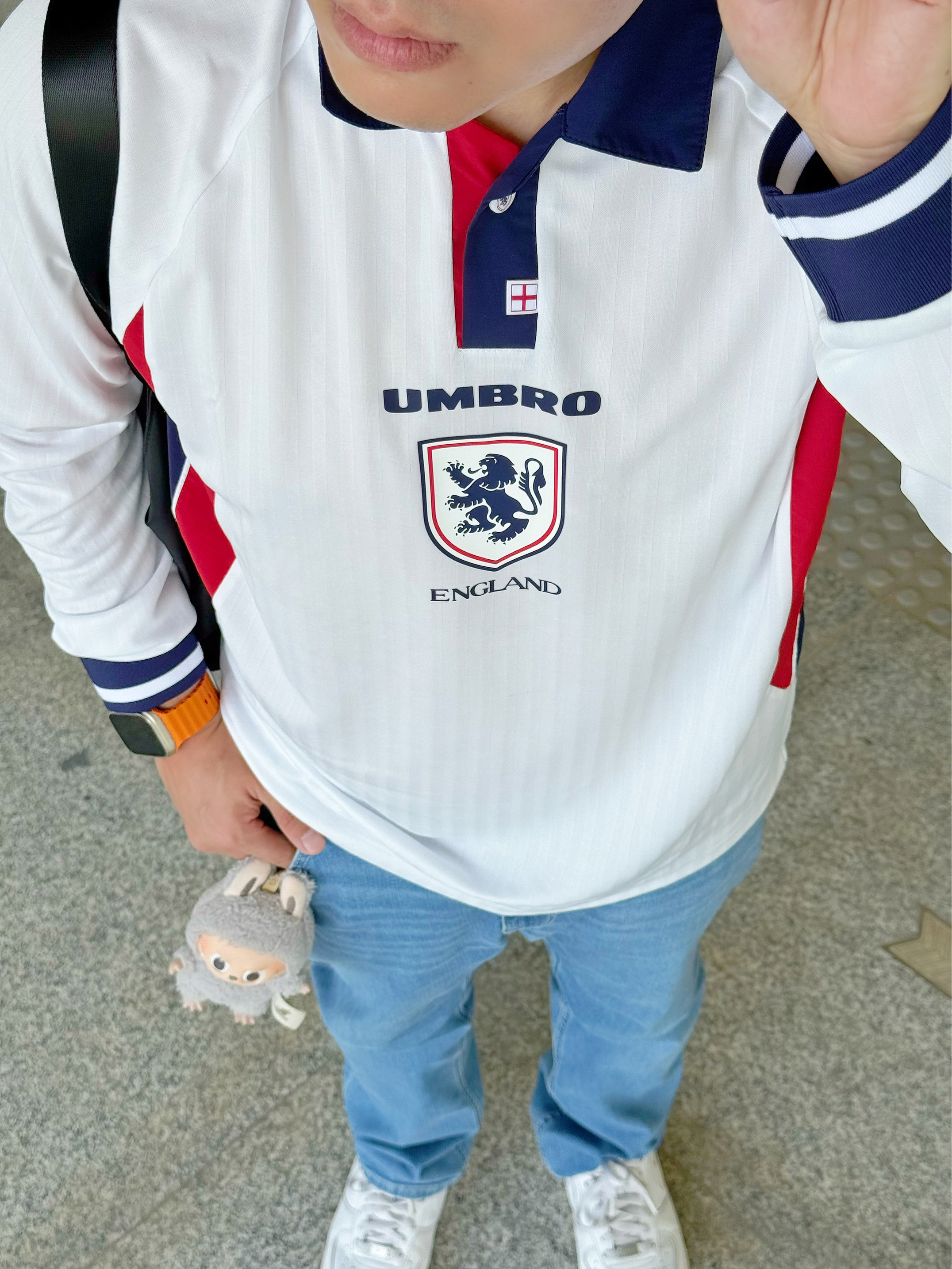 今日主题是运动复古休闲风~ 上身英格兰国家队足球运动服,再加薄款浅蓝色小脚牛仔裤👖,我感觉算得上我的早秋宝藏穿搭!💥 ✅这款umbro茵宝英格兰主场三狮徽章足球衣我着重说一下 1️⃣材质方面是速干面料,质感不错,软柔亲肤,还是挺舒适透气的,不会觉得闷,很快就能干爽~ 2️⃣版型还挺正,上身很显身材😎 3️⃣颜色方面,我上身之后感觉就是很衬肤色很显白 搭配一款棒球帽🧢和眼镜,再来一双小白鞋 几分...